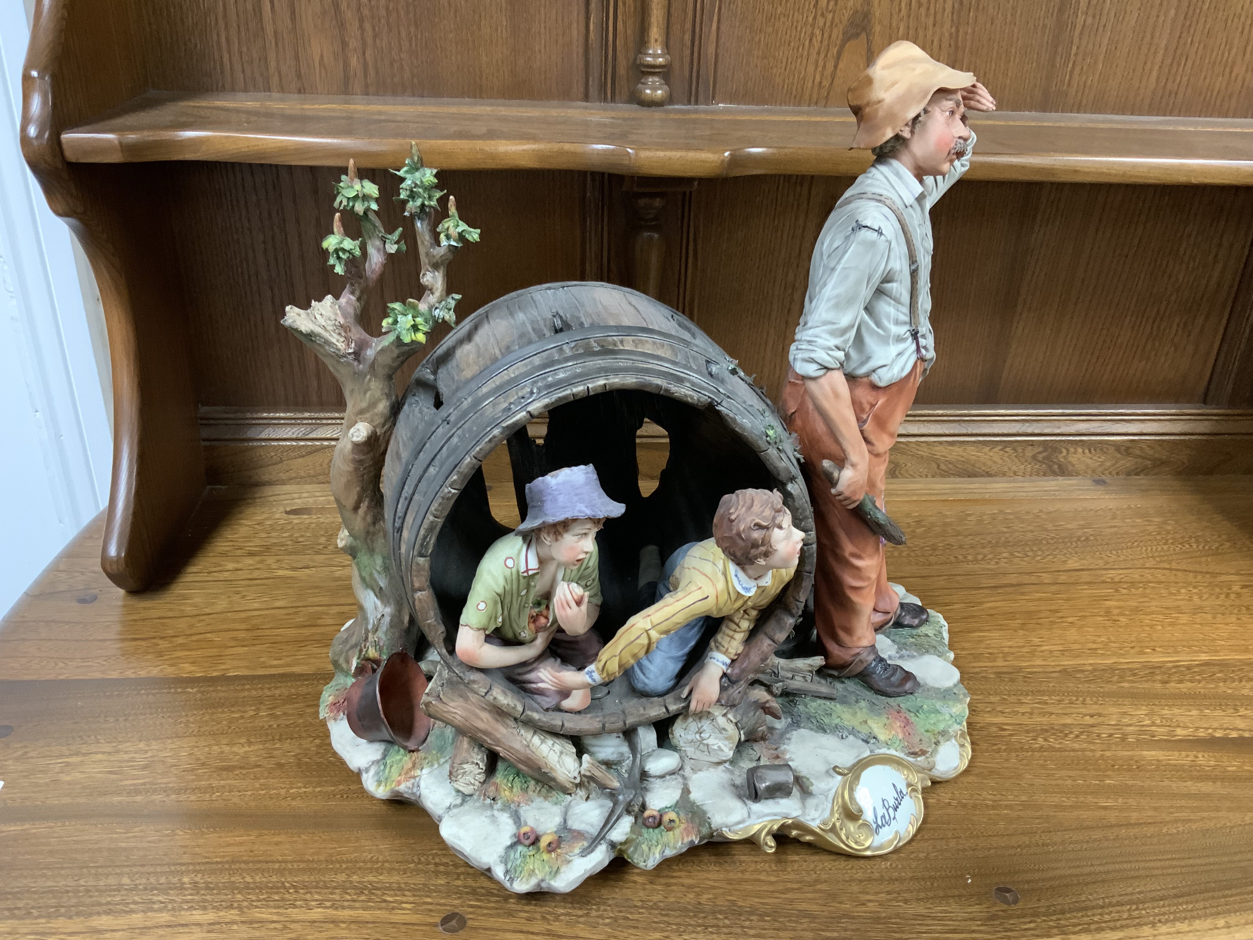 A Large Capodimonte Porcelain Sculpture title La Burla. (Posatge D, no postage avaliable in house)