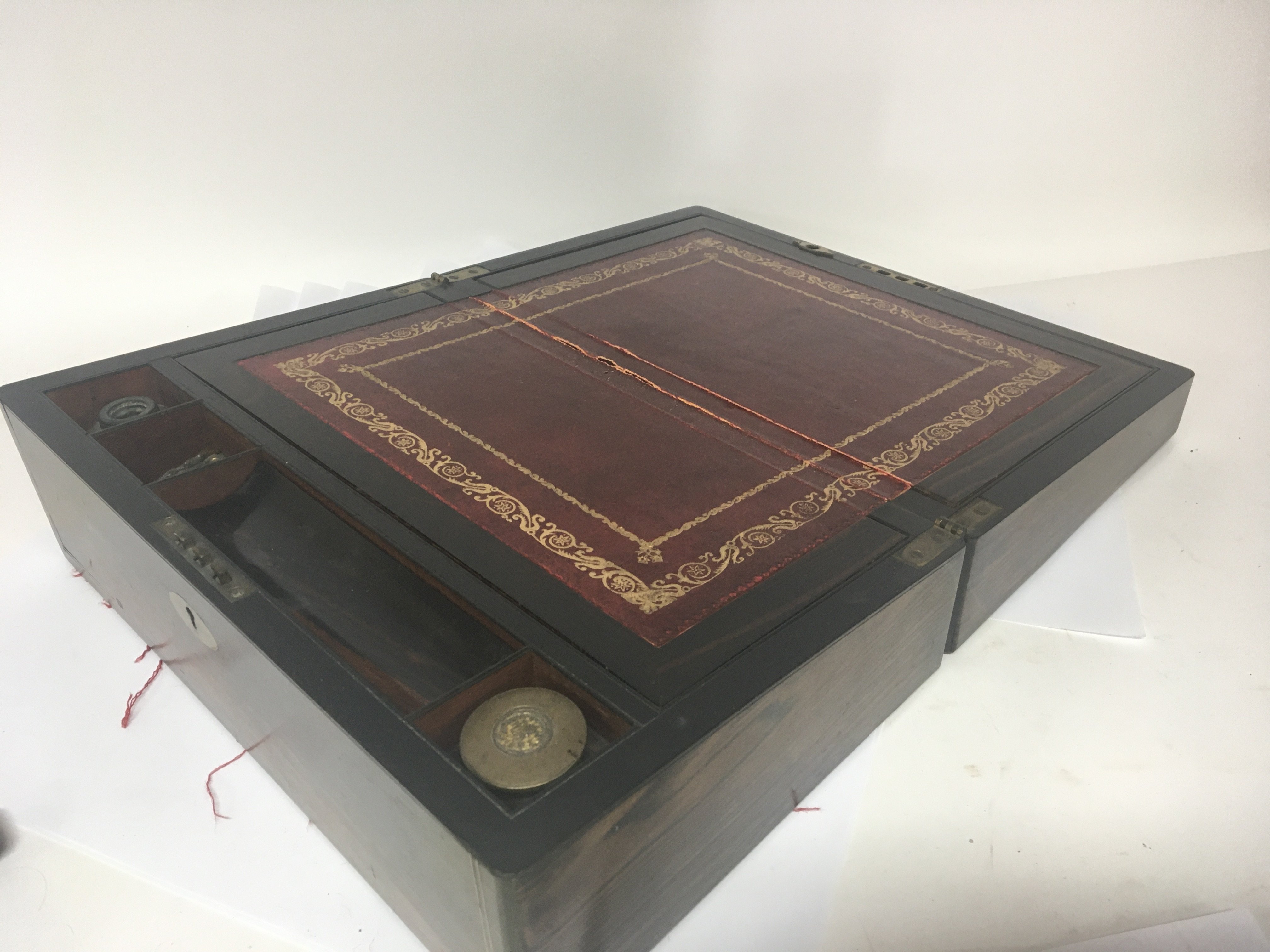 A late 19th Coromandel wood writing box with a well fitted interior.
