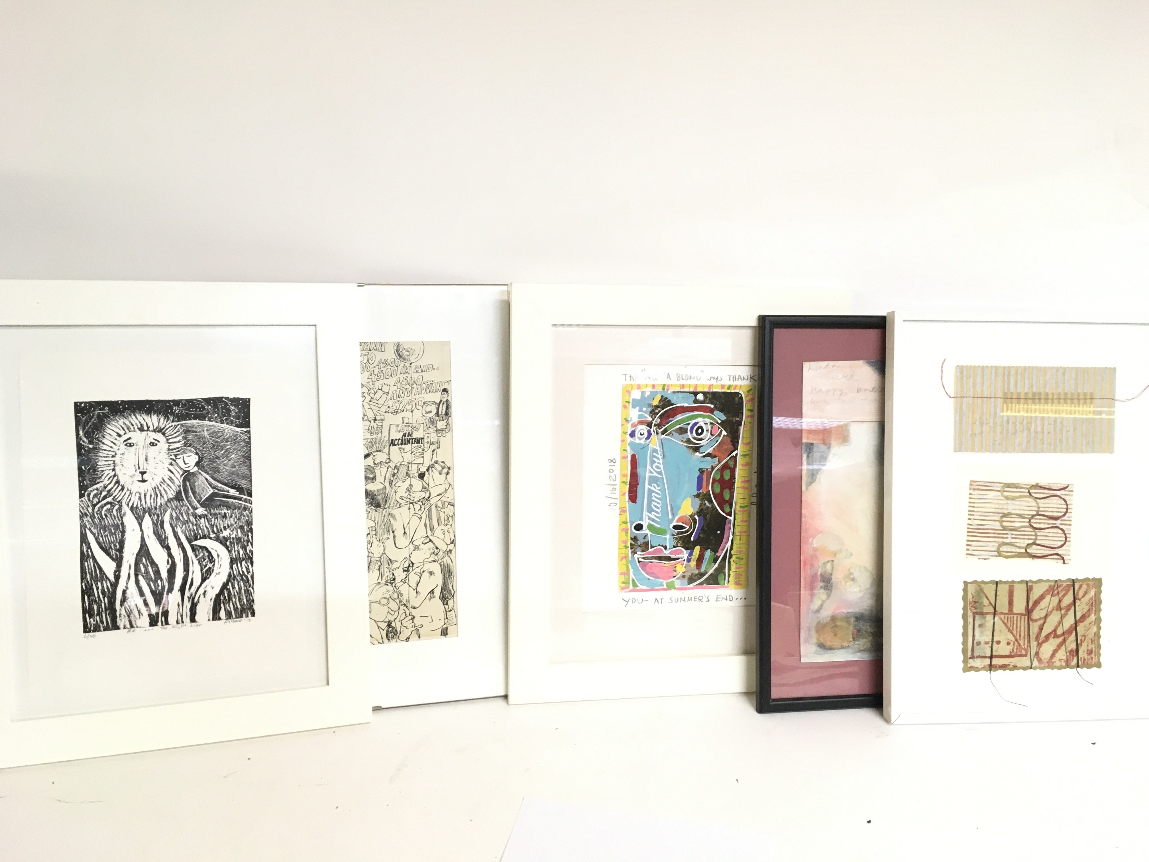A collection of modern framed sketches and abstract art, prints etc. This lot cannot be posted