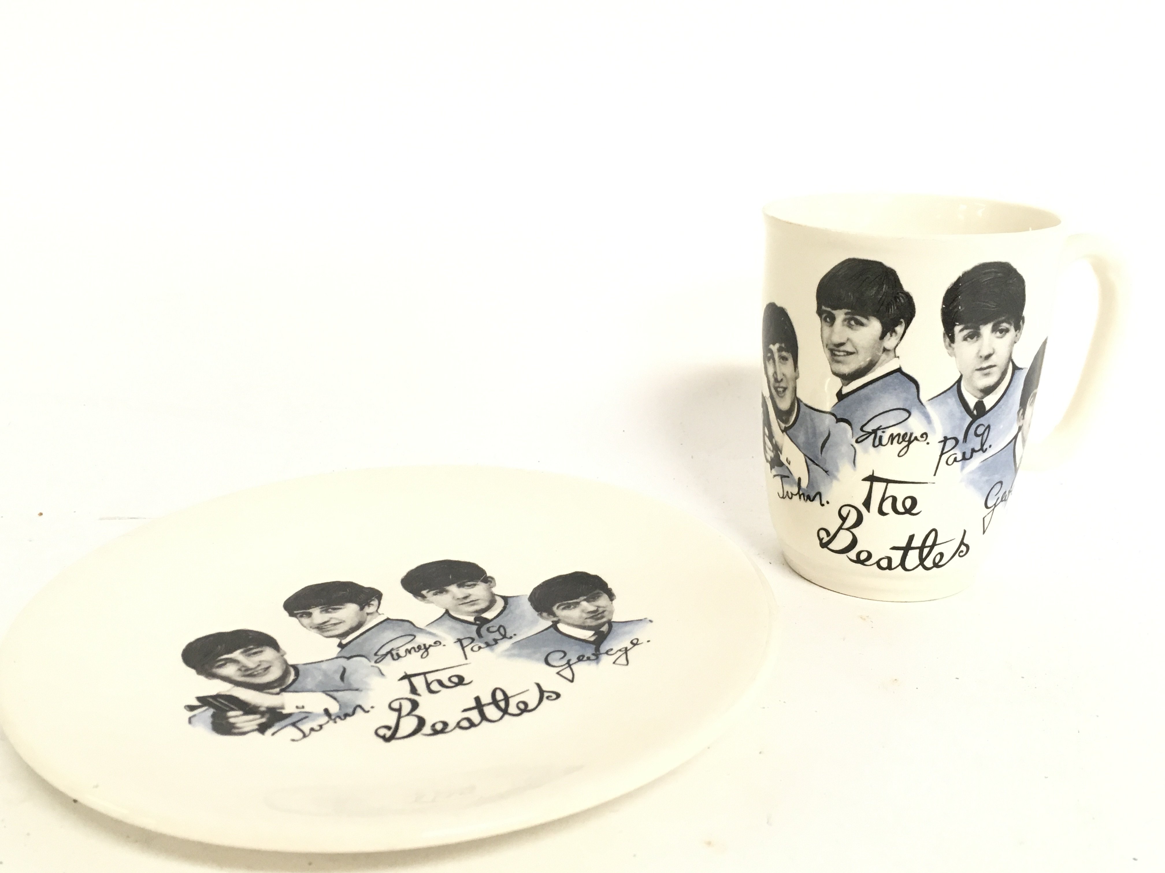 A 1960s Beatles plate and mug by Broadhurt Bros Burselm & Washington Pottery. This lot cannot be posted