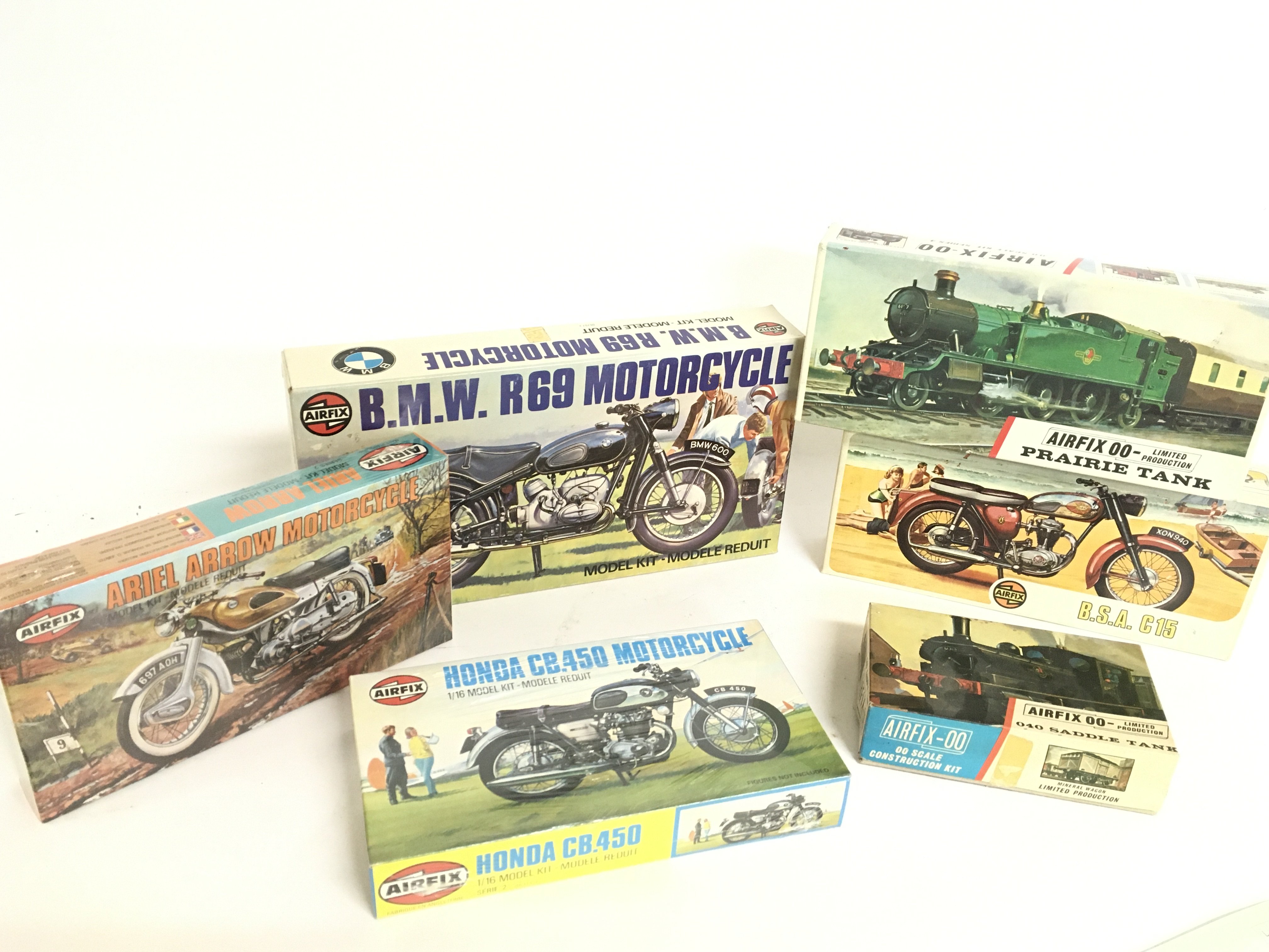 A collection of Airfix models including motorcycles, trains etc some boxed. Postage category C