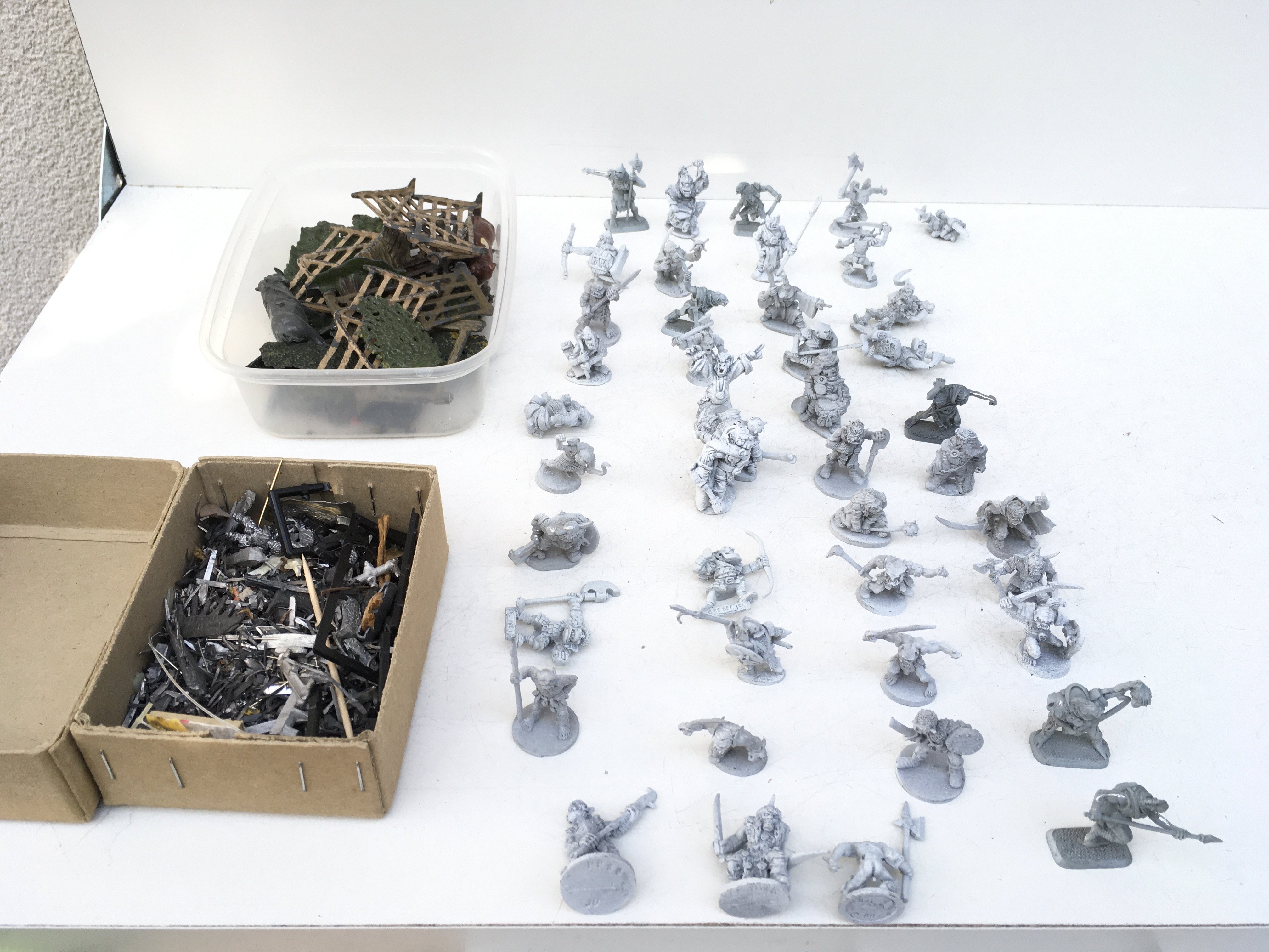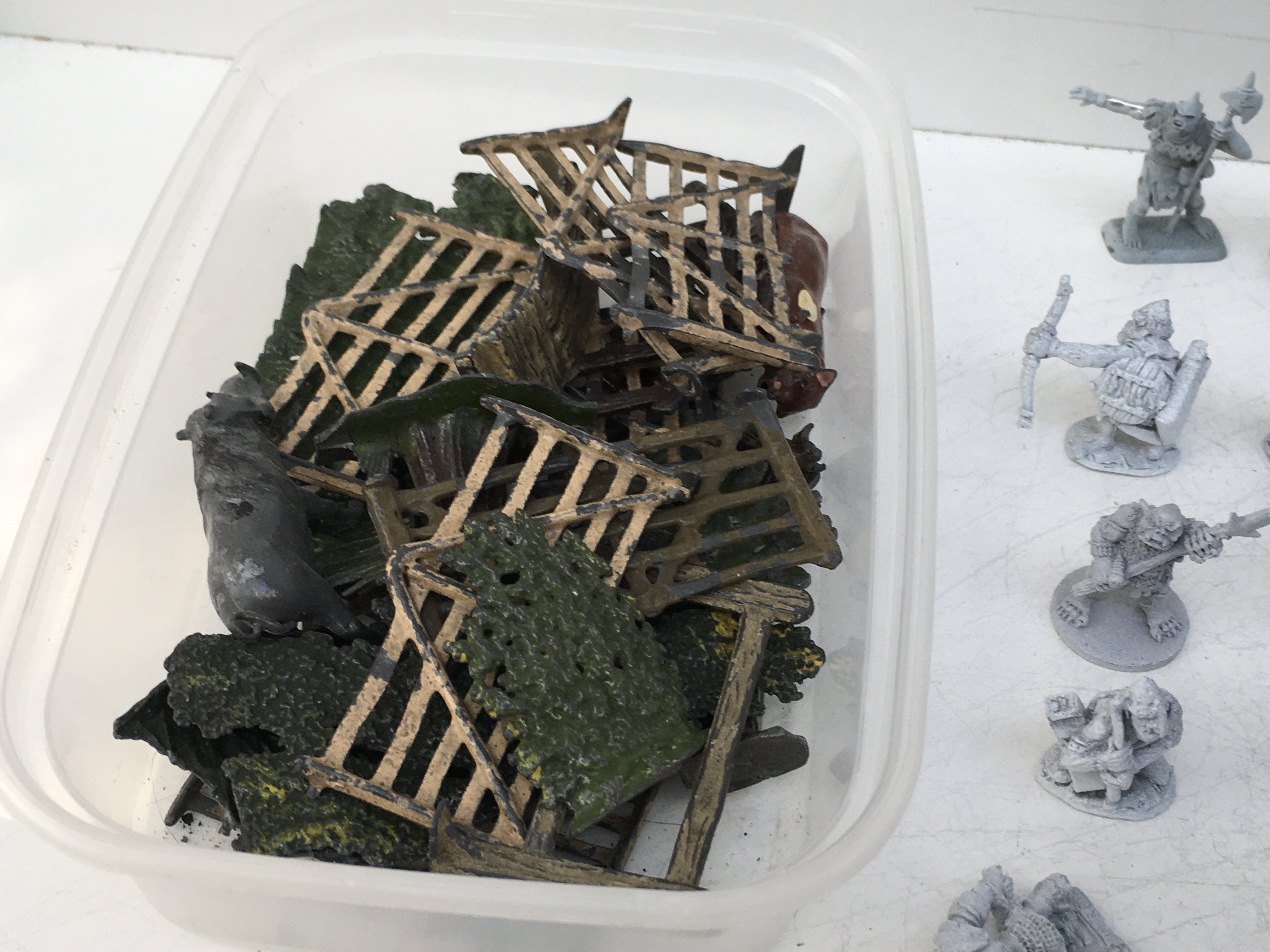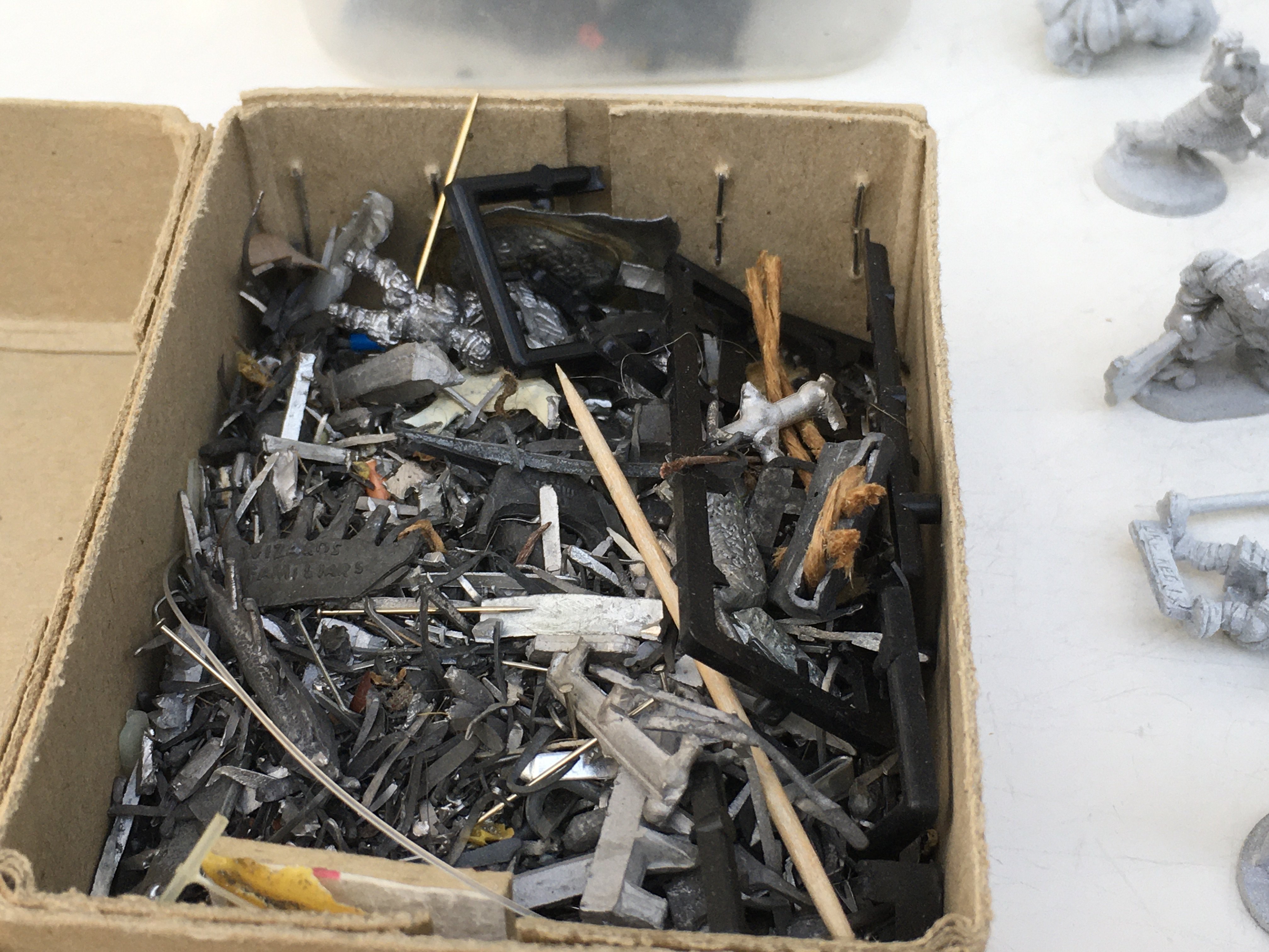 .A collection in excess of 50 metal figures and accessories mainly unpainted Warhammer by GRENADIER..RAL PARTHA etc. also a small box marked scrap.