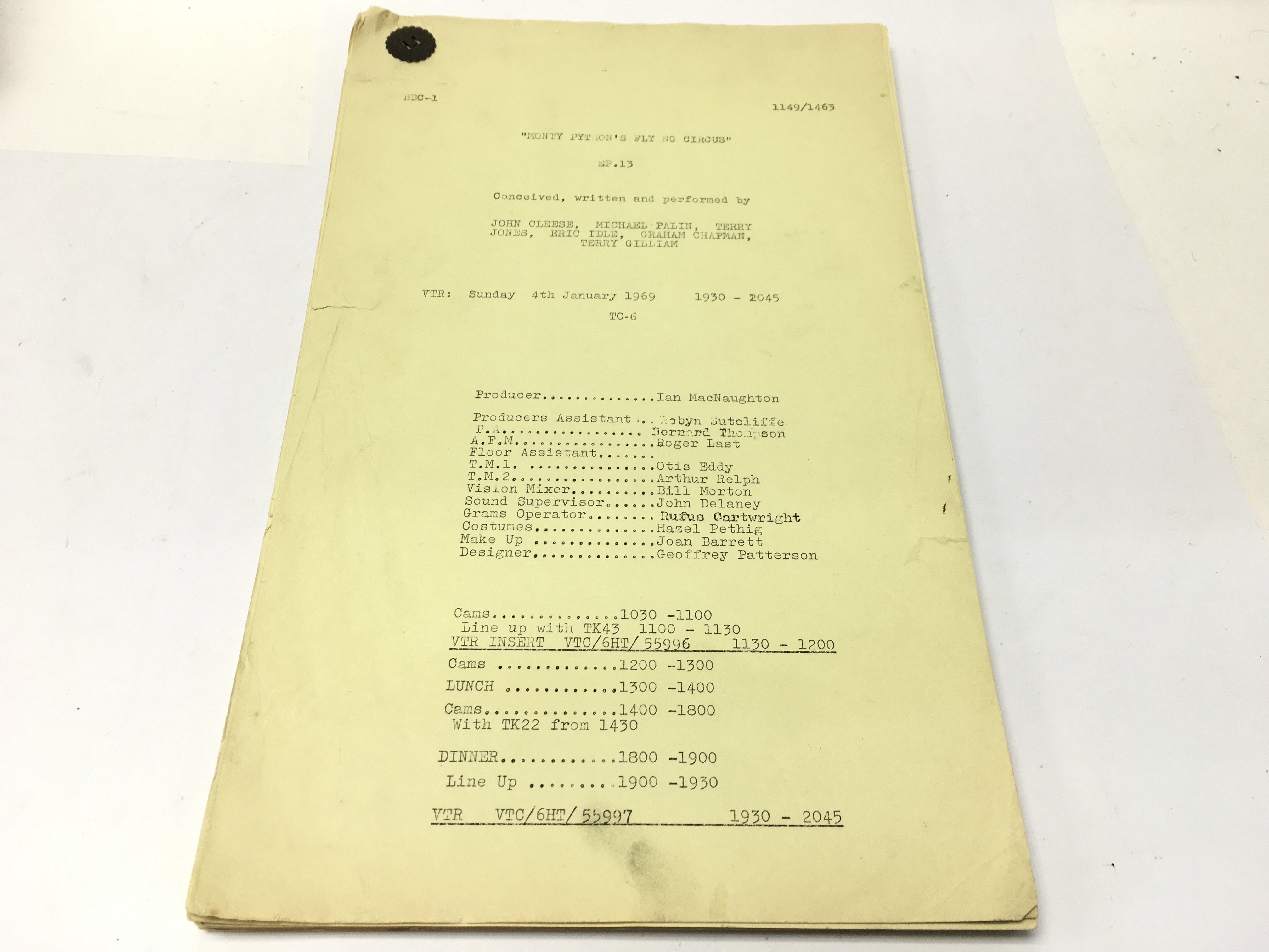 A 1969 original BBC 1 Monty Pythons flying circus script for episode 13. The series stands out for its innuendo laden humour sight gags and observational sketches.