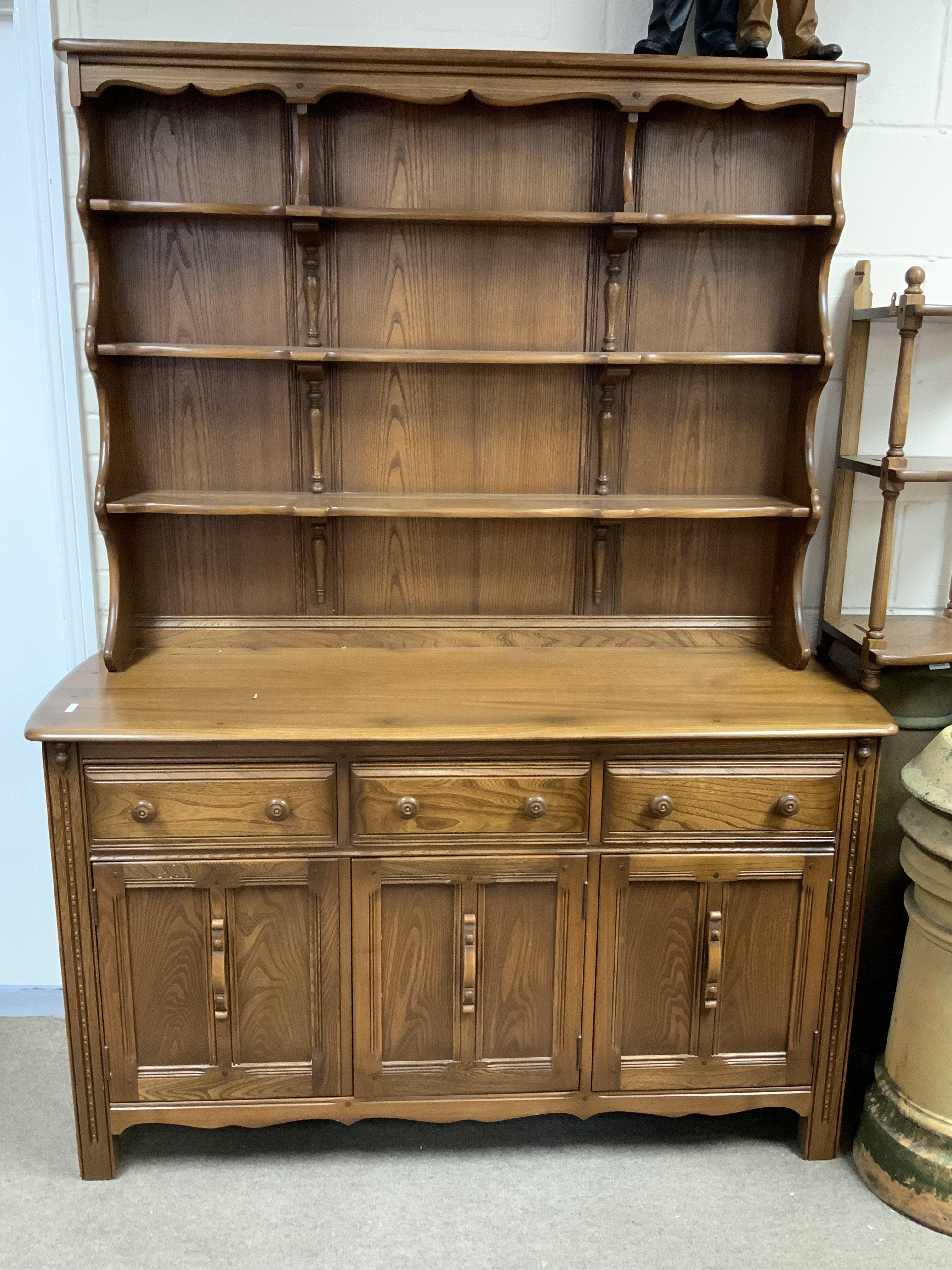 An Ercol Welsh Dresser 3 Drawers 2 Cupboards Shelving Golden Dawn. 146cm x 191cm x 50cm