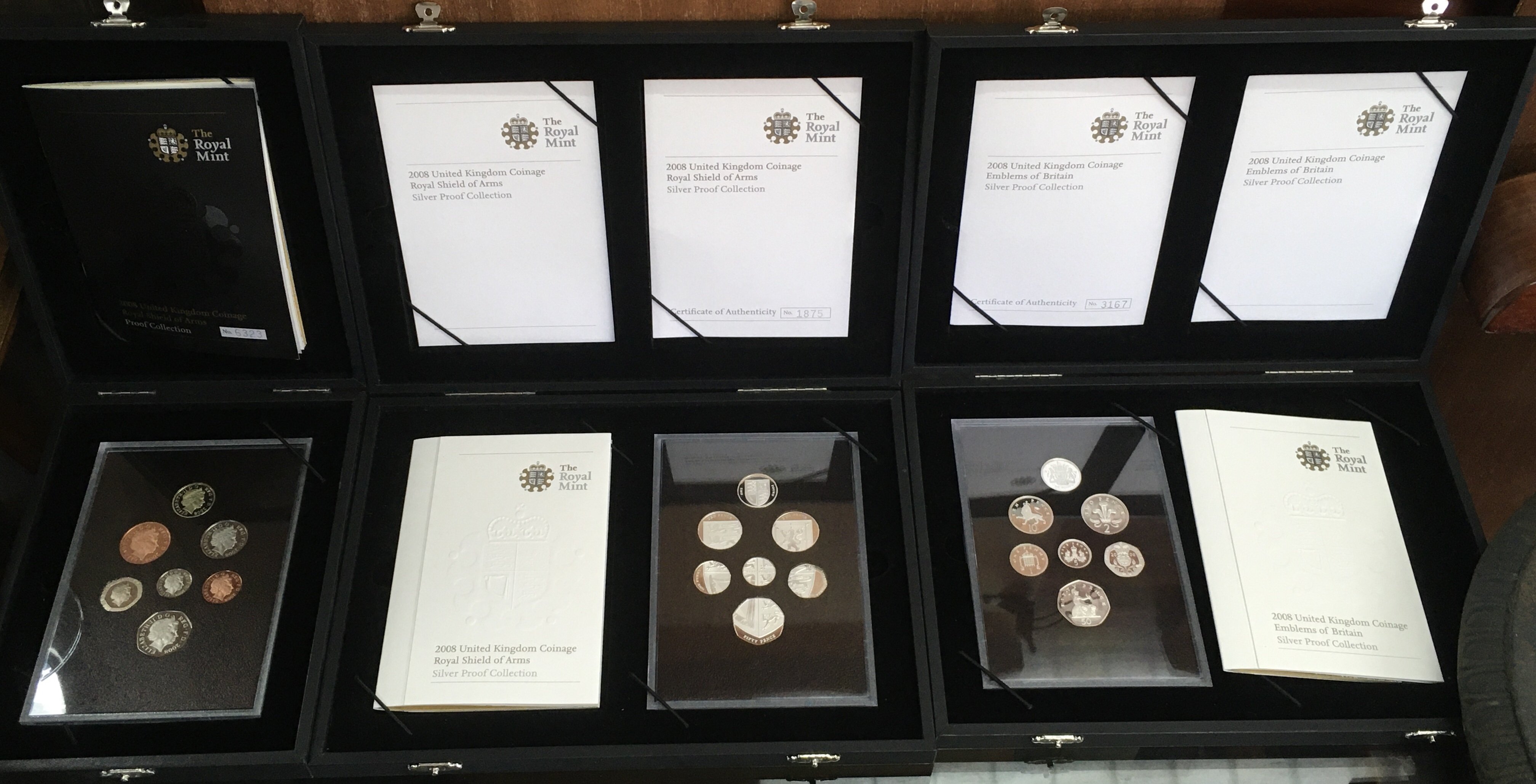 Royal Mint - Cased 2008 Silver Proof Collection Royal Shield of arms, Cased 2008 Silver Proof Collection Emblems of Britain, Cased 2008 Proof Collection Royal Shield of Arms.