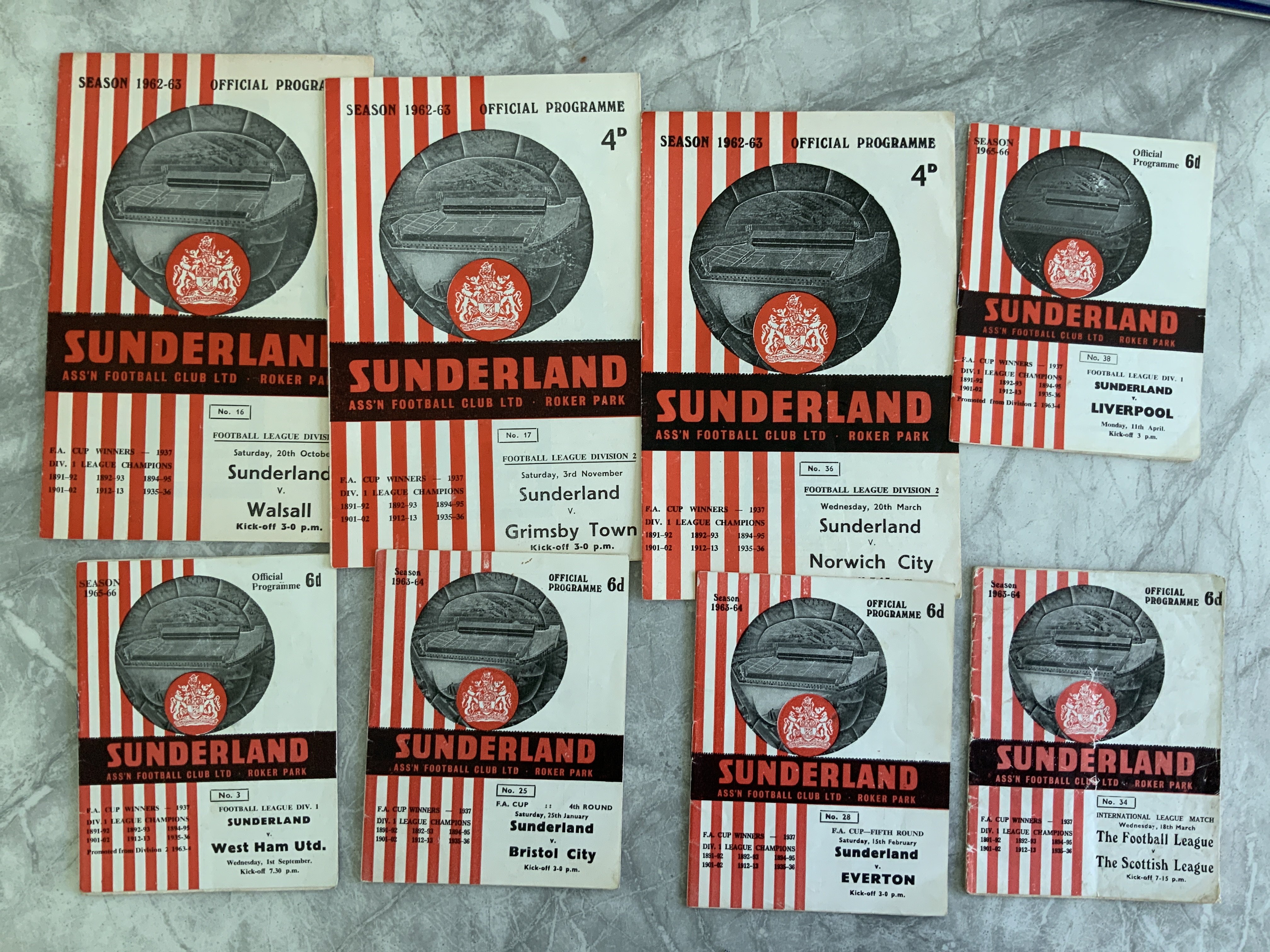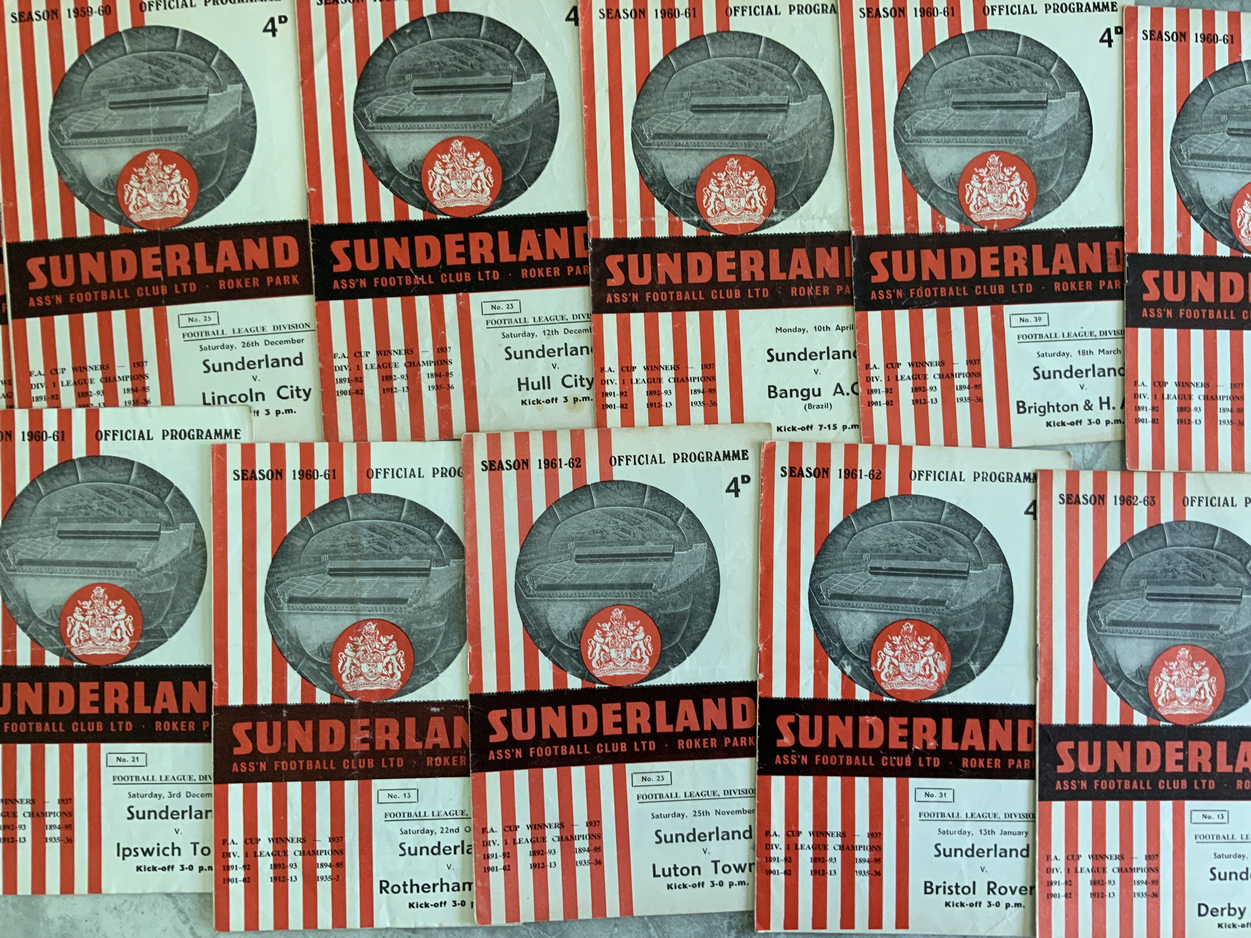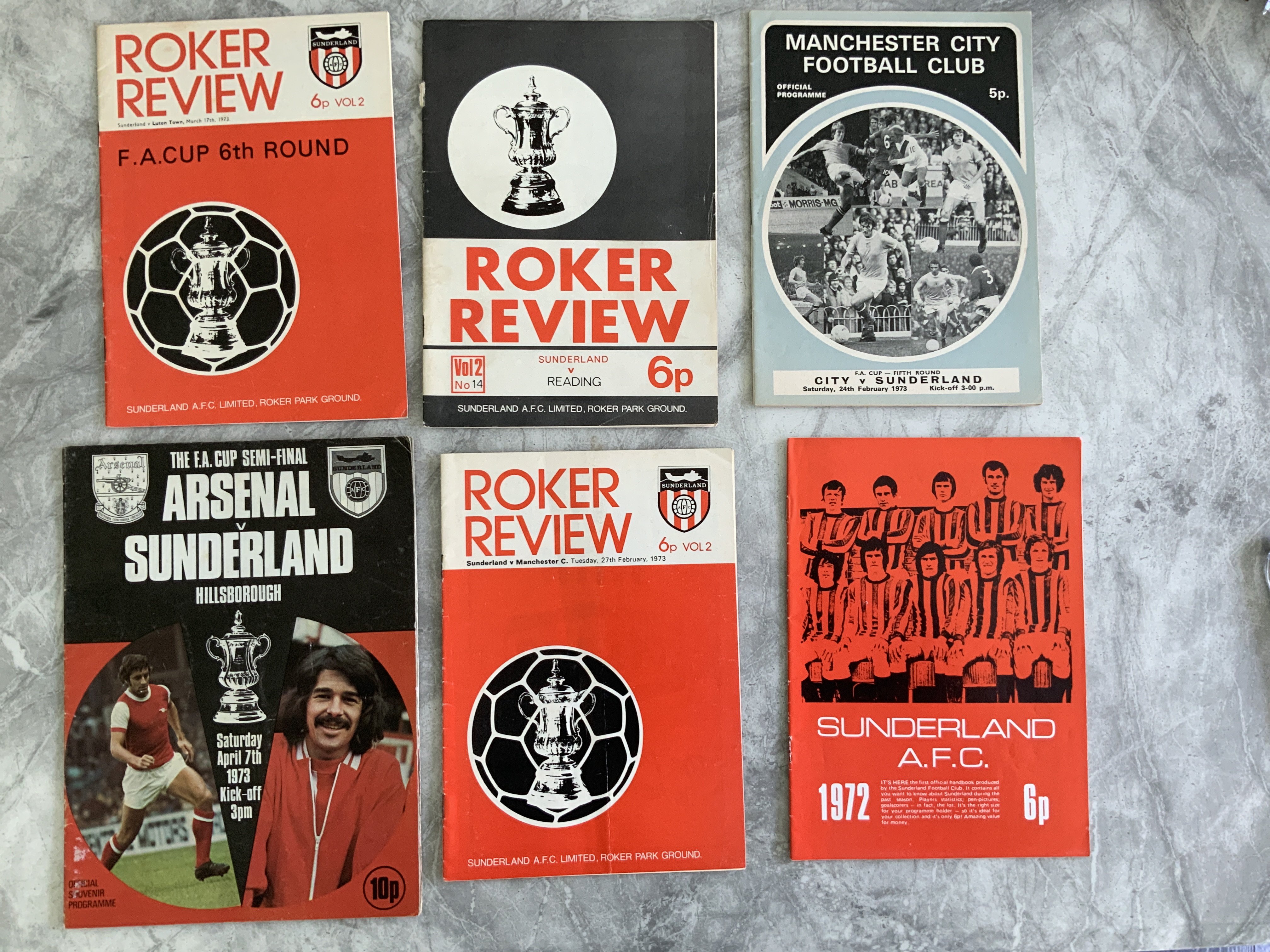 Sunderland Football Programme Collection: 8 homes from 56/57 then a further 18 to the mid 60s. C/W 6 programmes from the 1973 FA Cup win excluding final and Notts County. Very good.