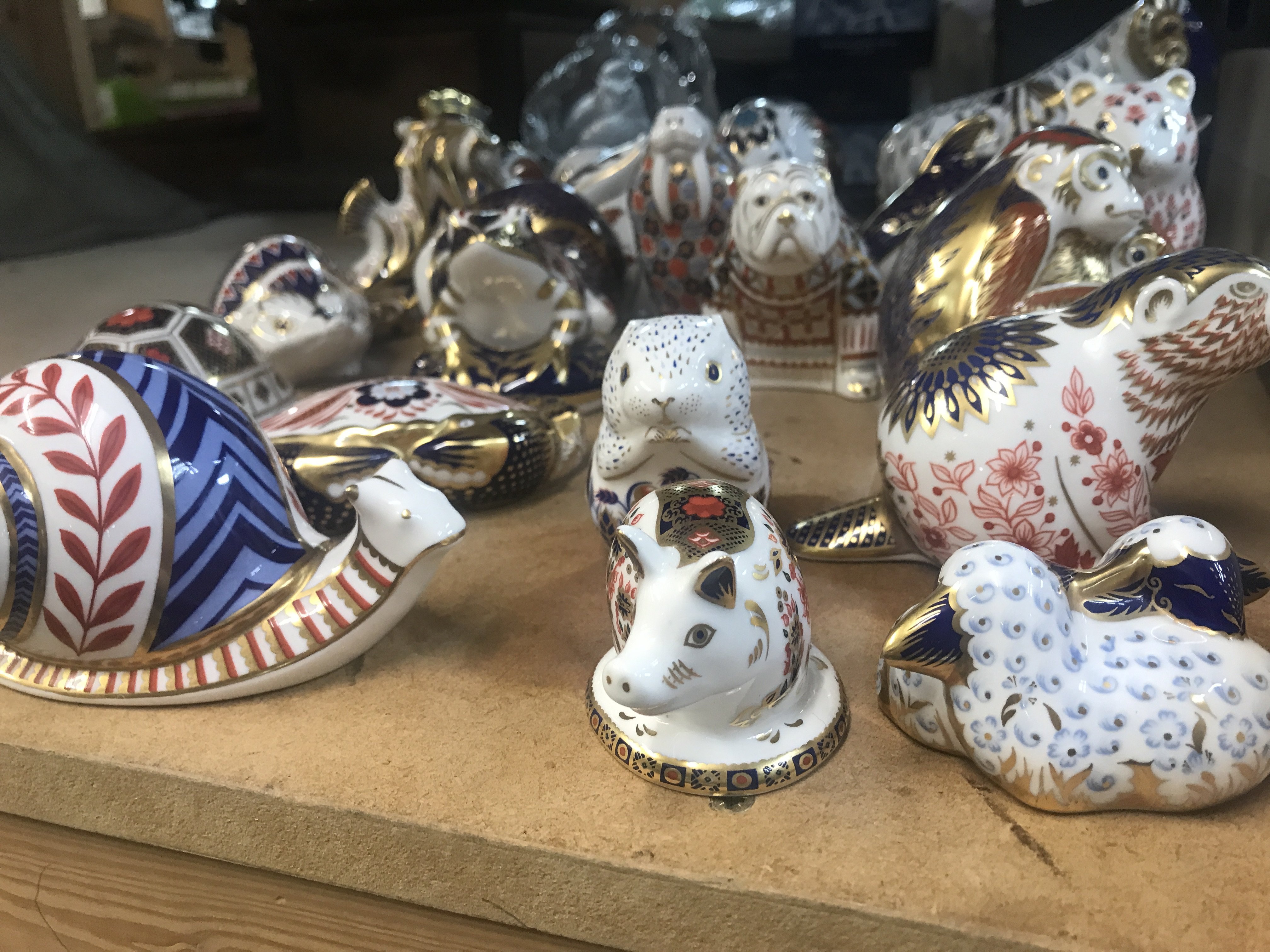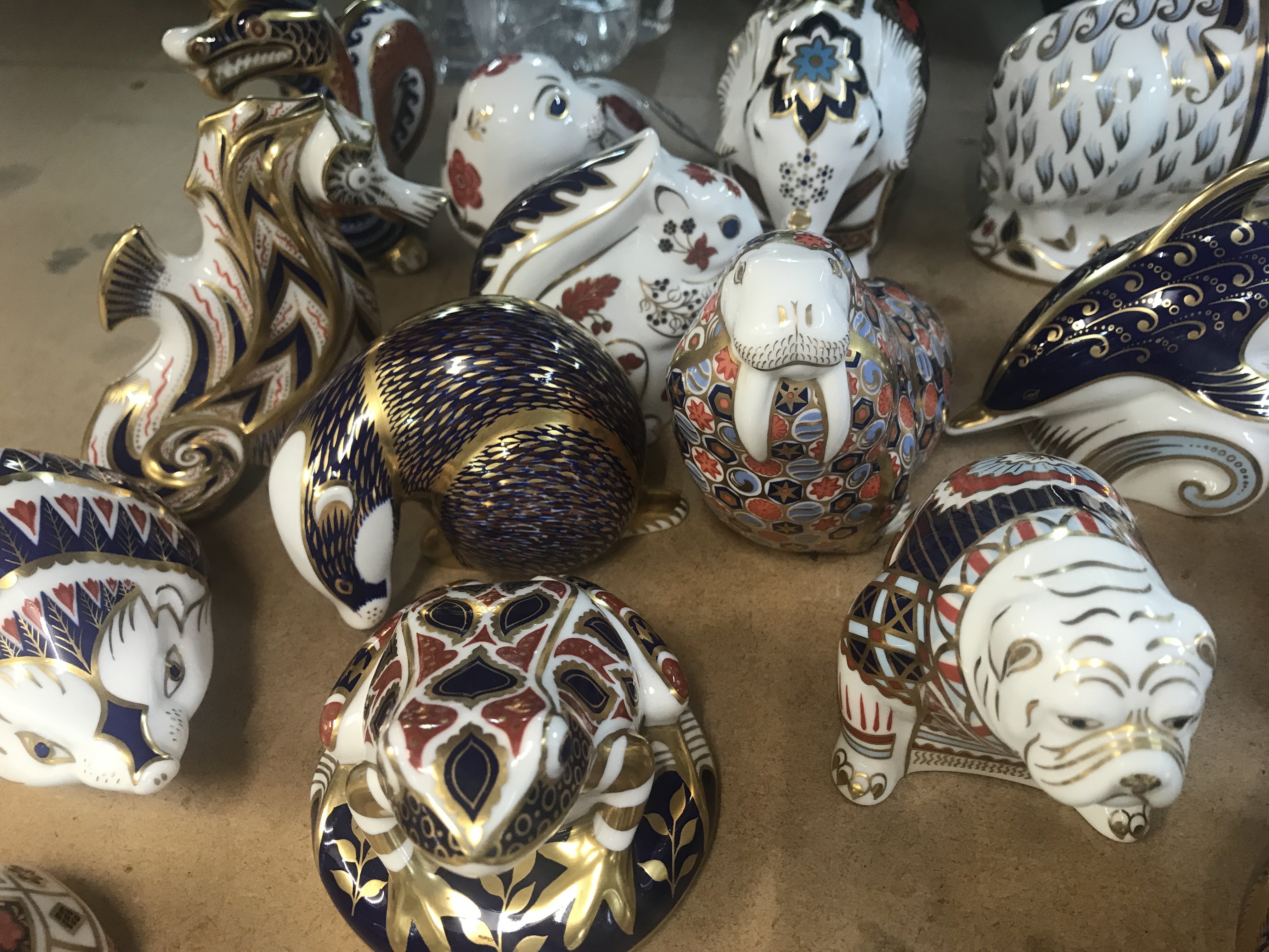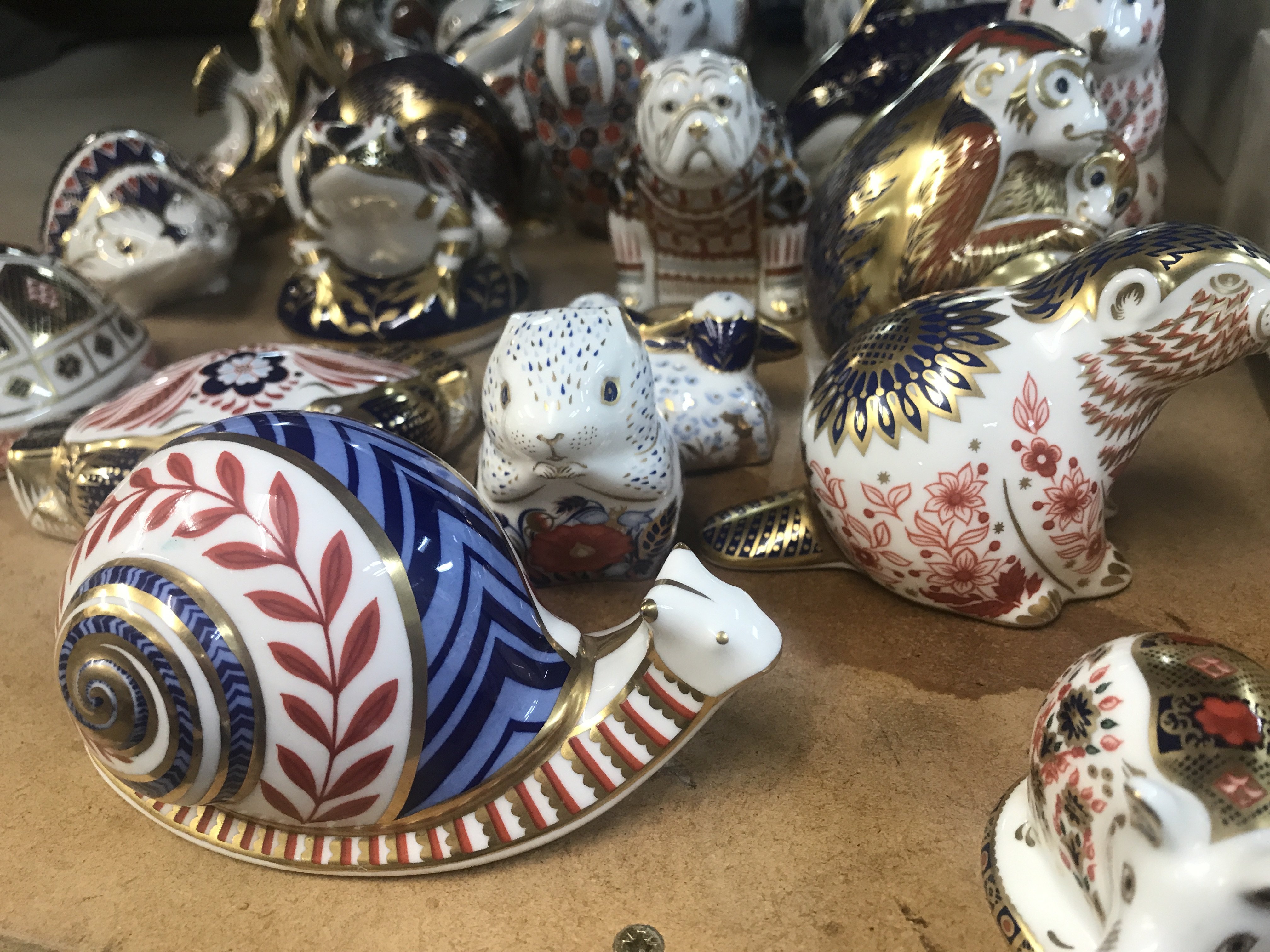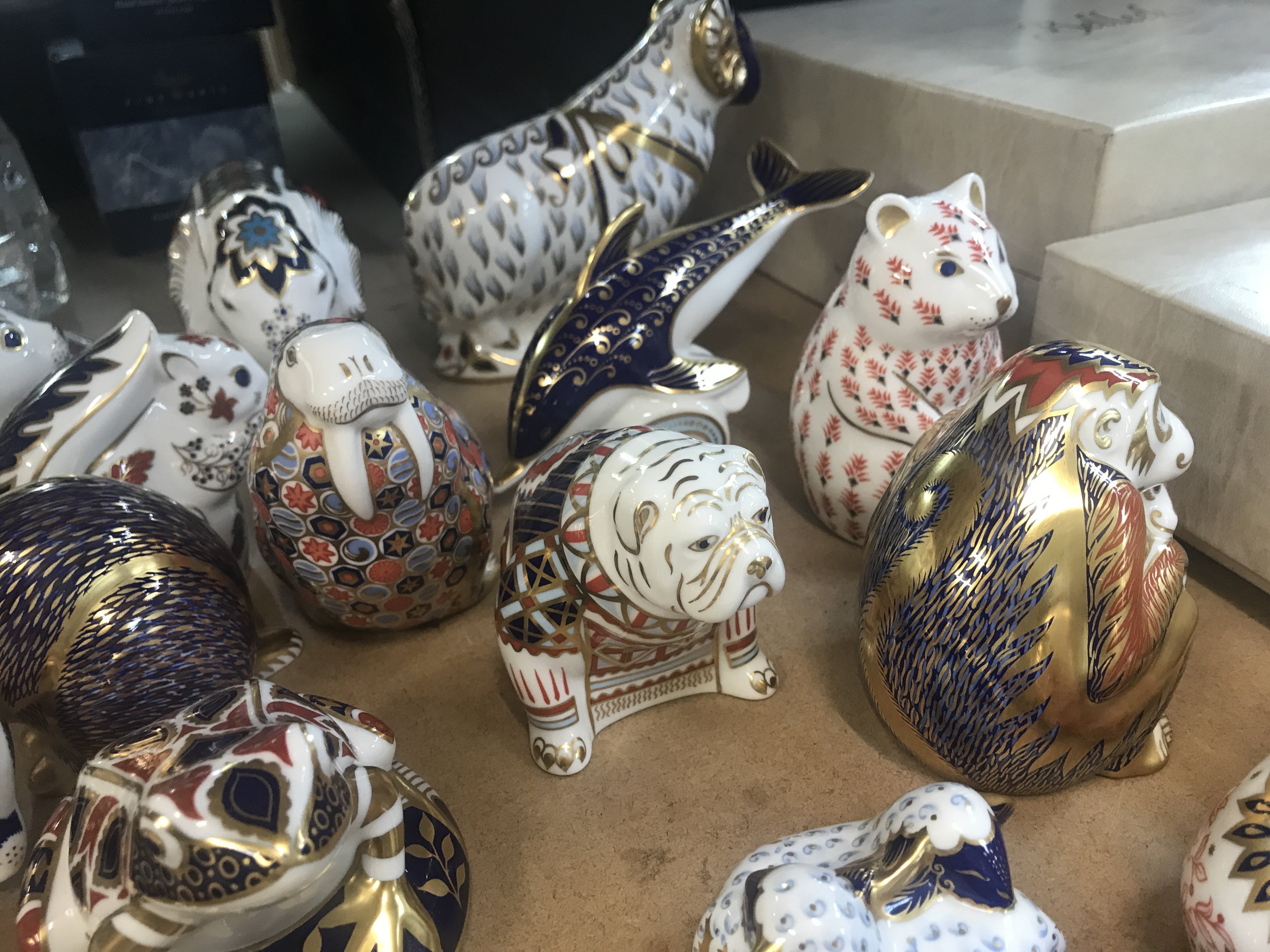 A Collection of 21 Royal crown derby animals weights with gold stoppers.