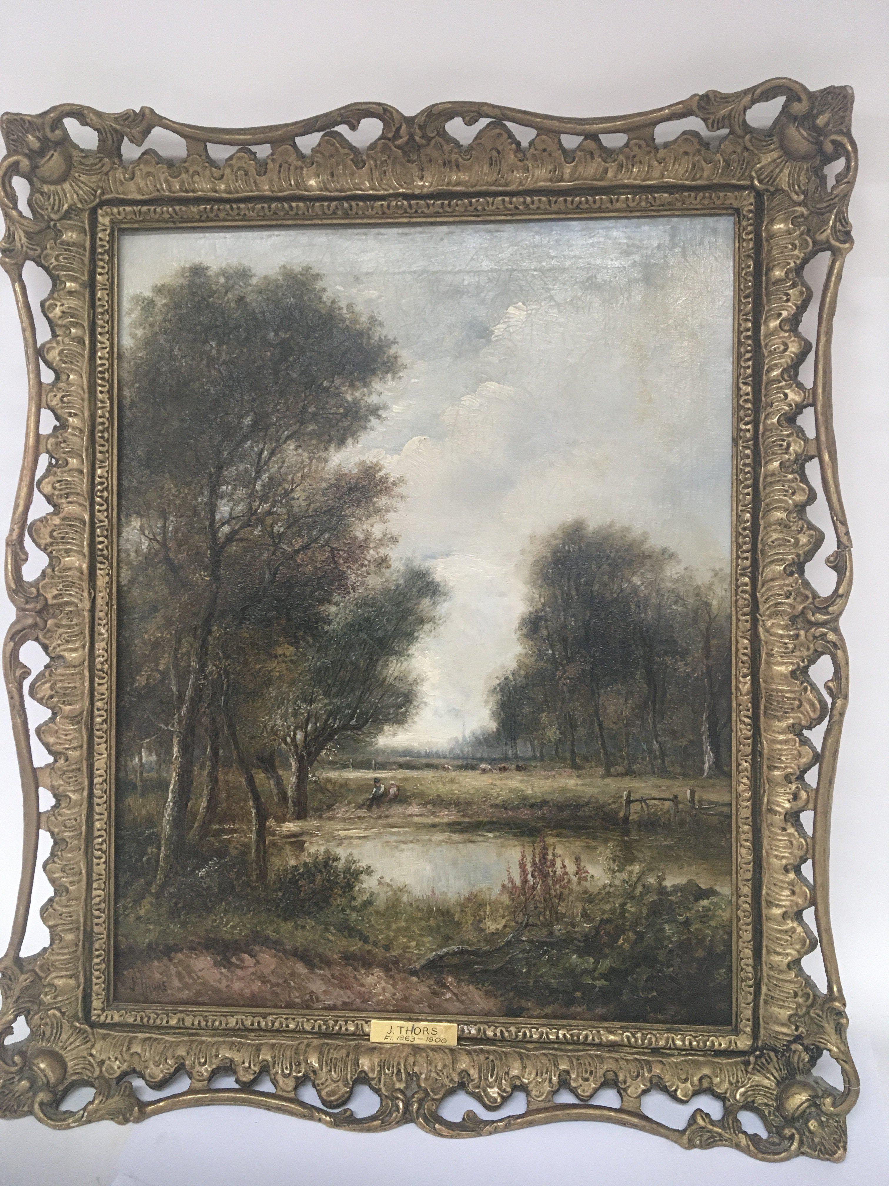 A framed oil painting rural view signed and attributed to J Thors 1863-1900.62x42cm
