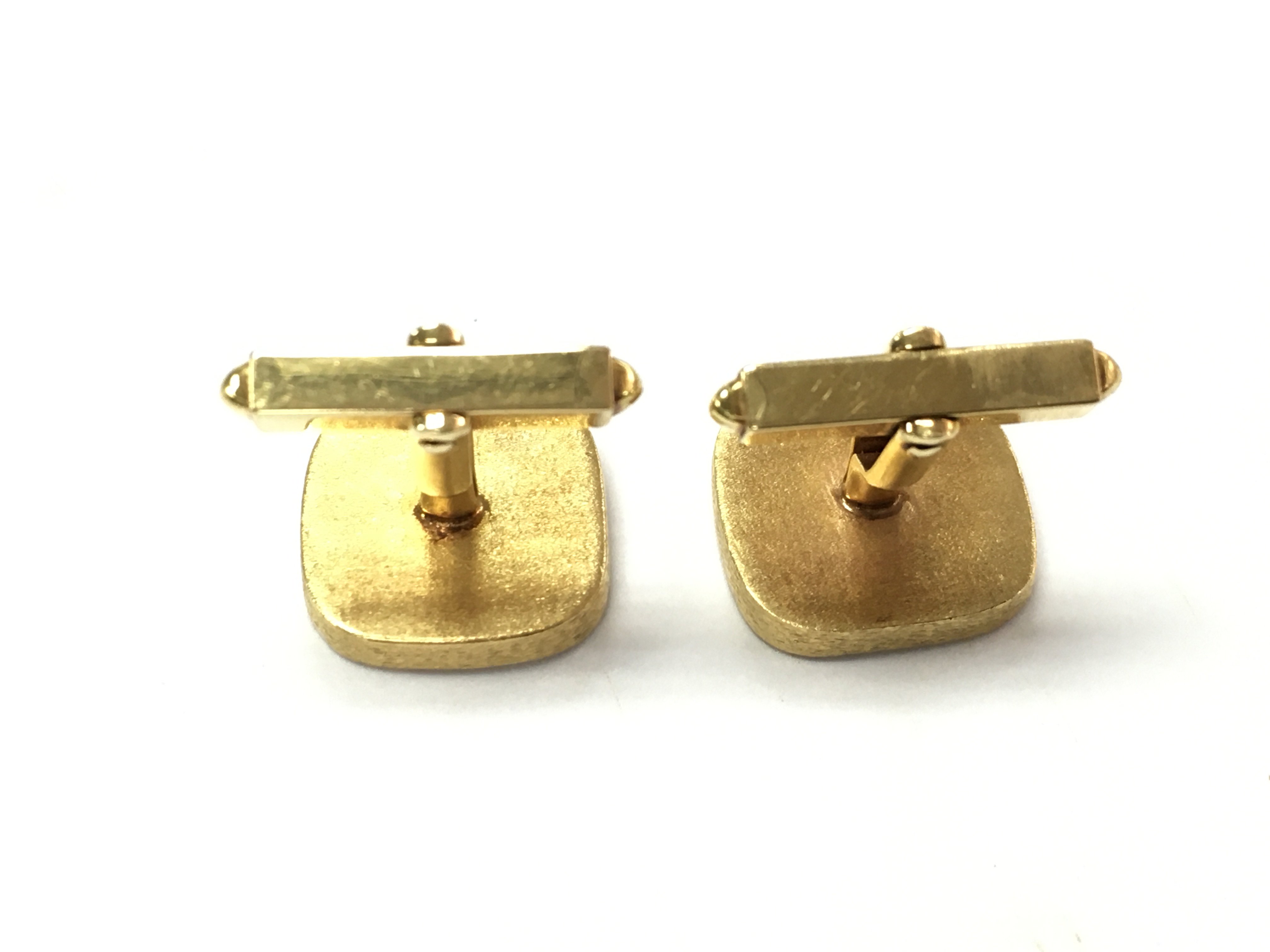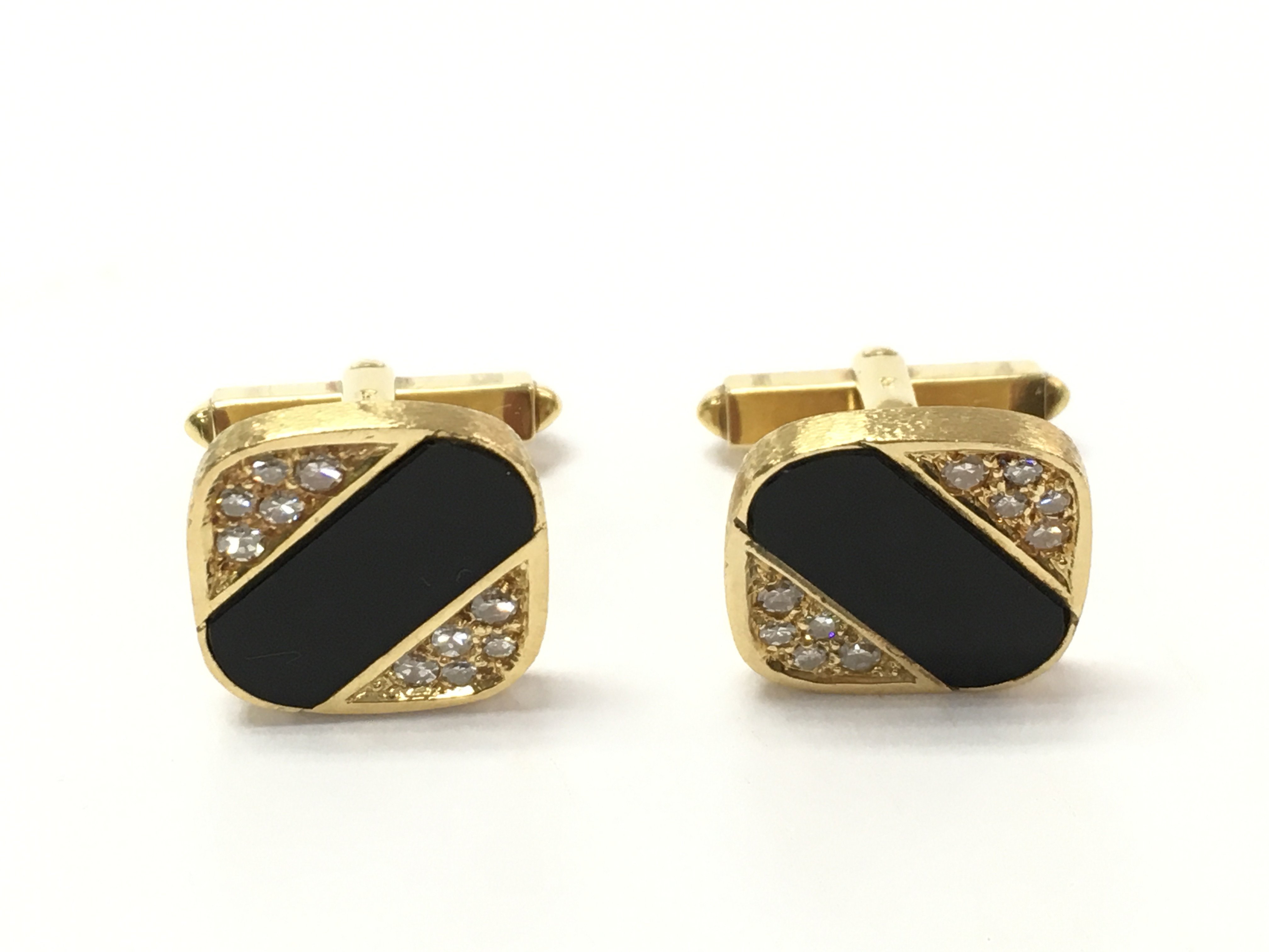 A pair of 18ct gold onyx and diamond cufflinks. 13.8g