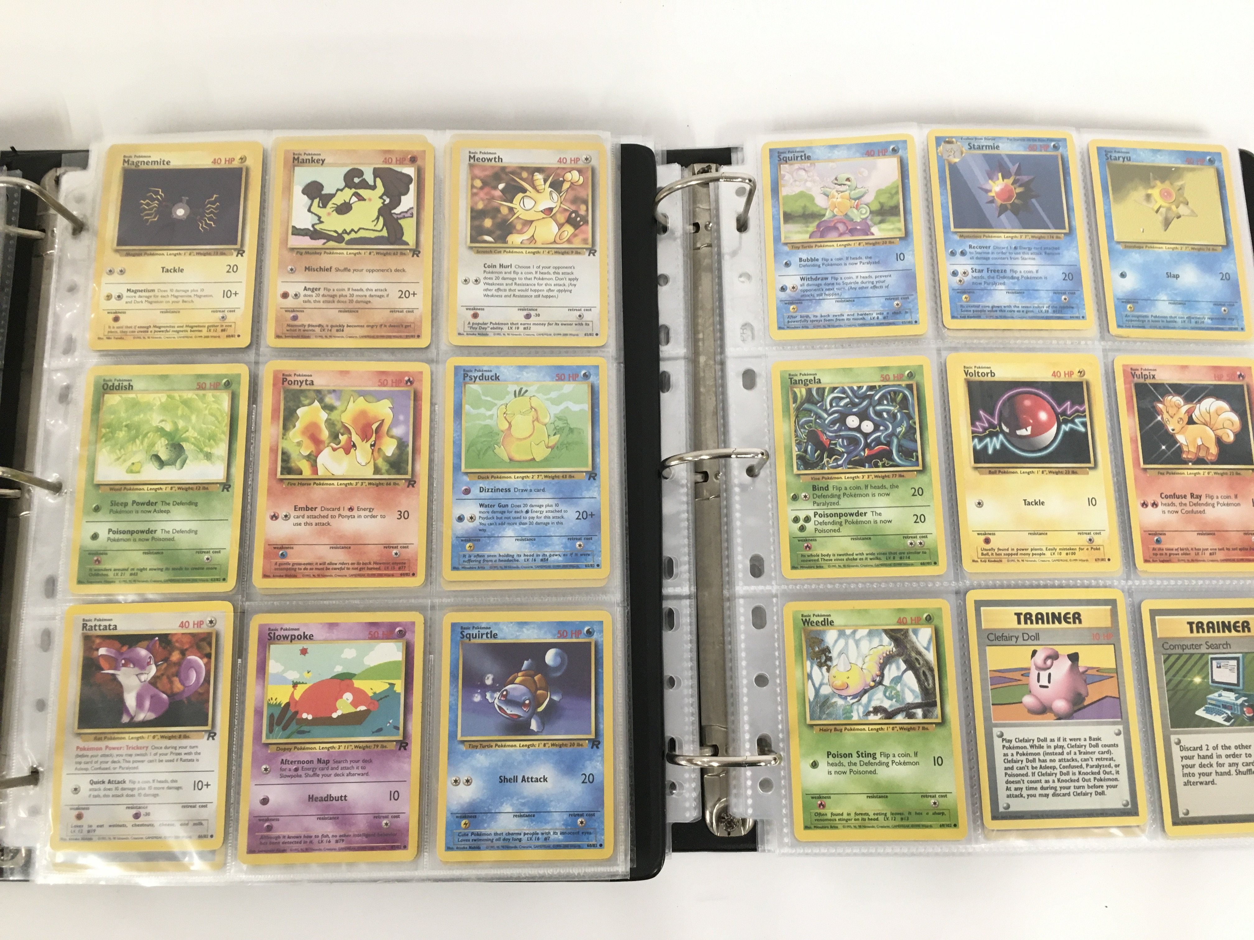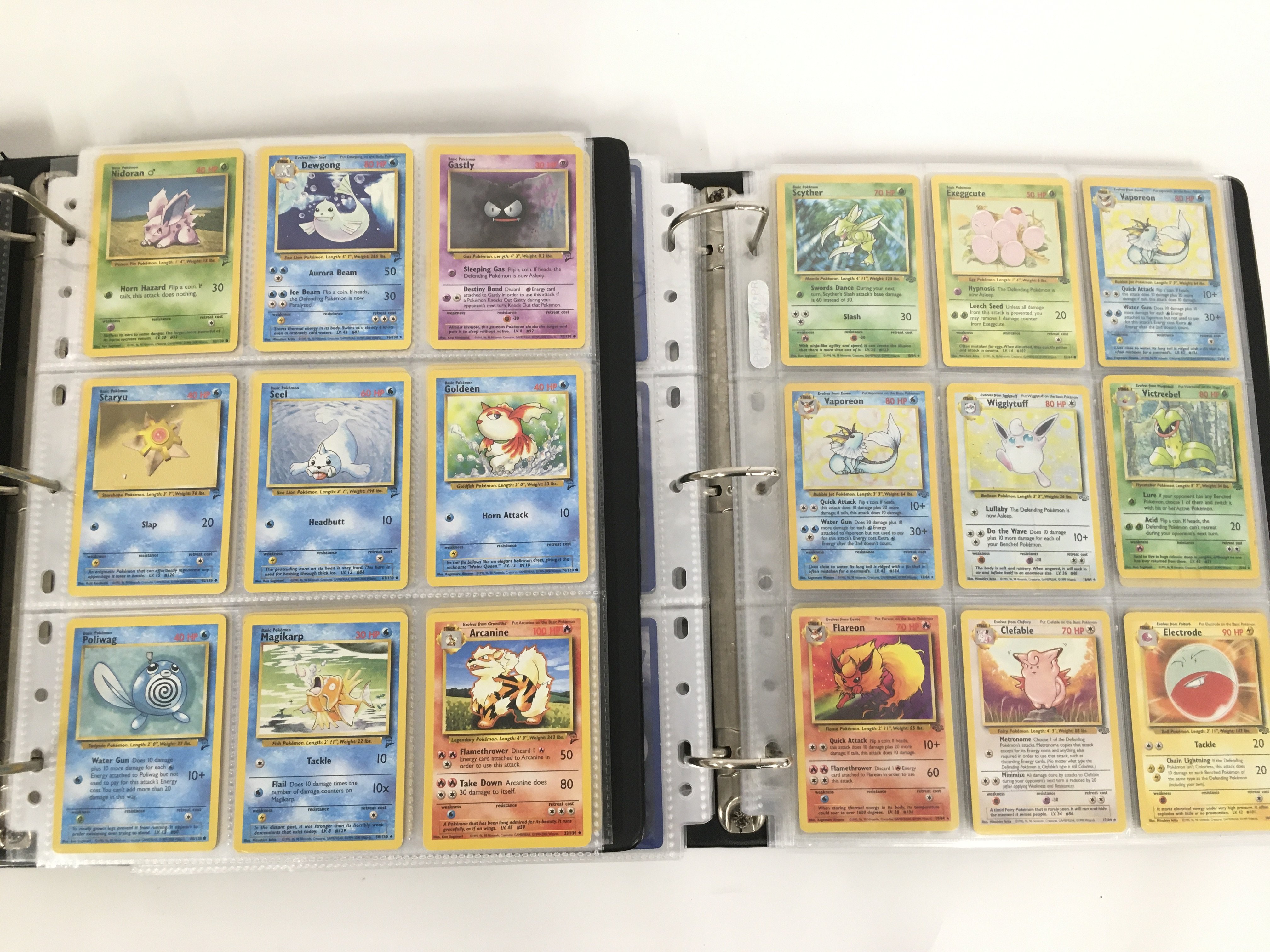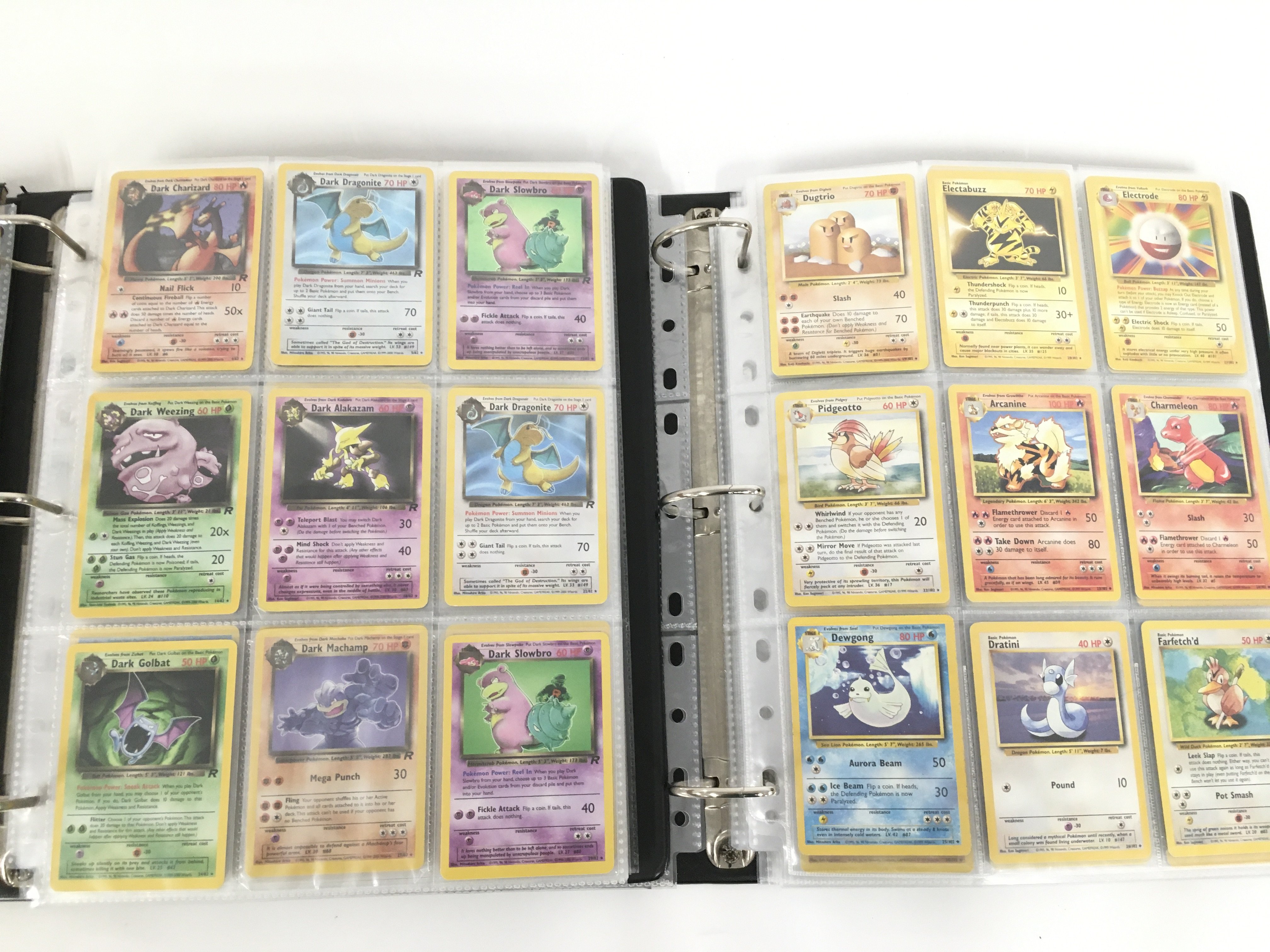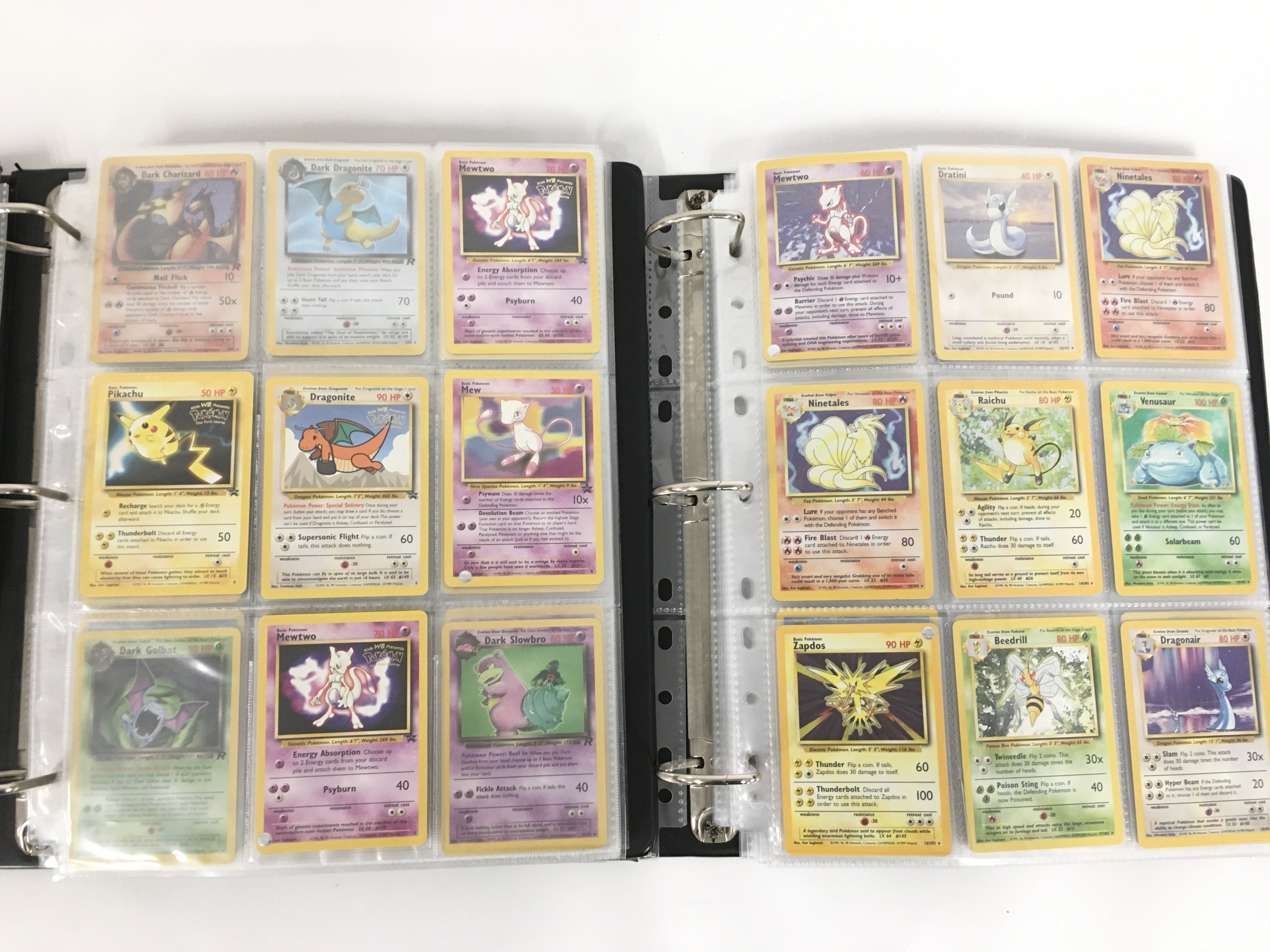 2 Binders Containing Vintage Pokemon Cards Including Original Base. Jungle. Fossil. Black Star Promos. Team Rocket Base Set 2 Neo Genesis 1St Edition and Gyn Reros. Vewing Is Advised.