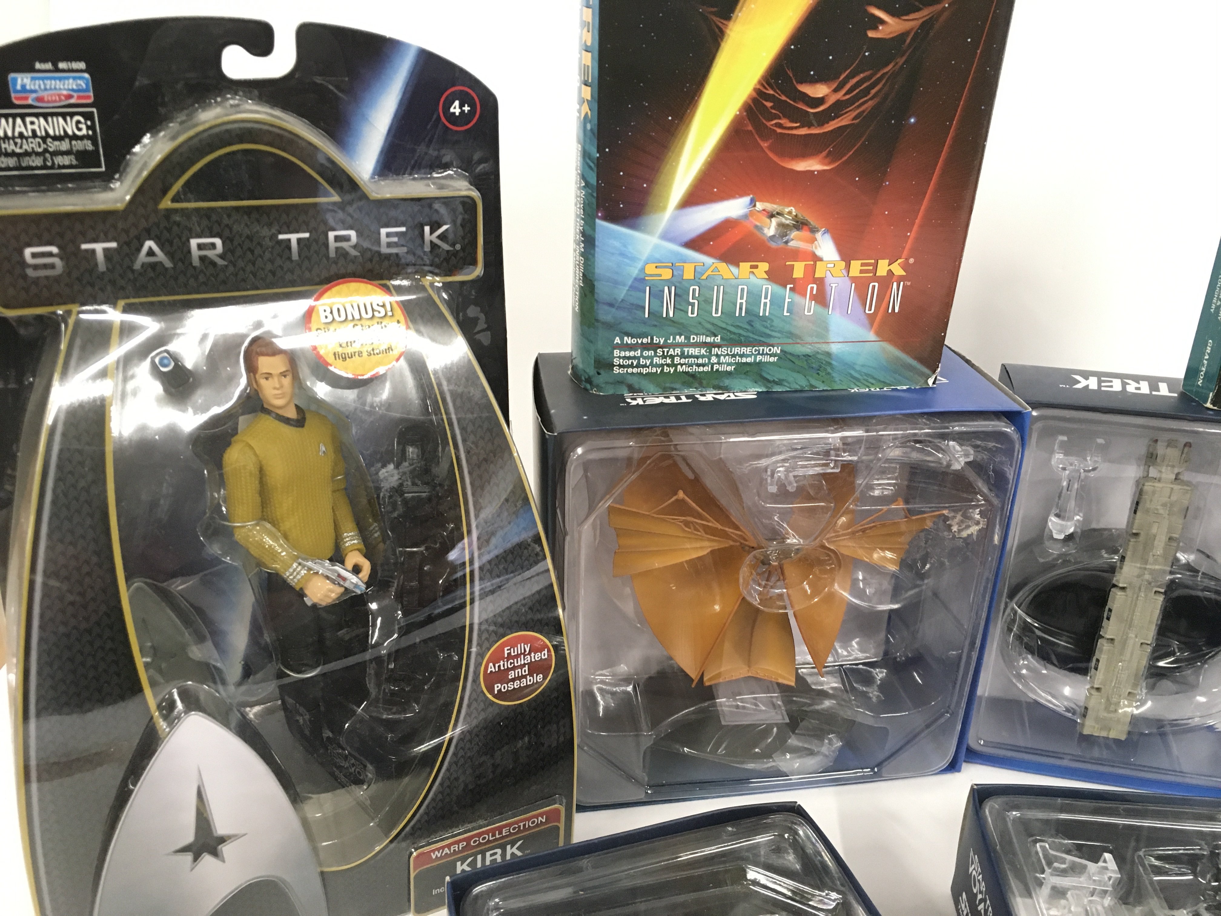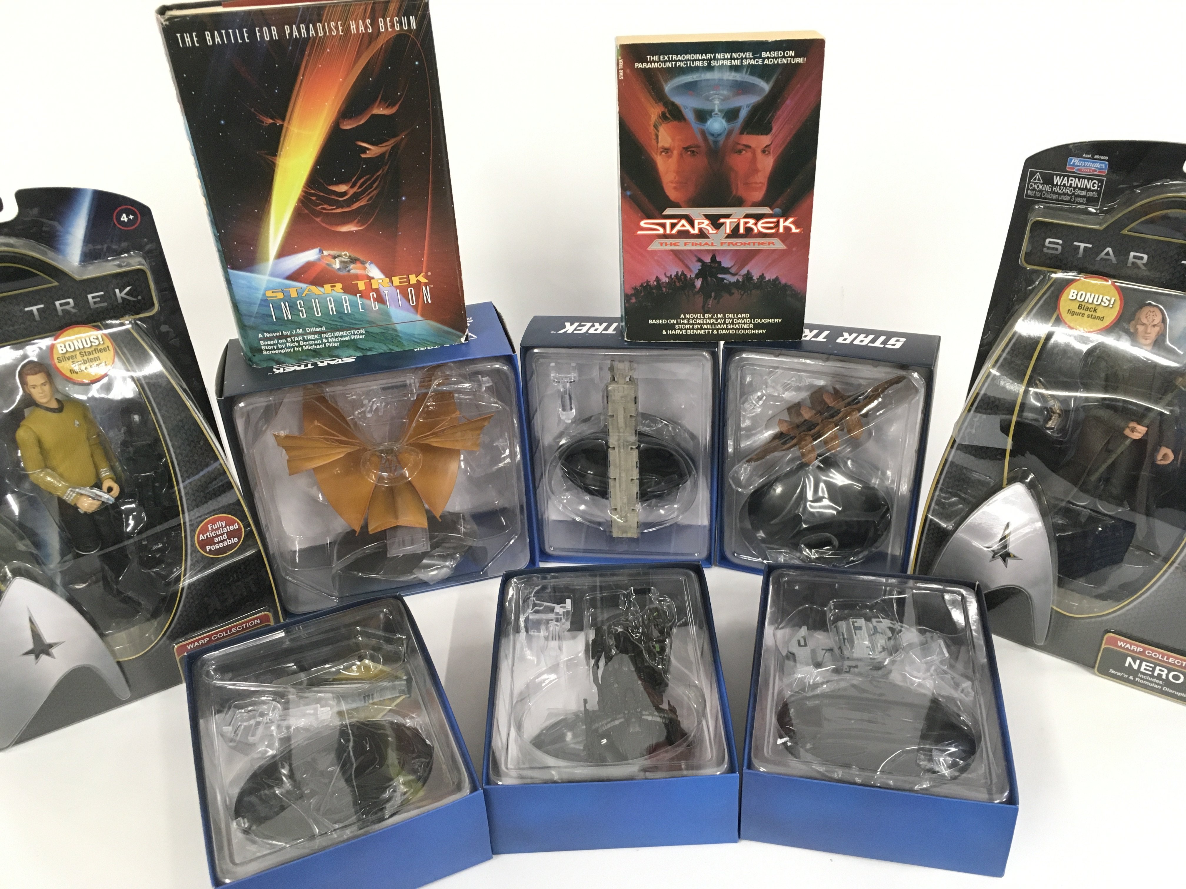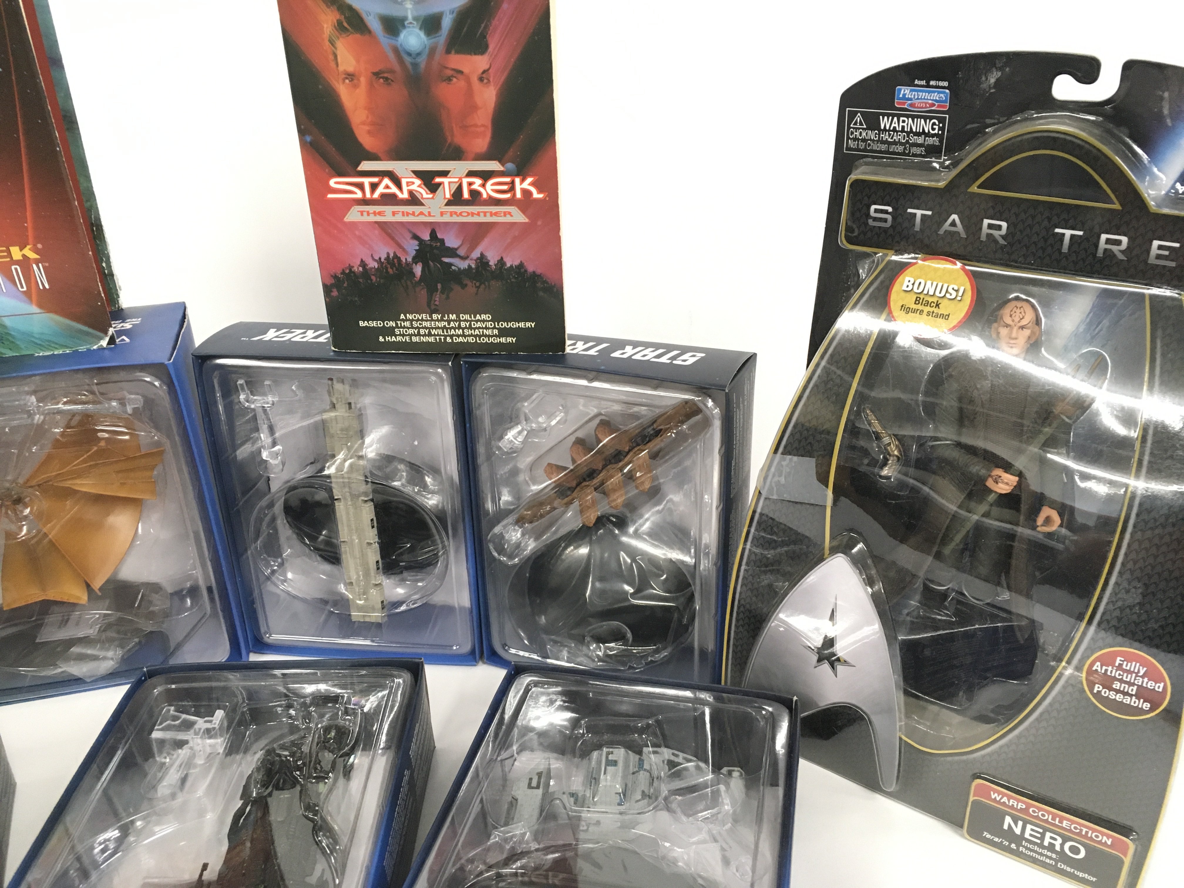 A Collection of Eaglemoss Star Trek Vehicle. 2 X Star Trek Figures and 2 X Books.