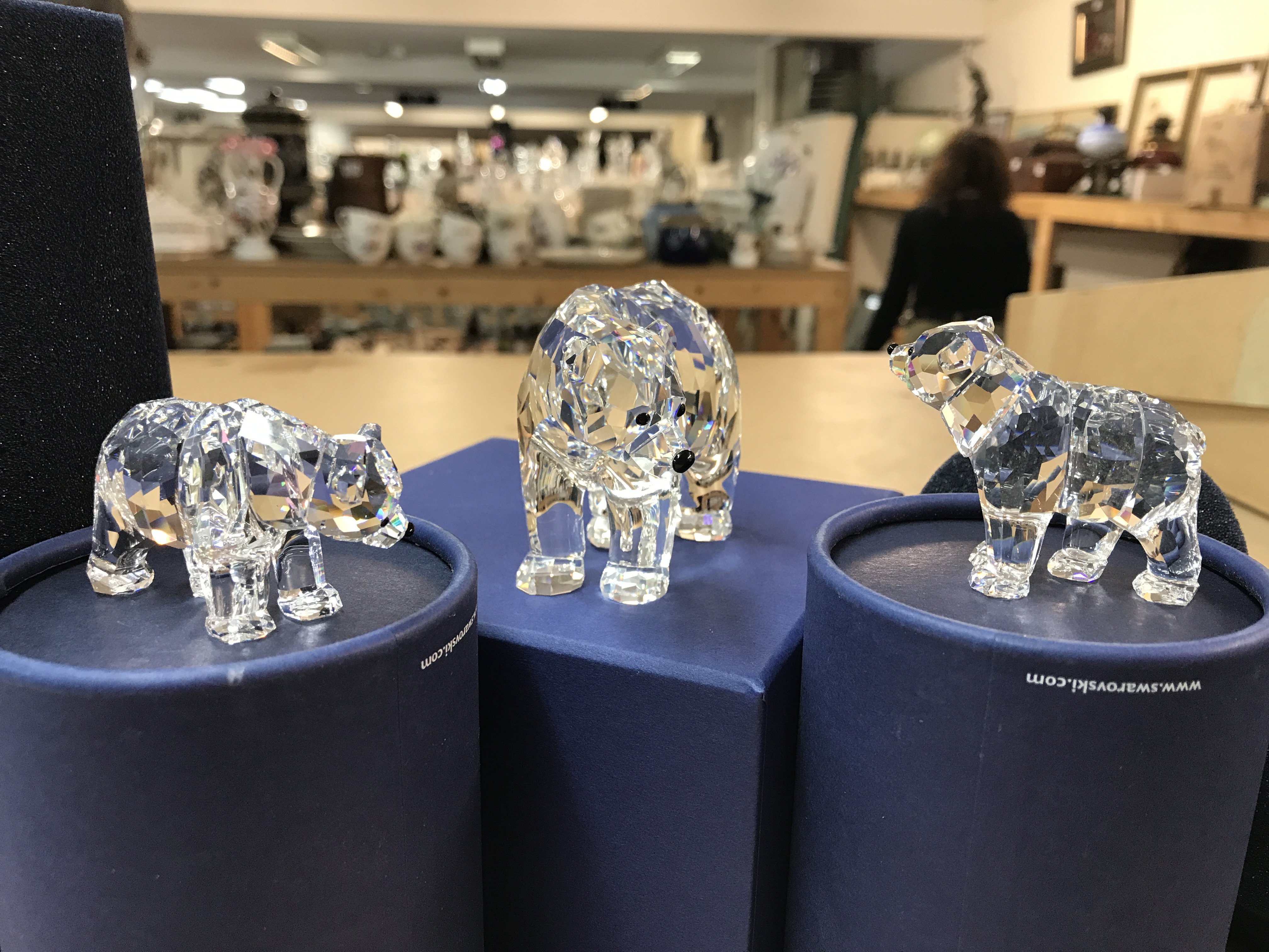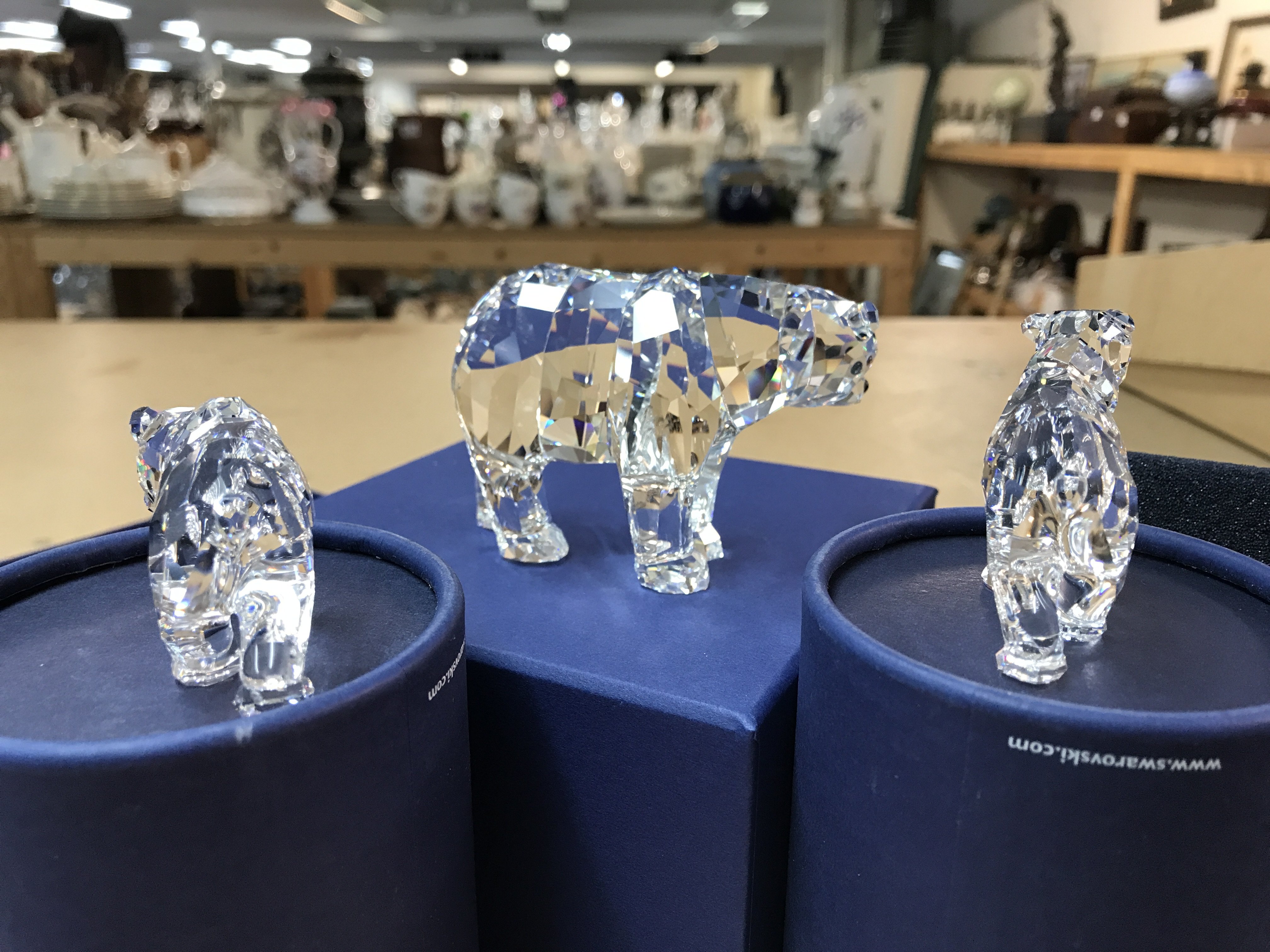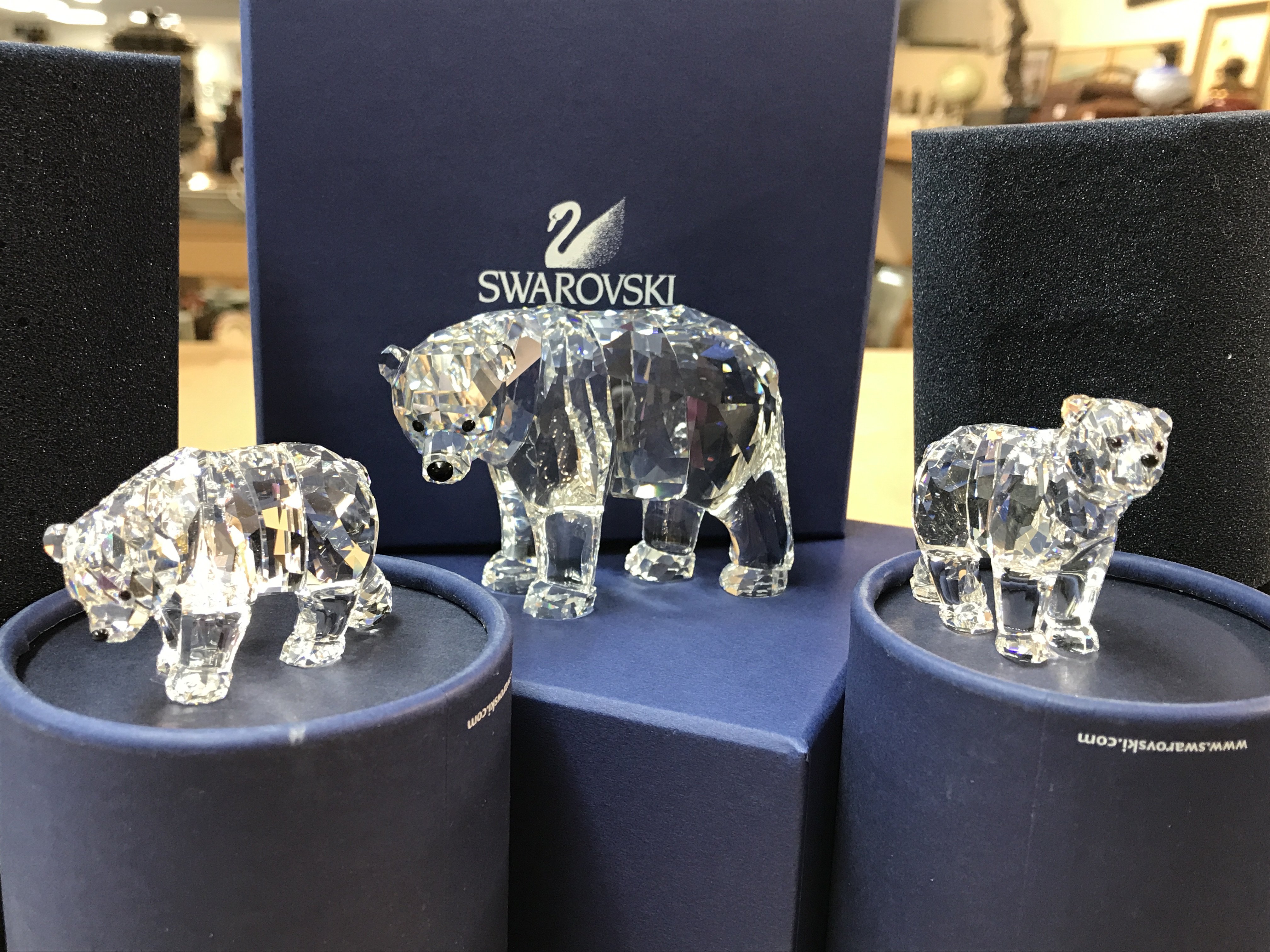 Three boxed Swarovski polar bear including mother and two cubs