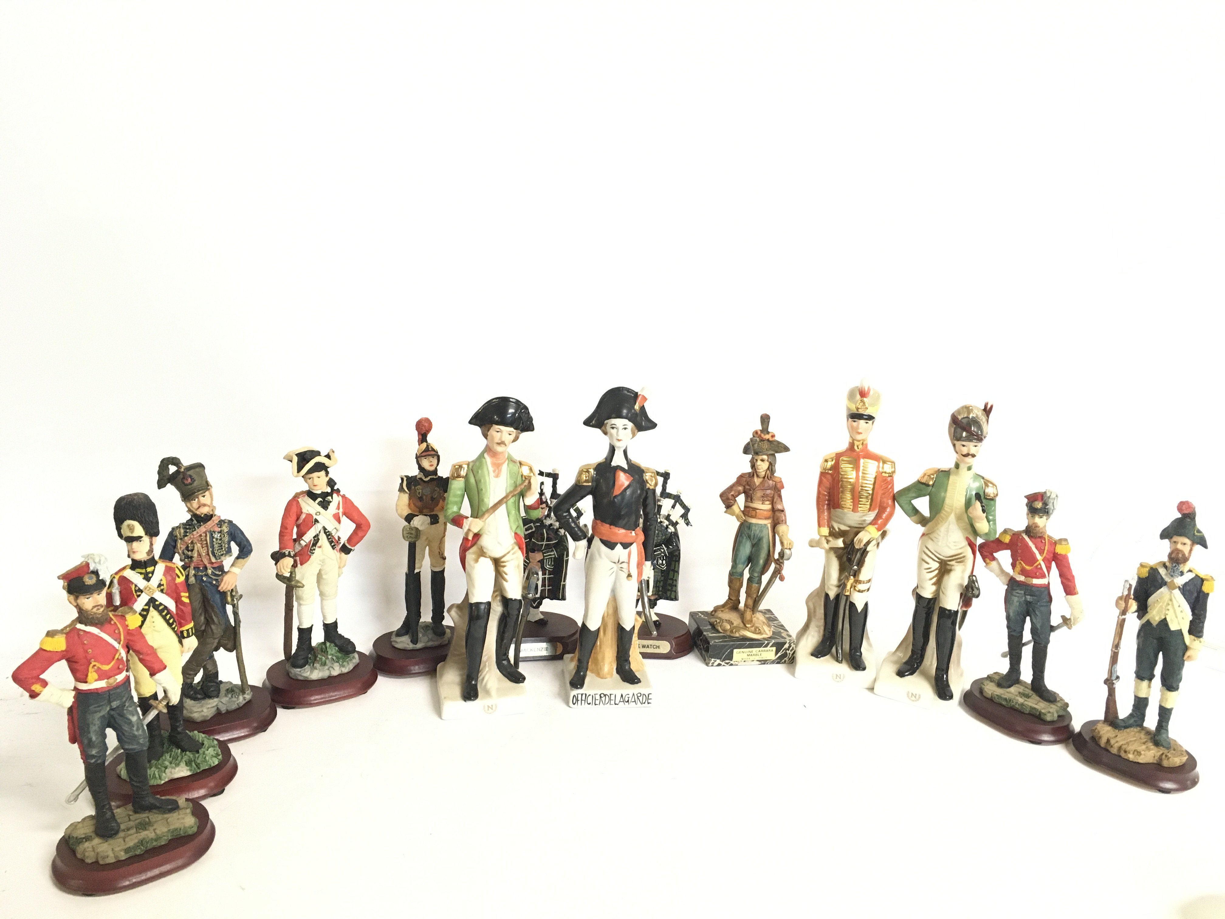 A collection of resin and porcelain British and French solider figures, this lot cannot be posted