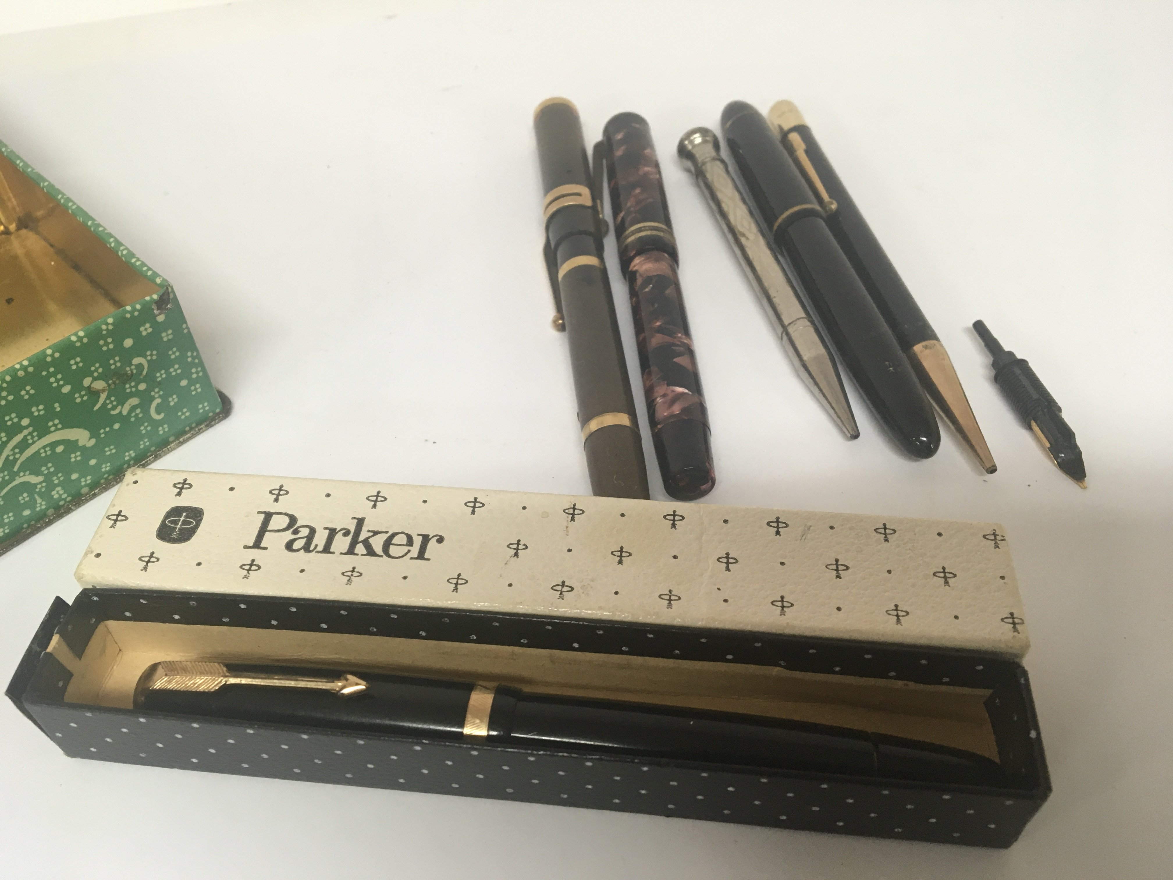 A Tin containing Vintage fountain pens.