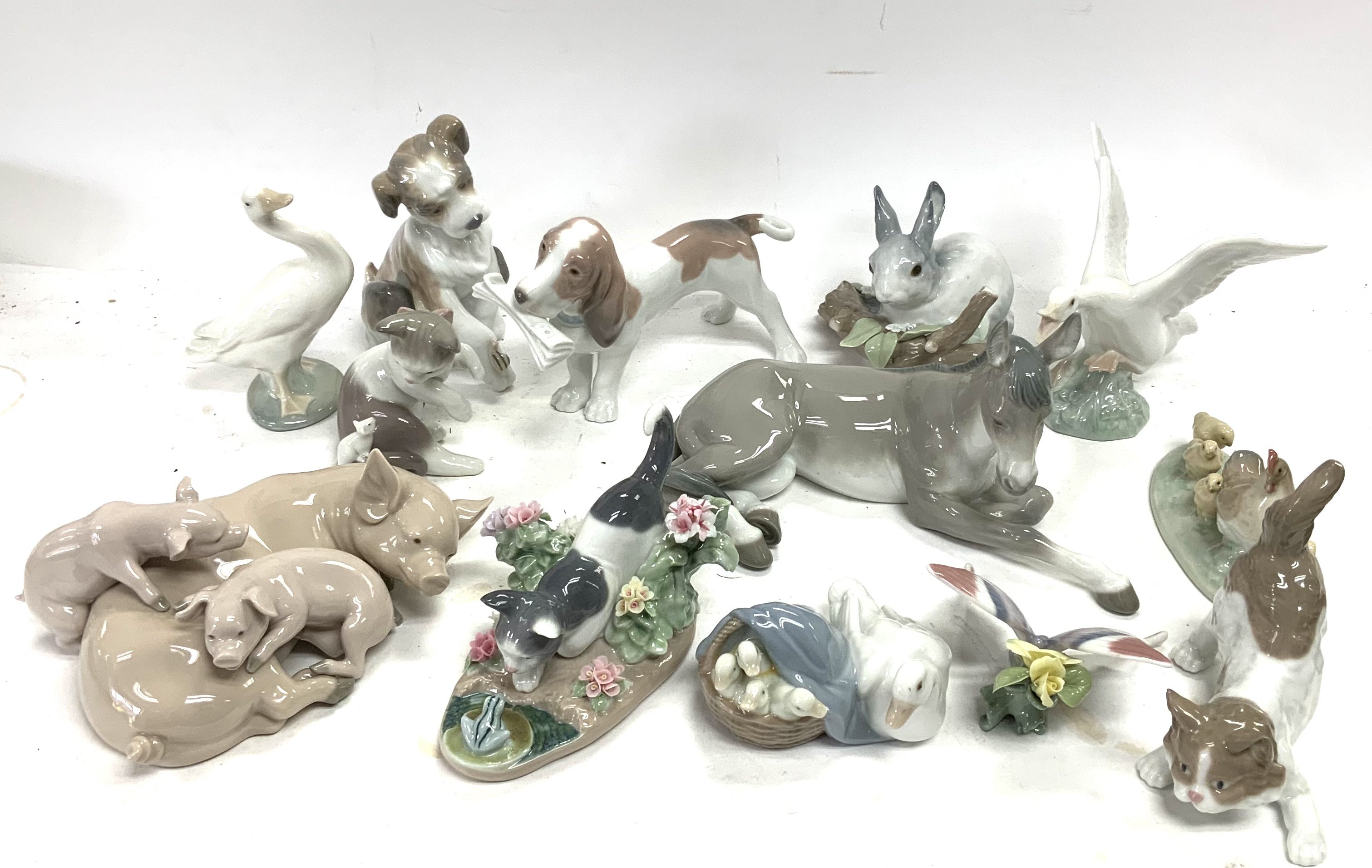 A collection of Lladro porcelain animal figures. (14). Postage not avaliable for this lot.