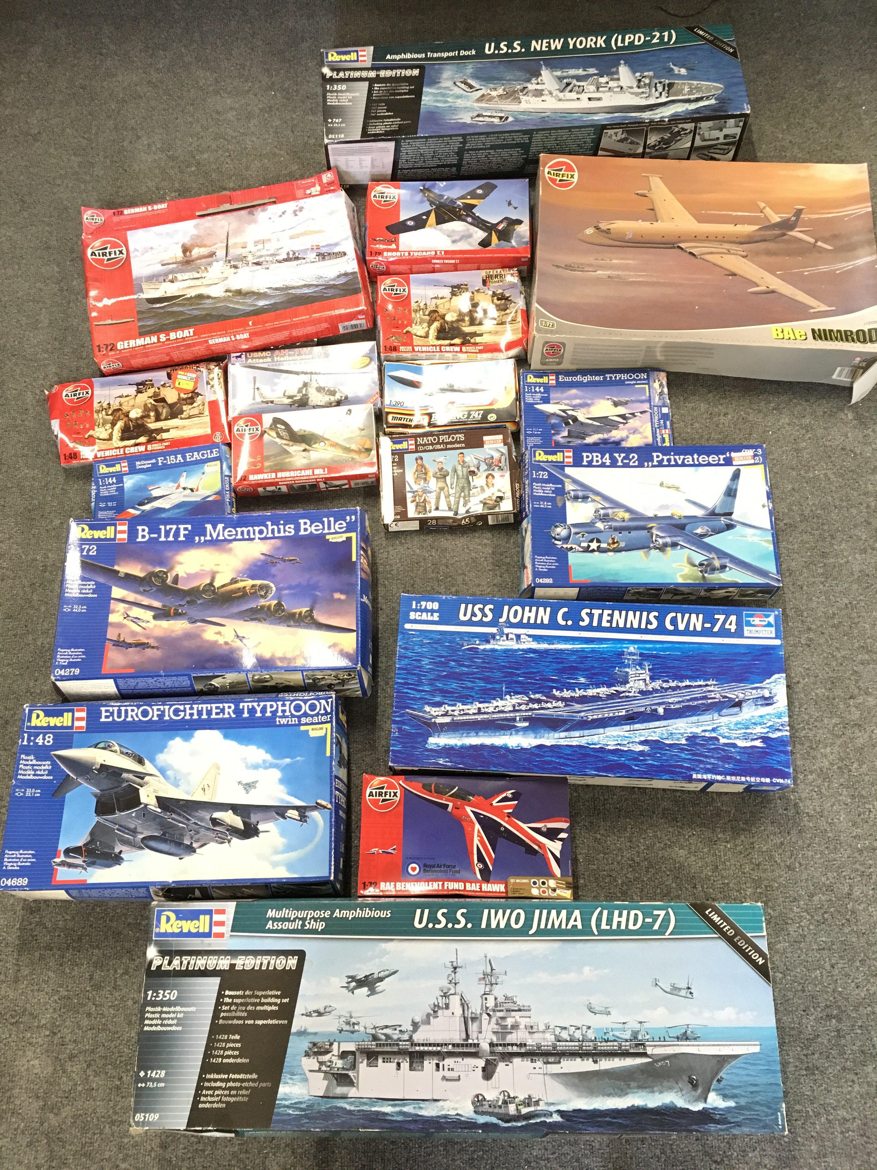 A Collection of Boxed Model Kits. Including Revell. Airfix. Etc. German S Boat has been Started.