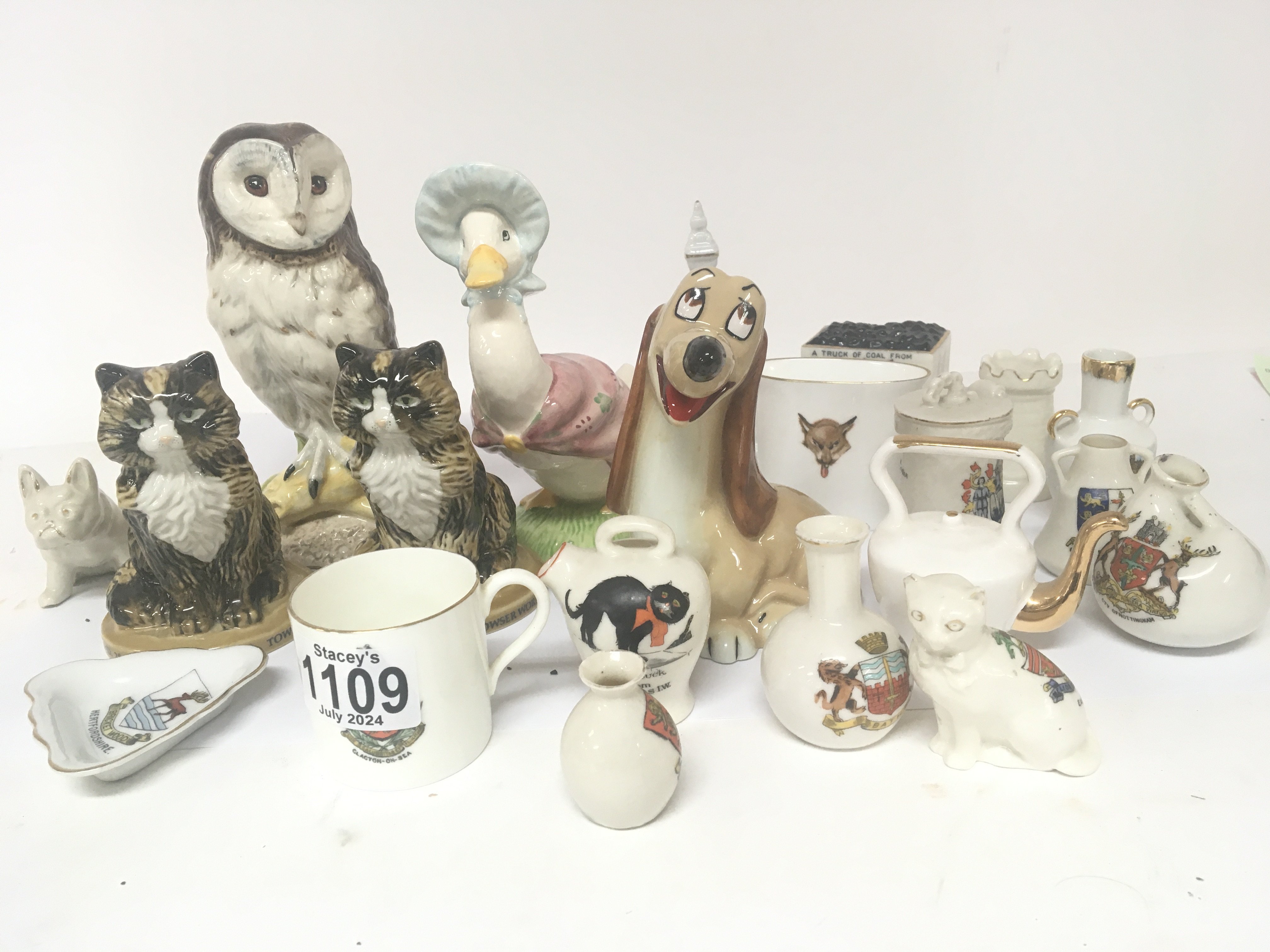Wade blow up figure Beswick figures and crested porcelain ornaments.