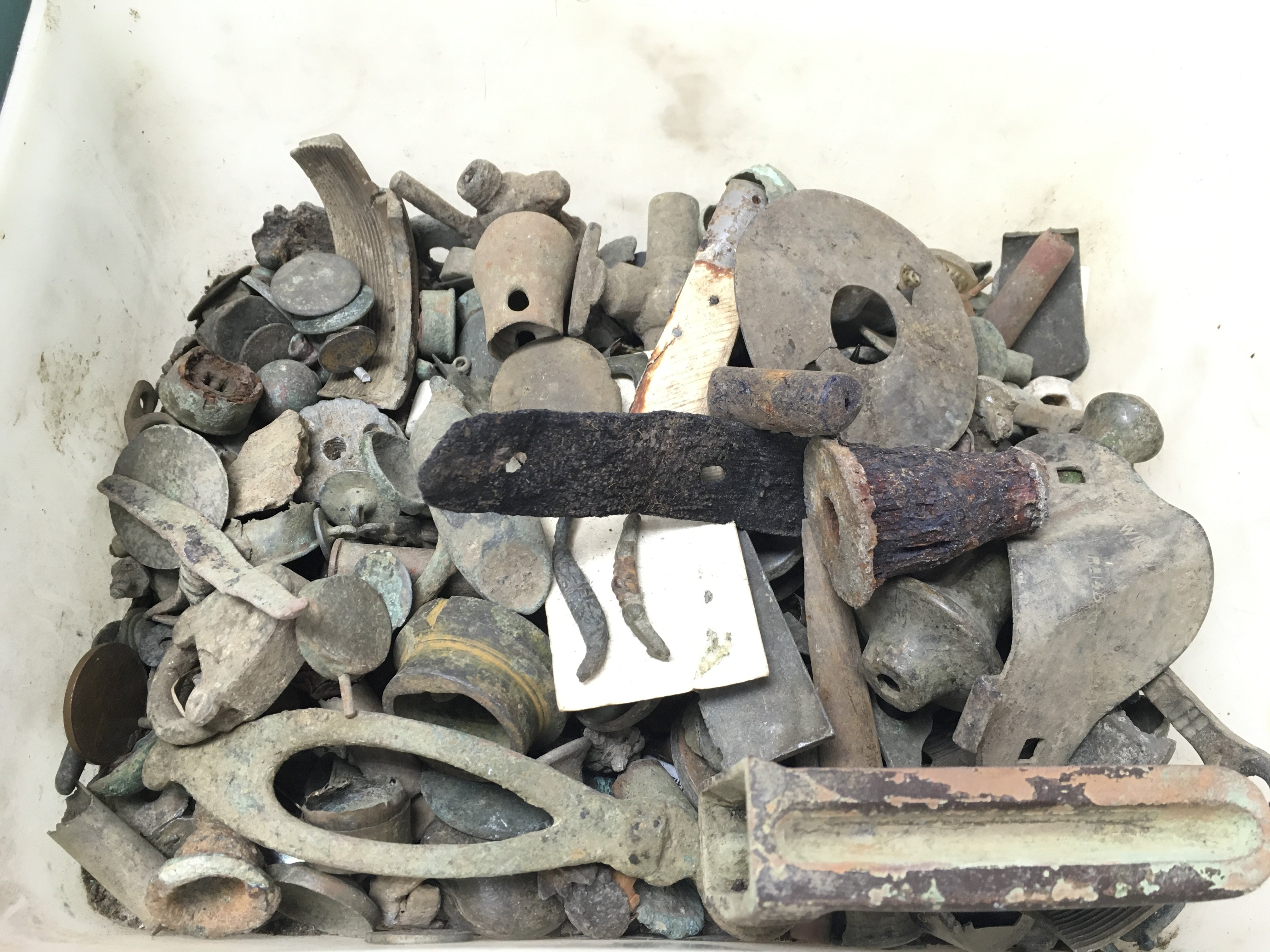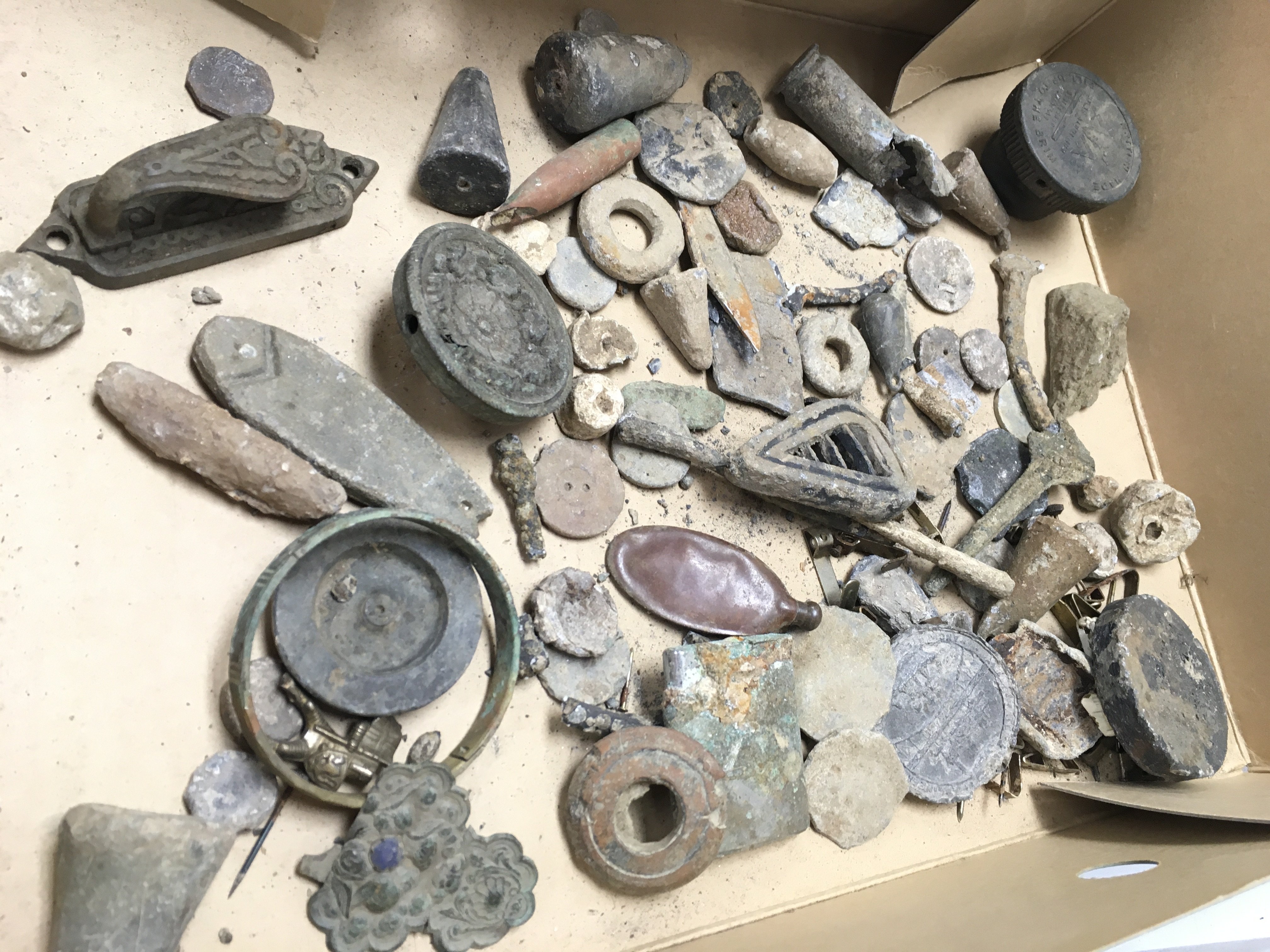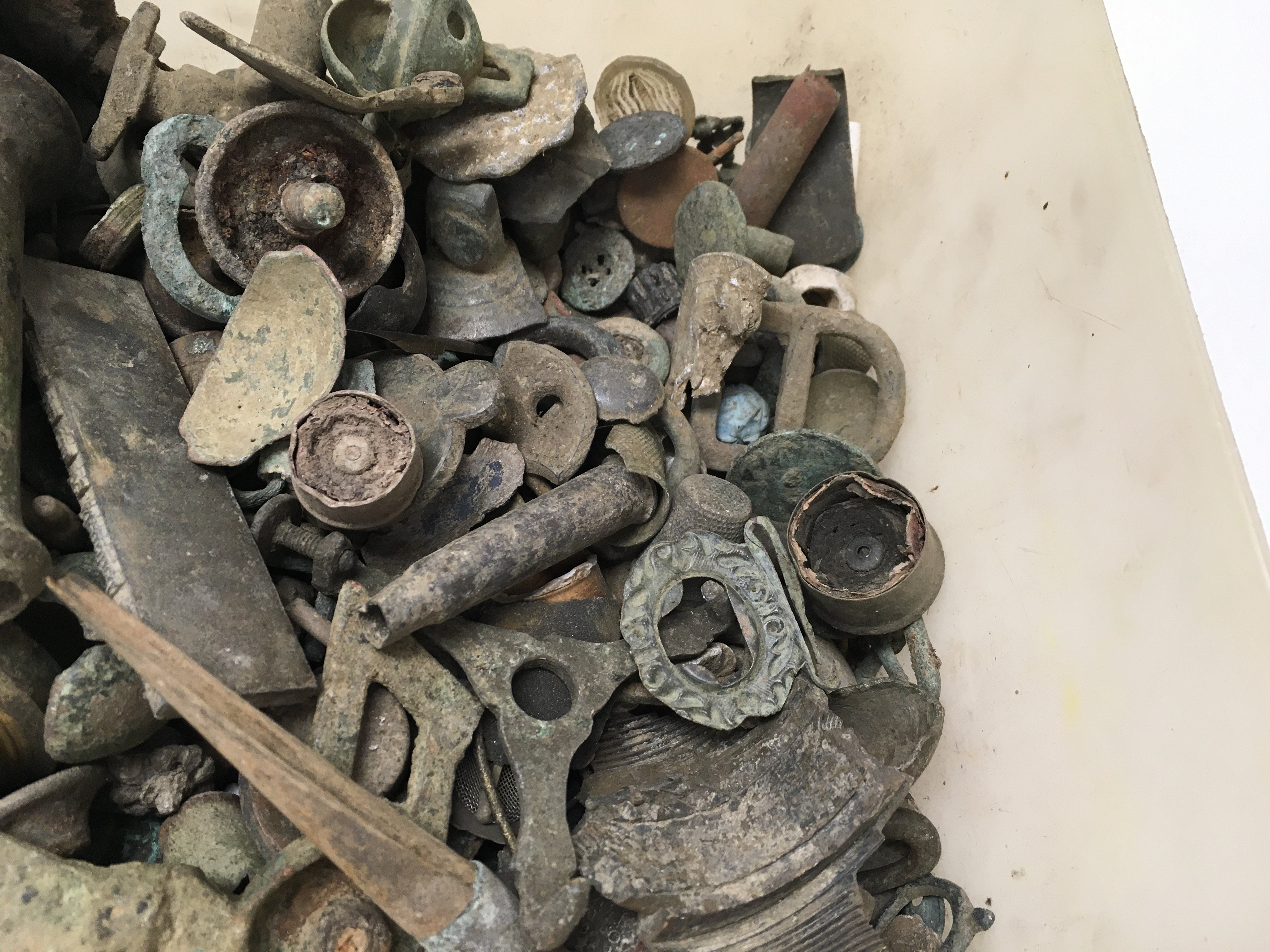 A large collection of detector finds including coins, buttons etc