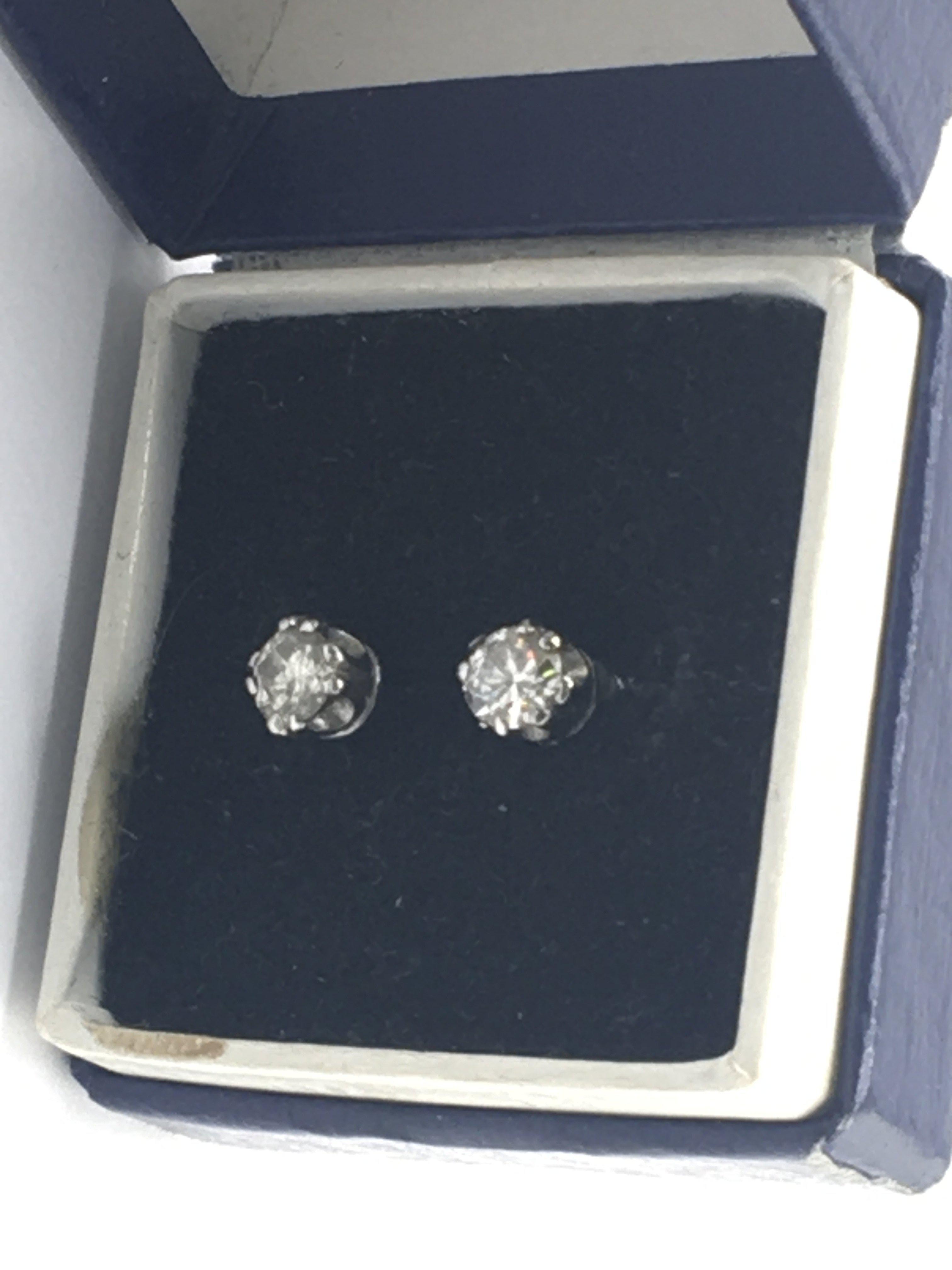 A pair of brilliant cut diamond stud earrings approximately 0.15 a carat each set in gold.