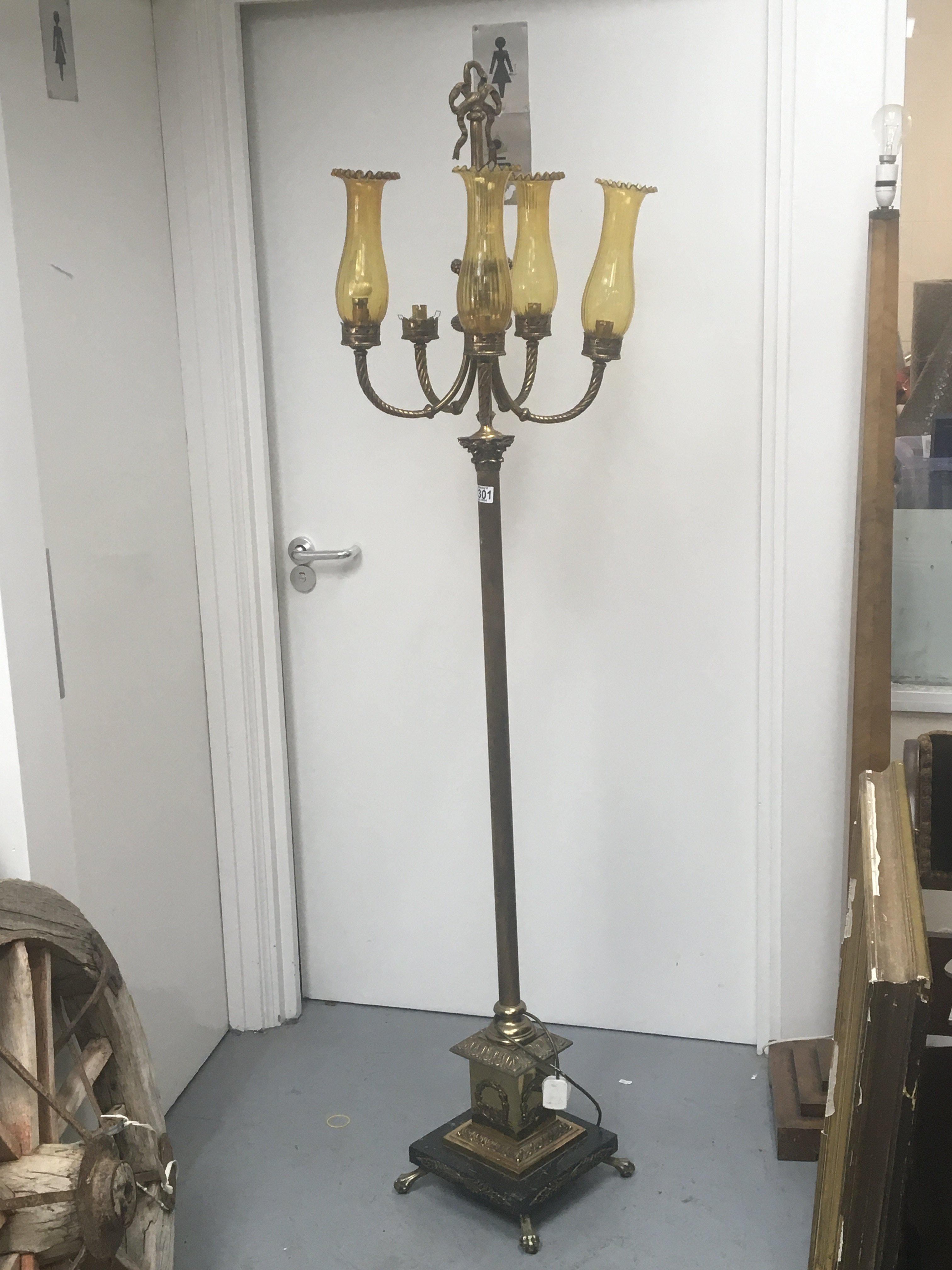 A Brass a d Marble Neo-Classical design standard lamp in the form of a Corinthian column. Height