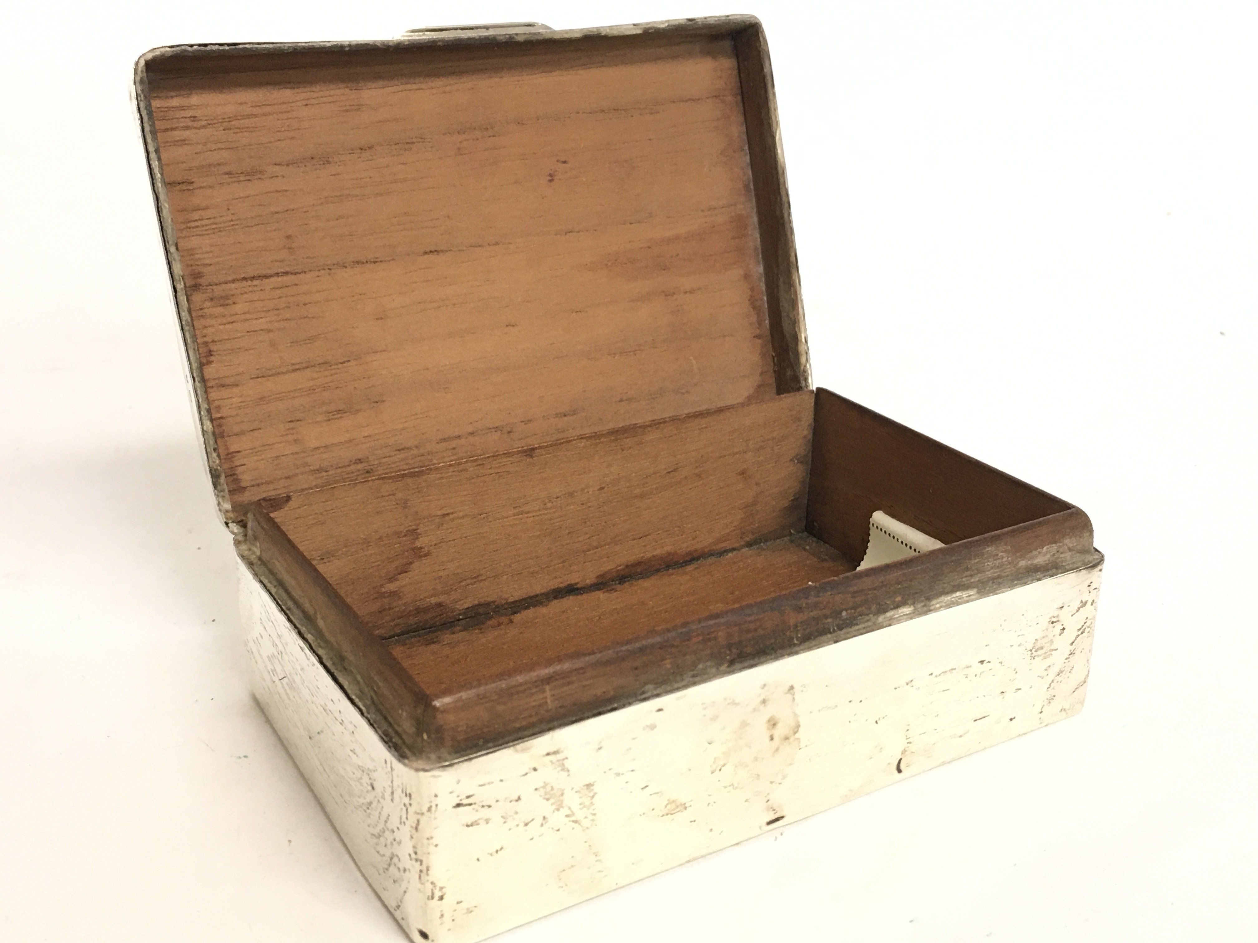 A silver hallmarked cigarette box by Alex R Clark. Postage category B