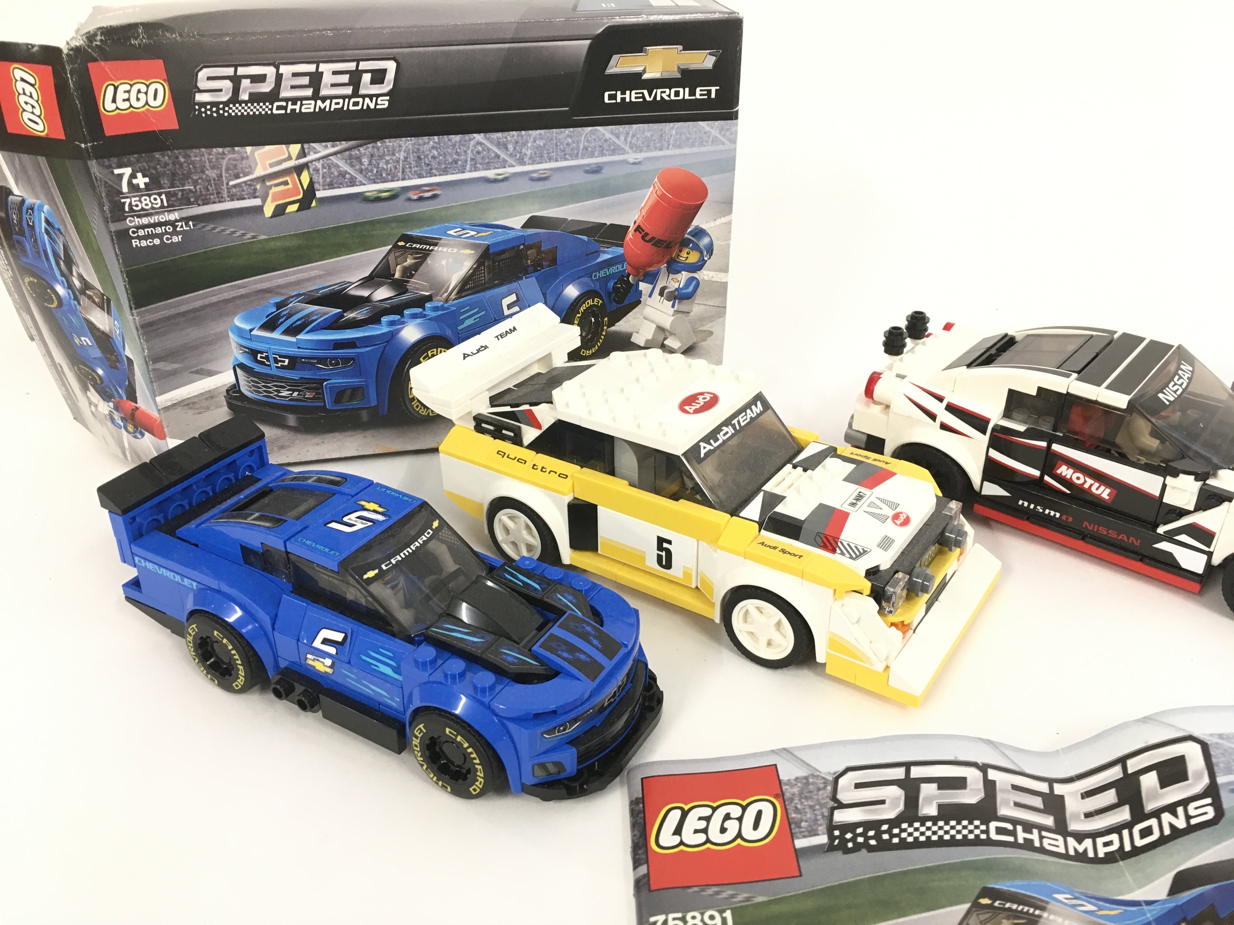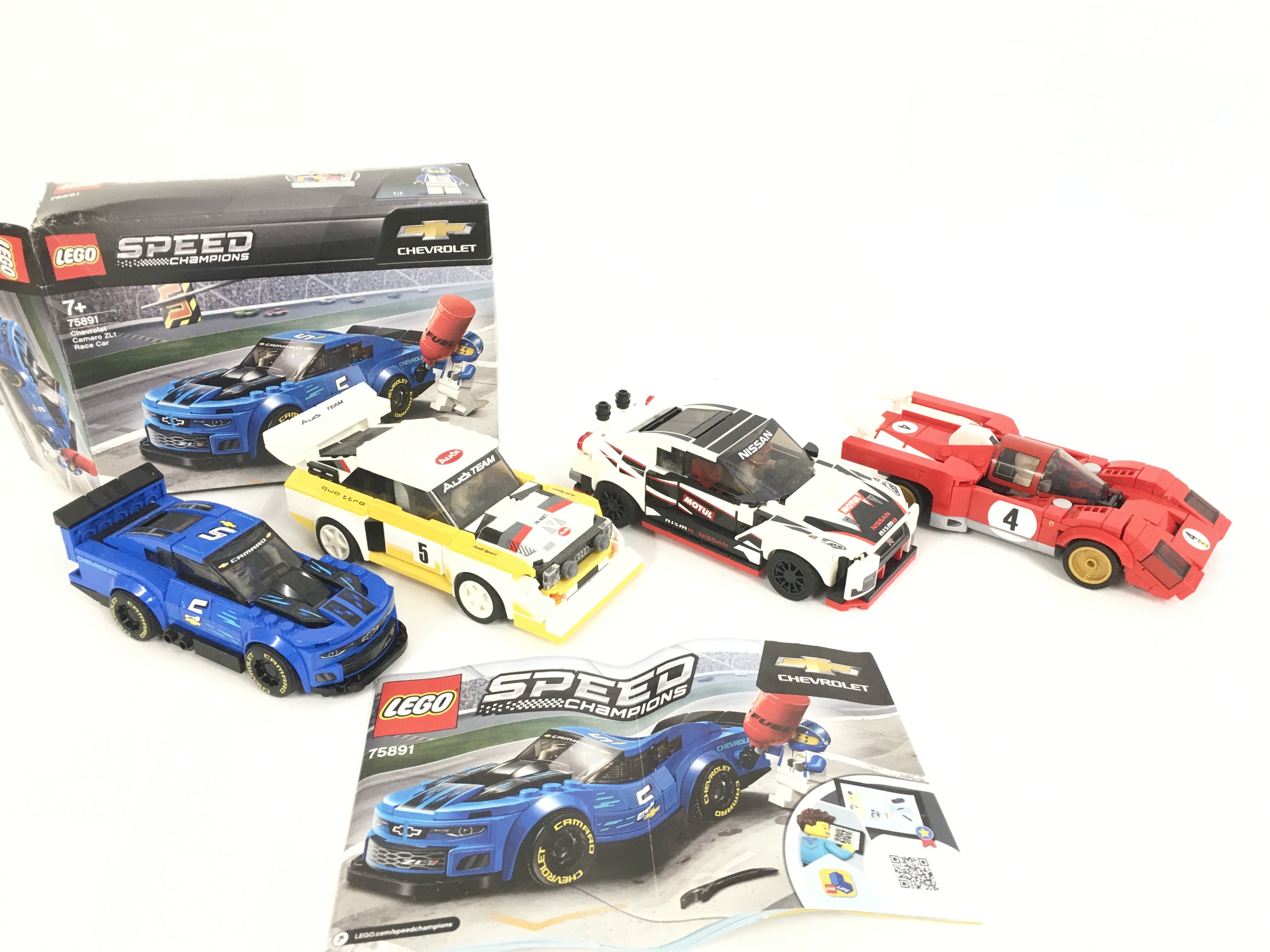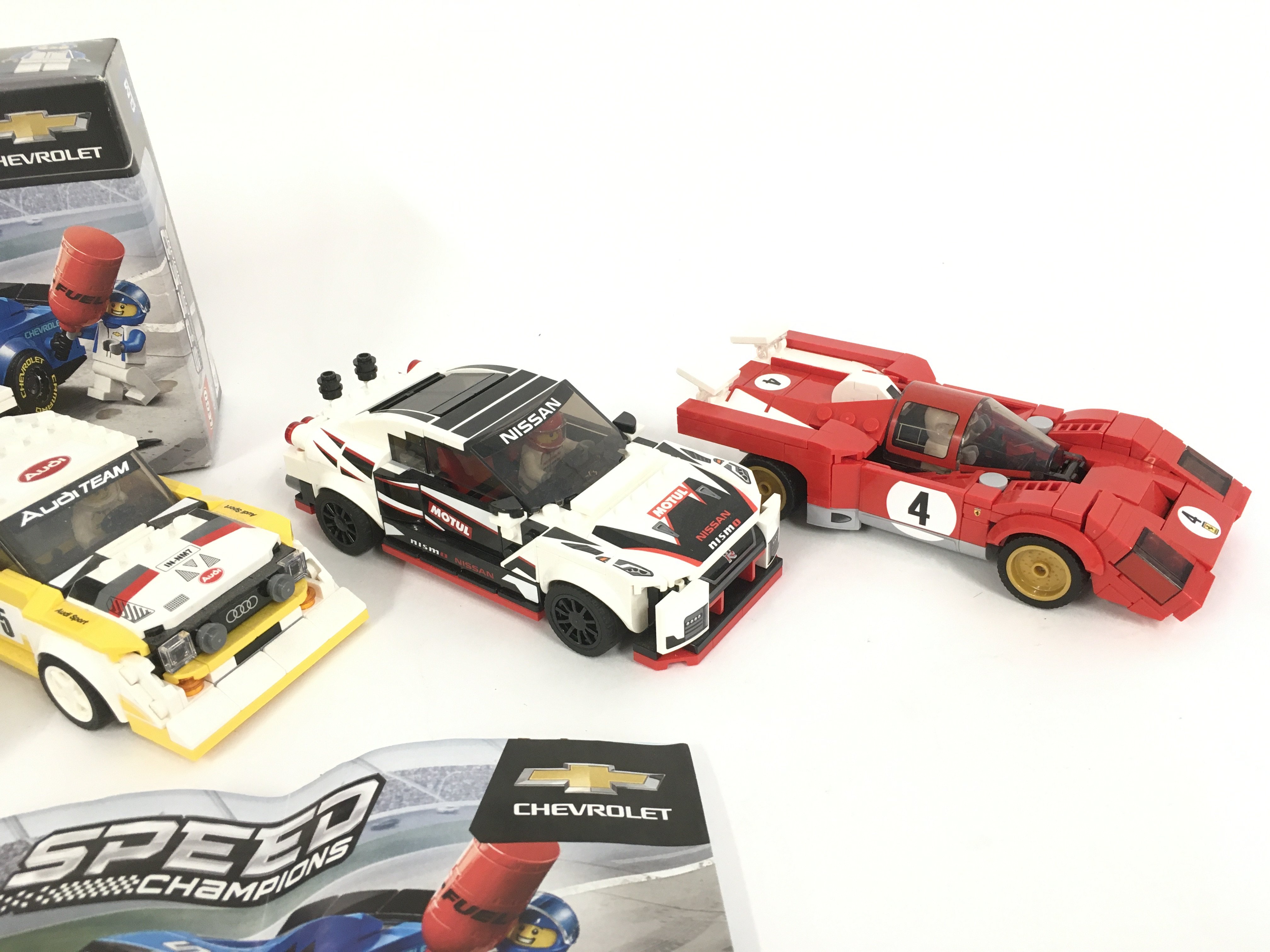 A Collection of Built Lego Speed Champions including a Chevrolet With Box.