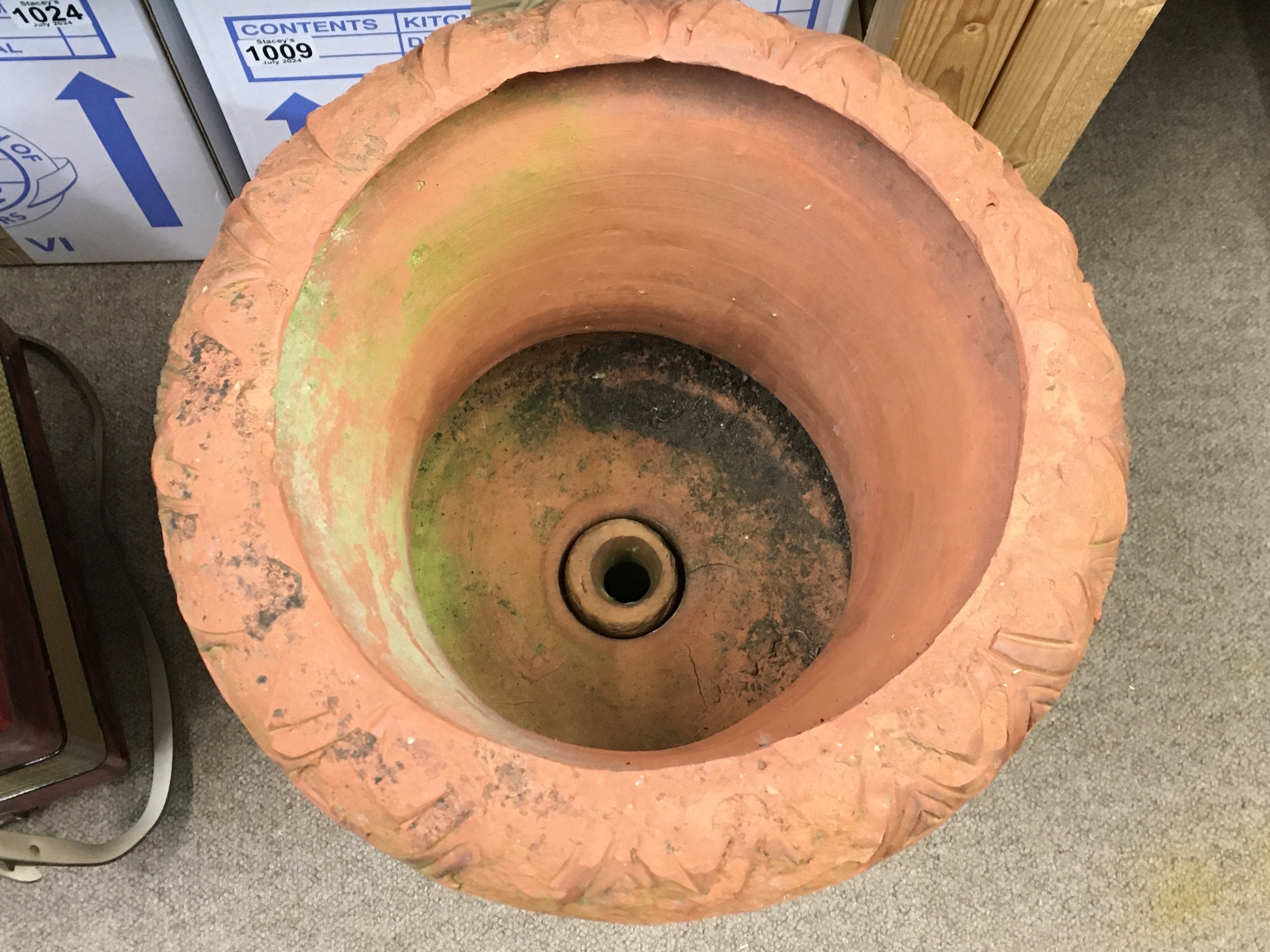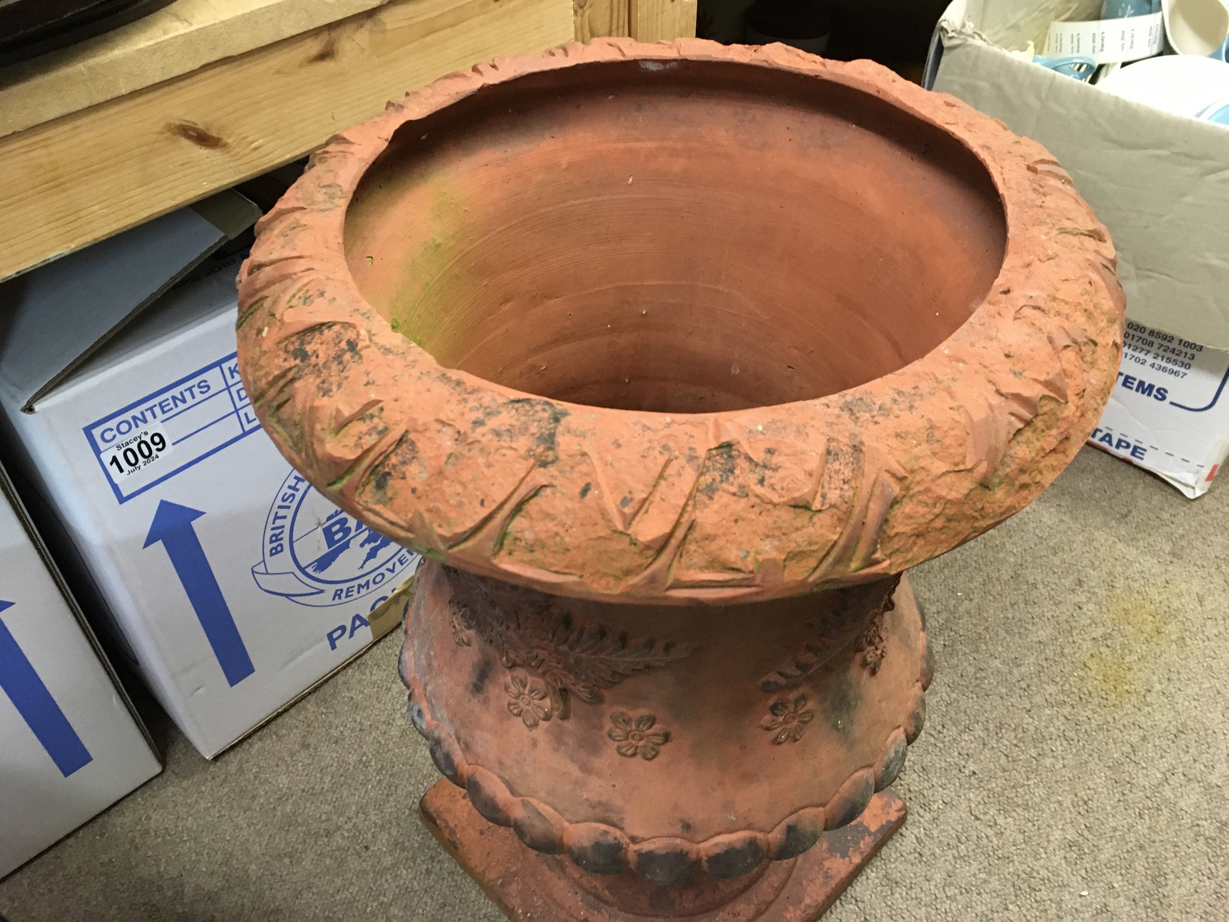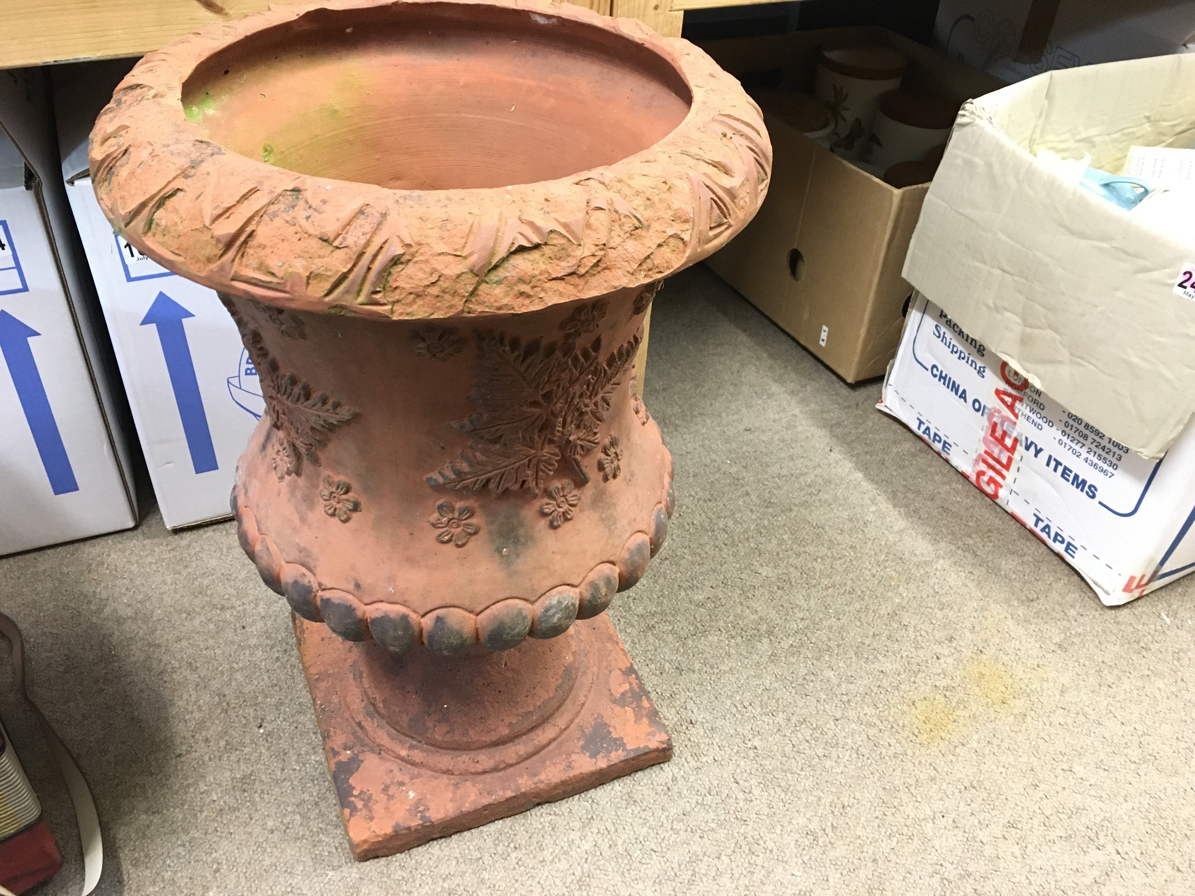 A Large Victorian terracotta urn. 50cm tall and 35cm wide.