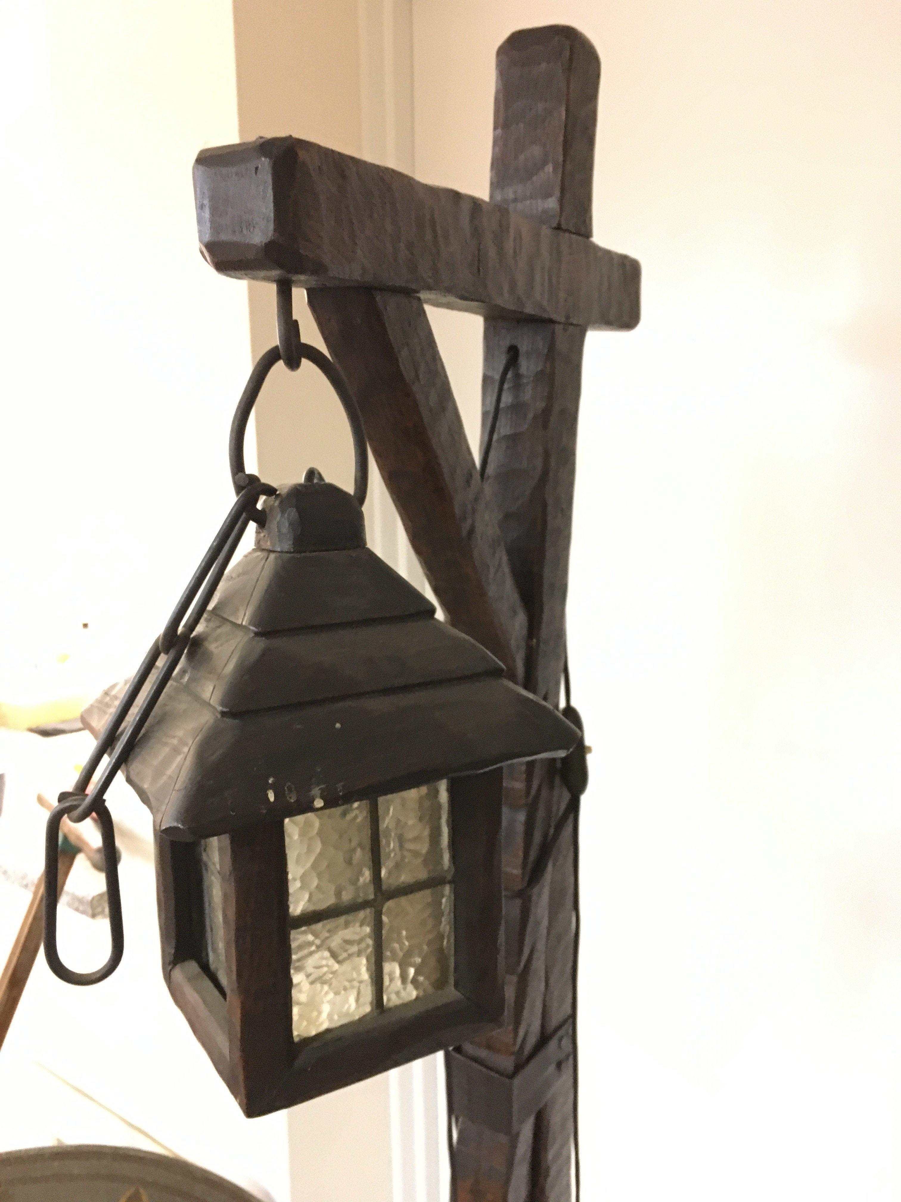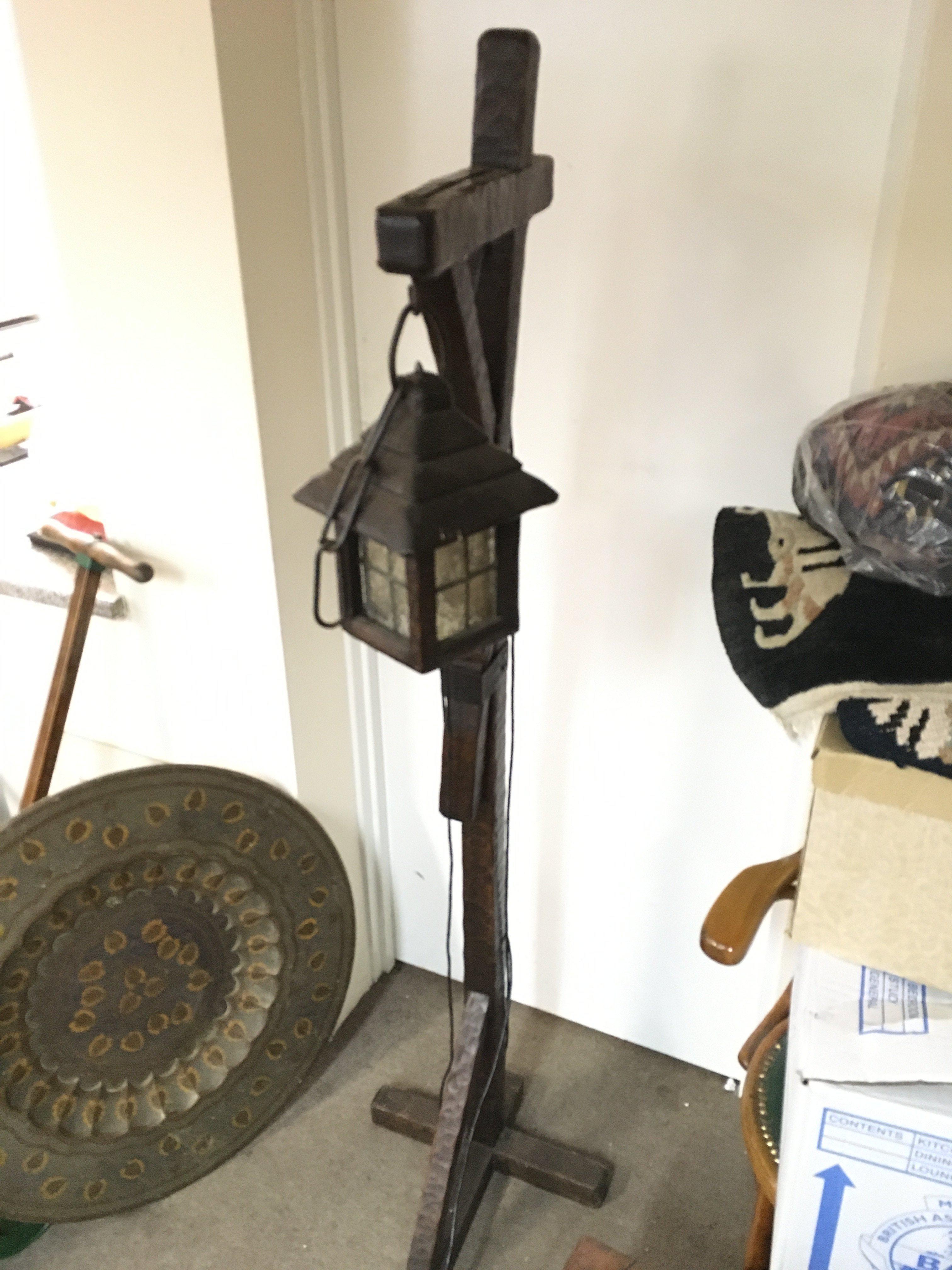 An Arts & Crafts style Lamp with lantern. 74cm tall