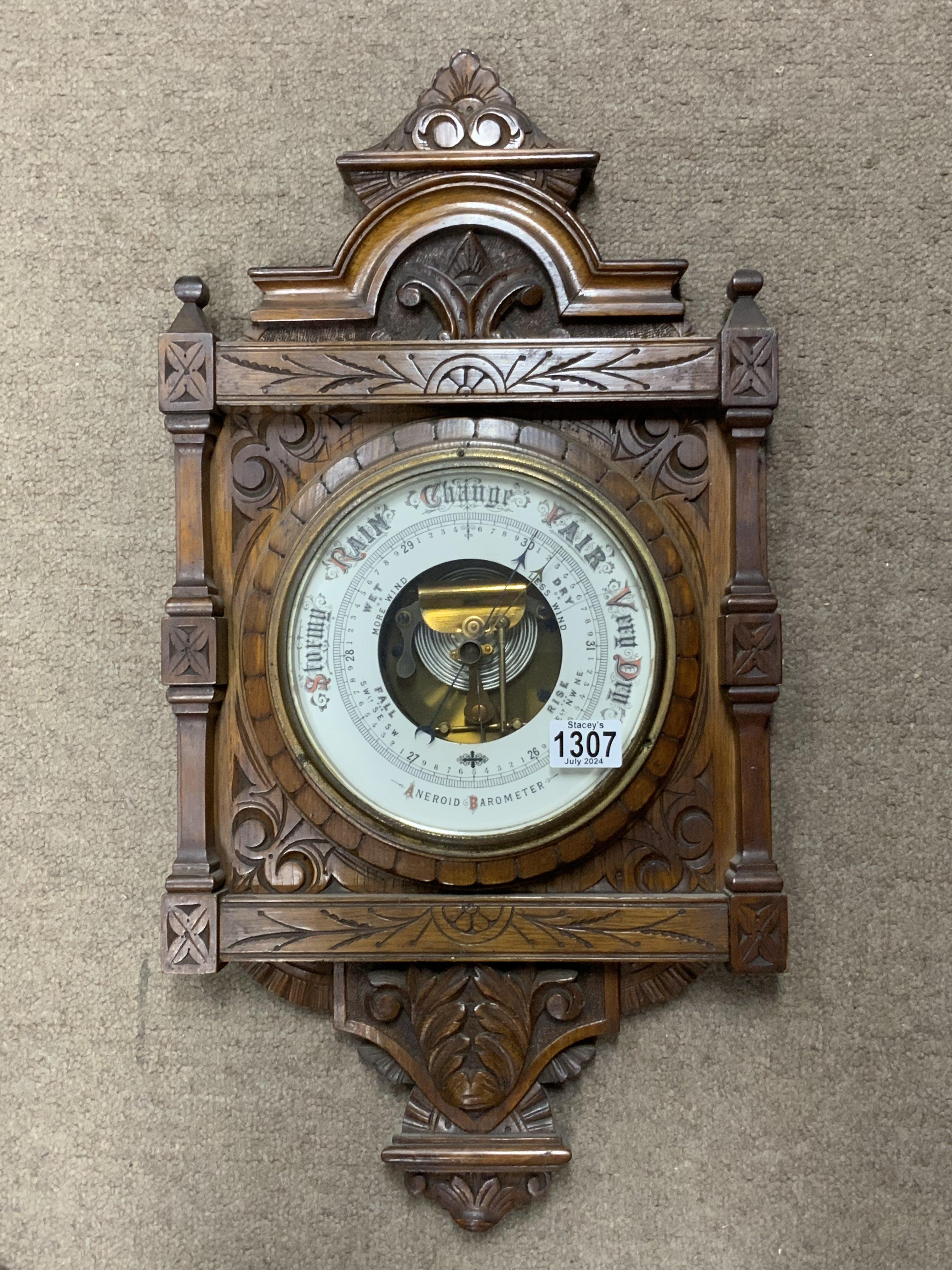 A Victorian carved oak Aneroid barometer. 65cm x 34cm. (D)