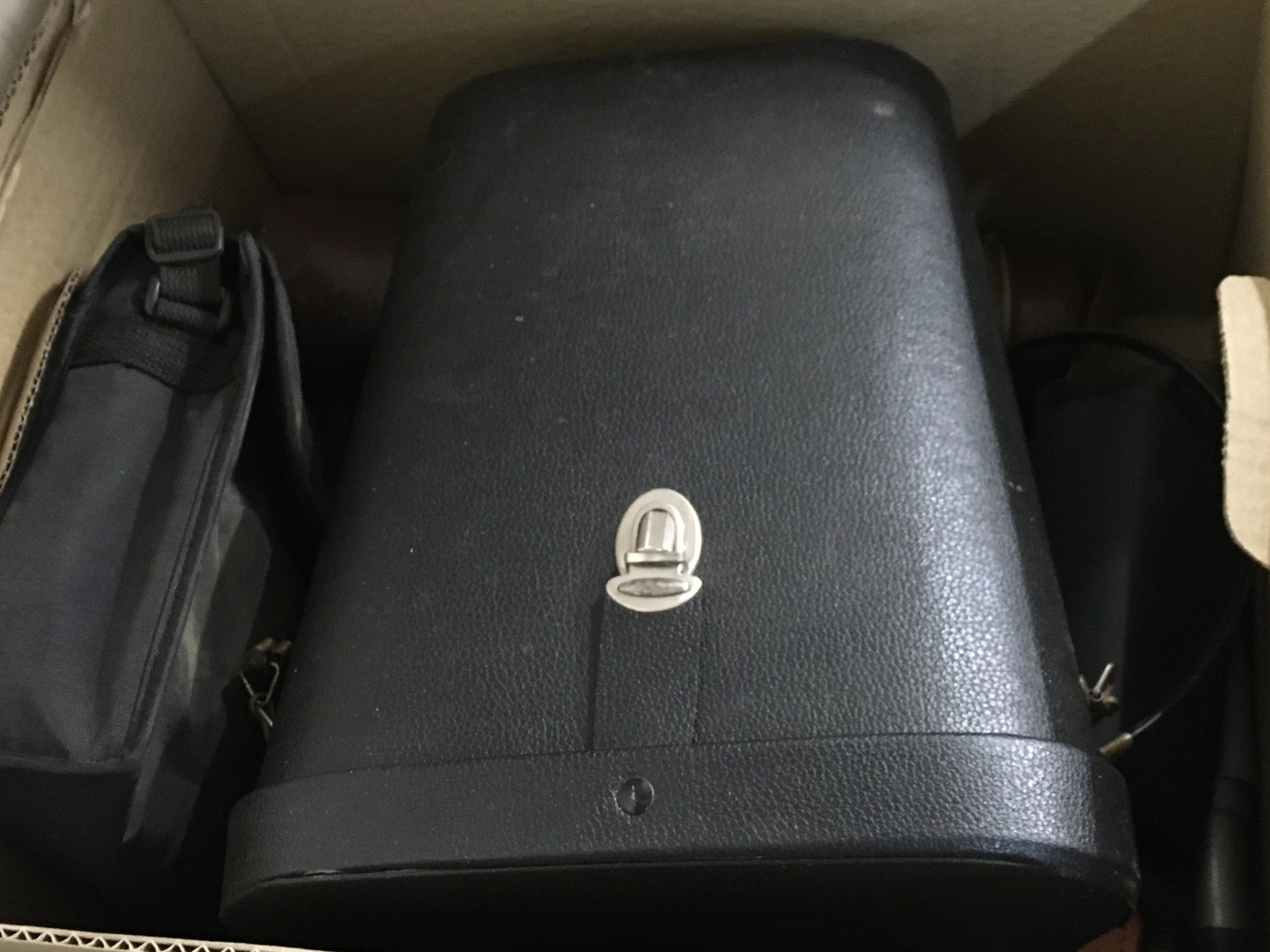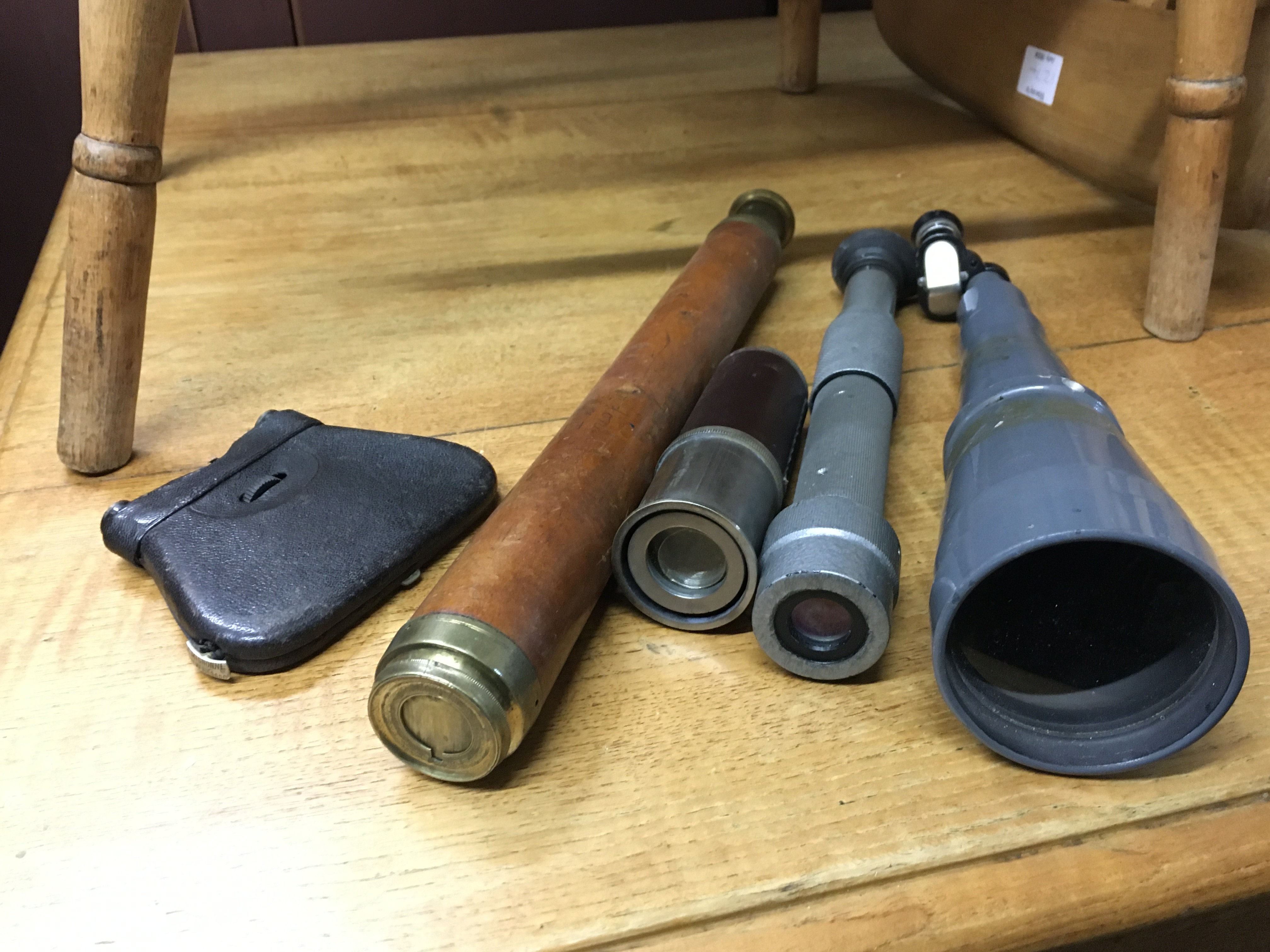 A collection of vintage binoculars including Pathescope De Luxe 30x70 cased binoculars, bone binoculars, T.J Williams monocular, Philo 30x50mm etc