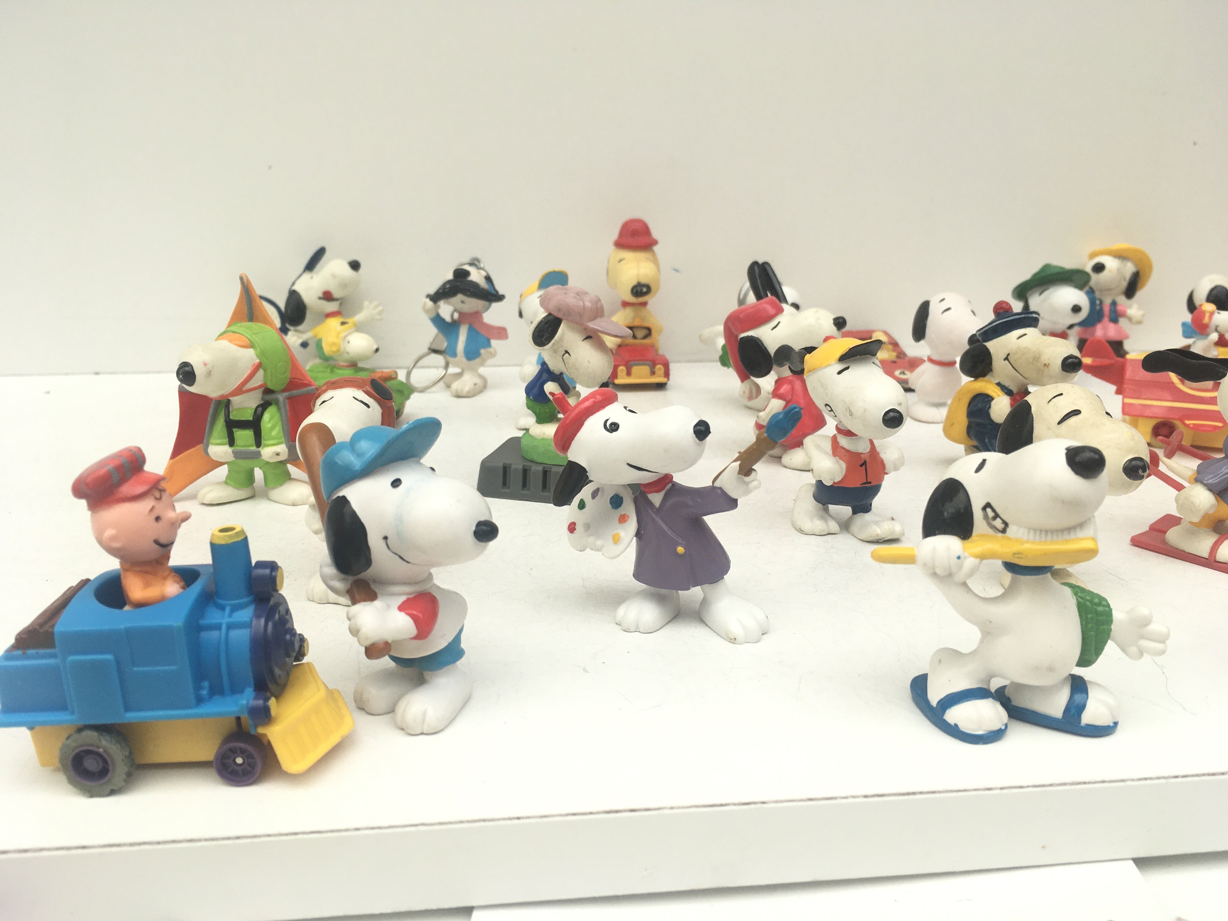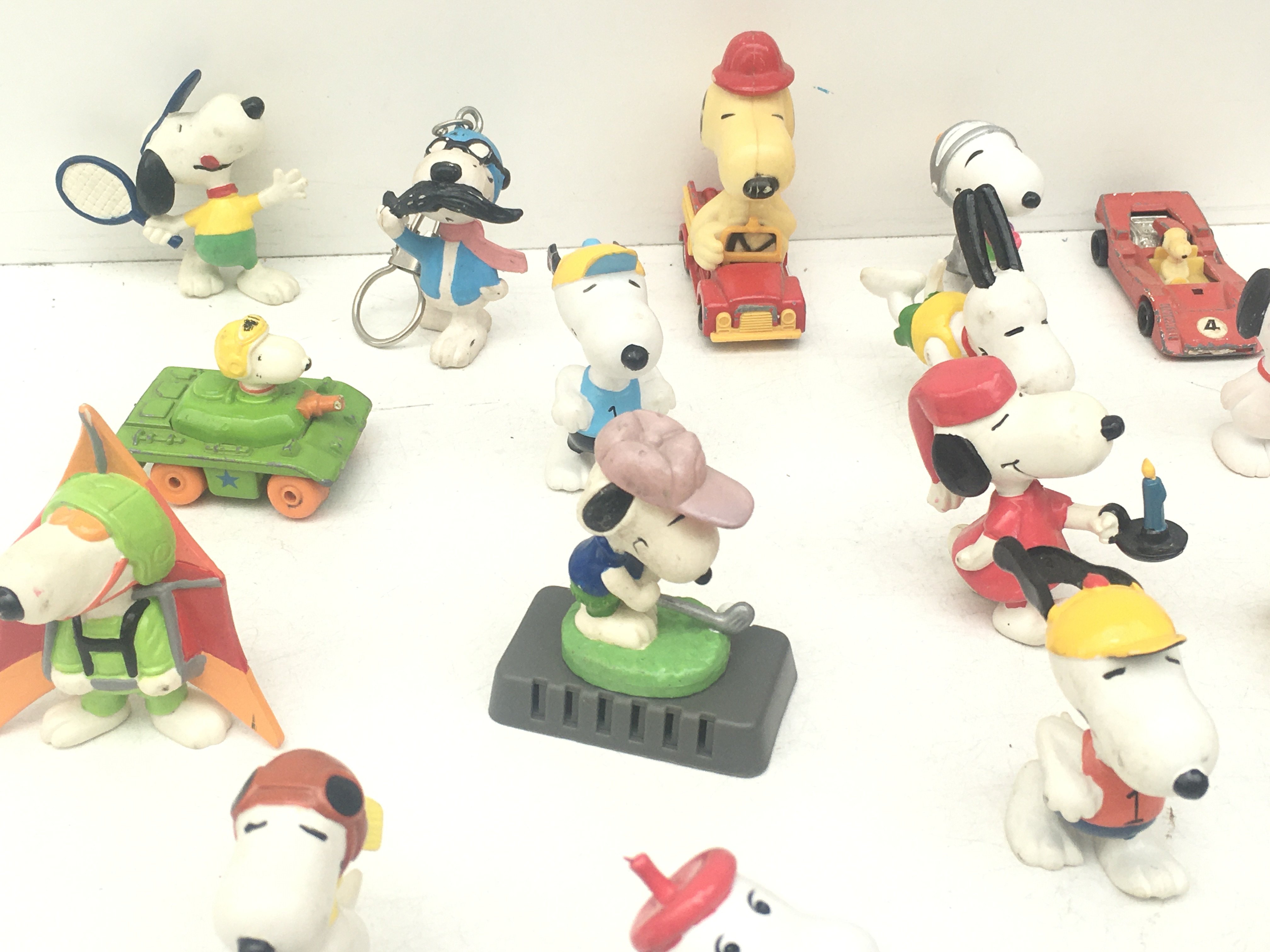 A collection of 30 Collectable Snoopy figures of varying ages.