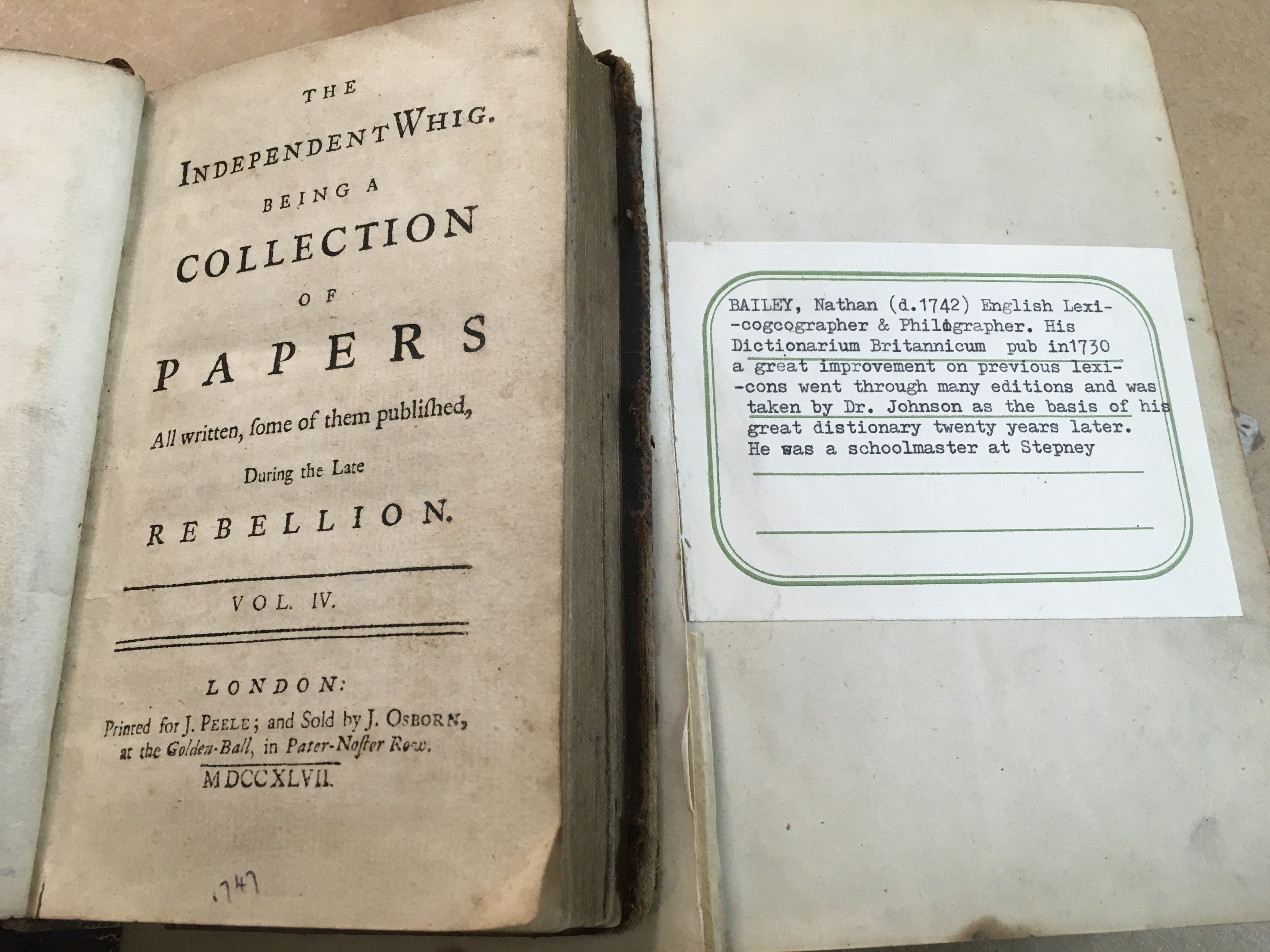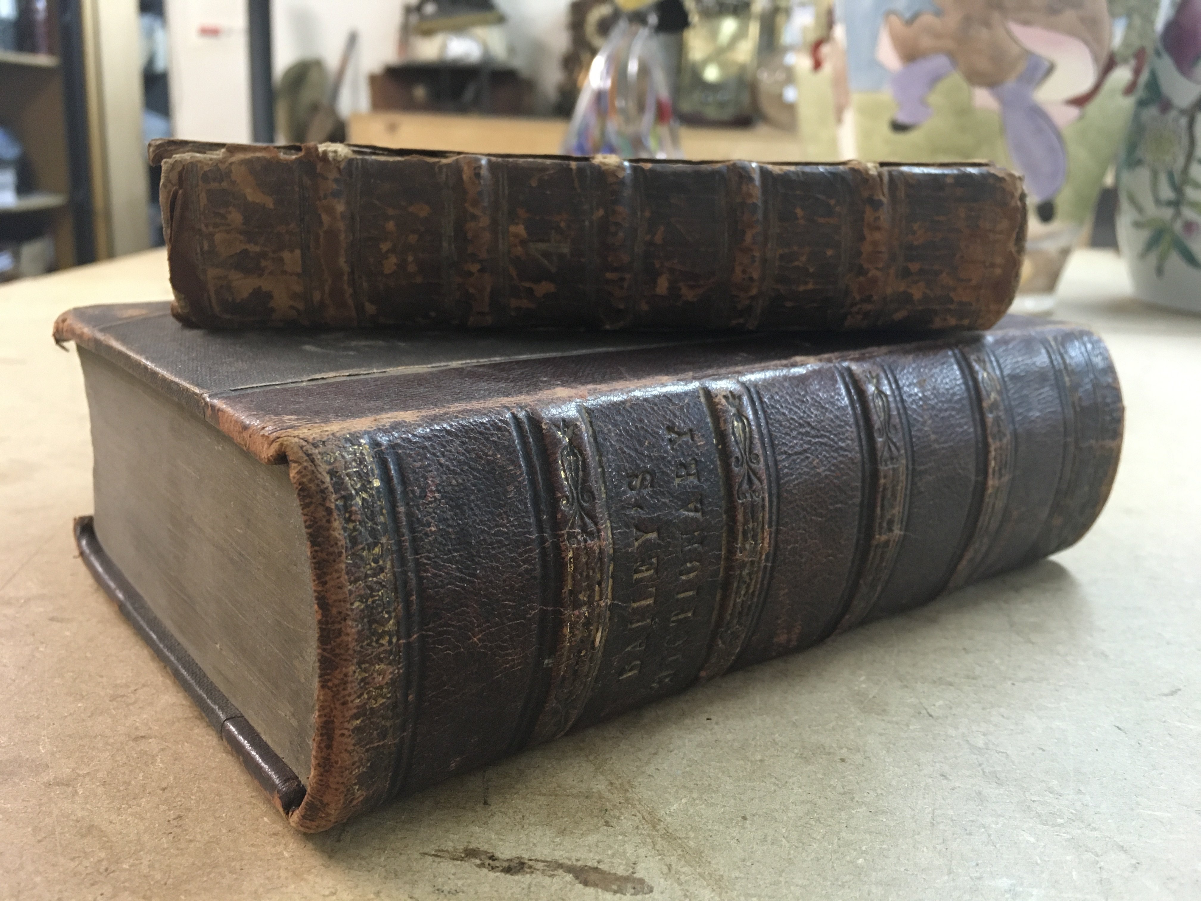Two leather books - Baileys dictionary and The independent Whig