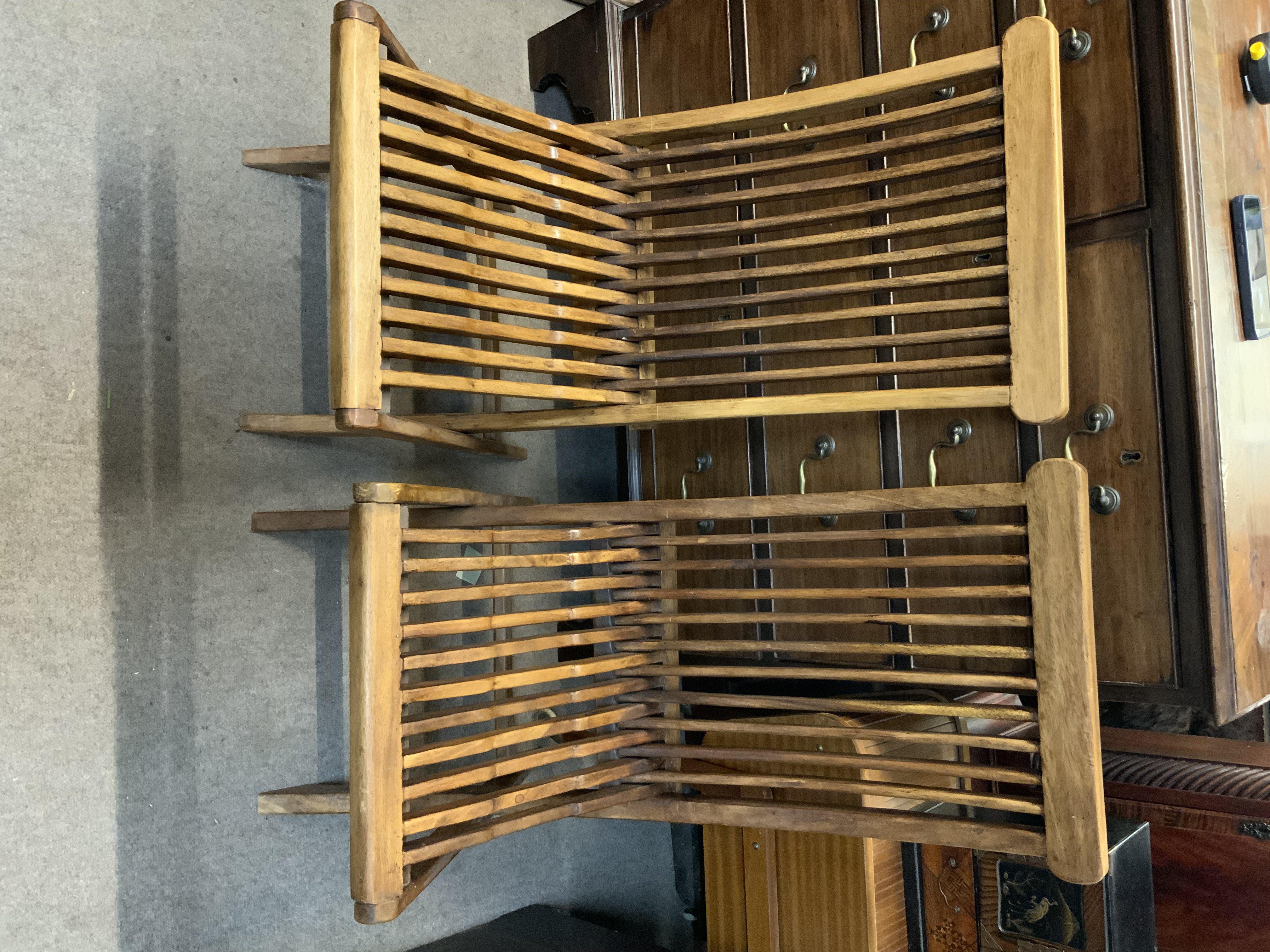 2 Hardwood folding garden chairs. (D)Condition Report