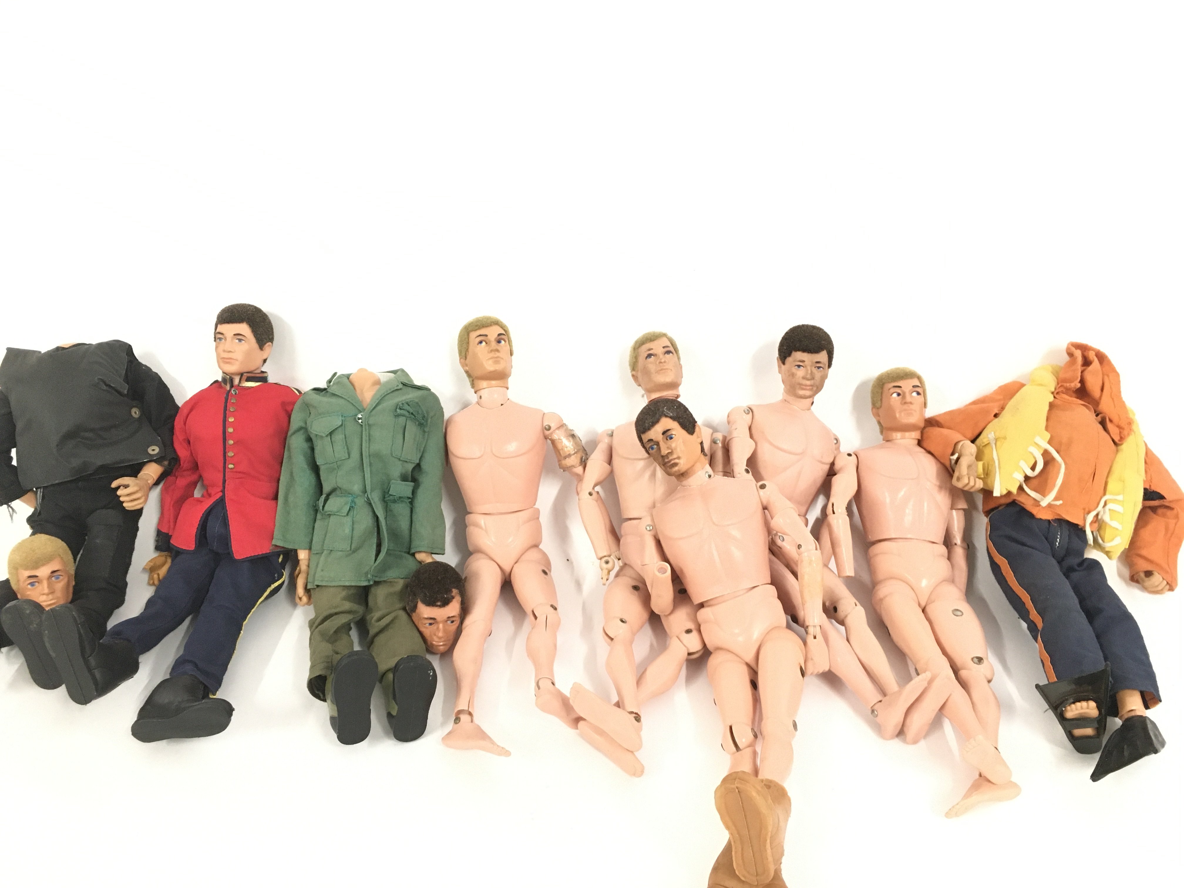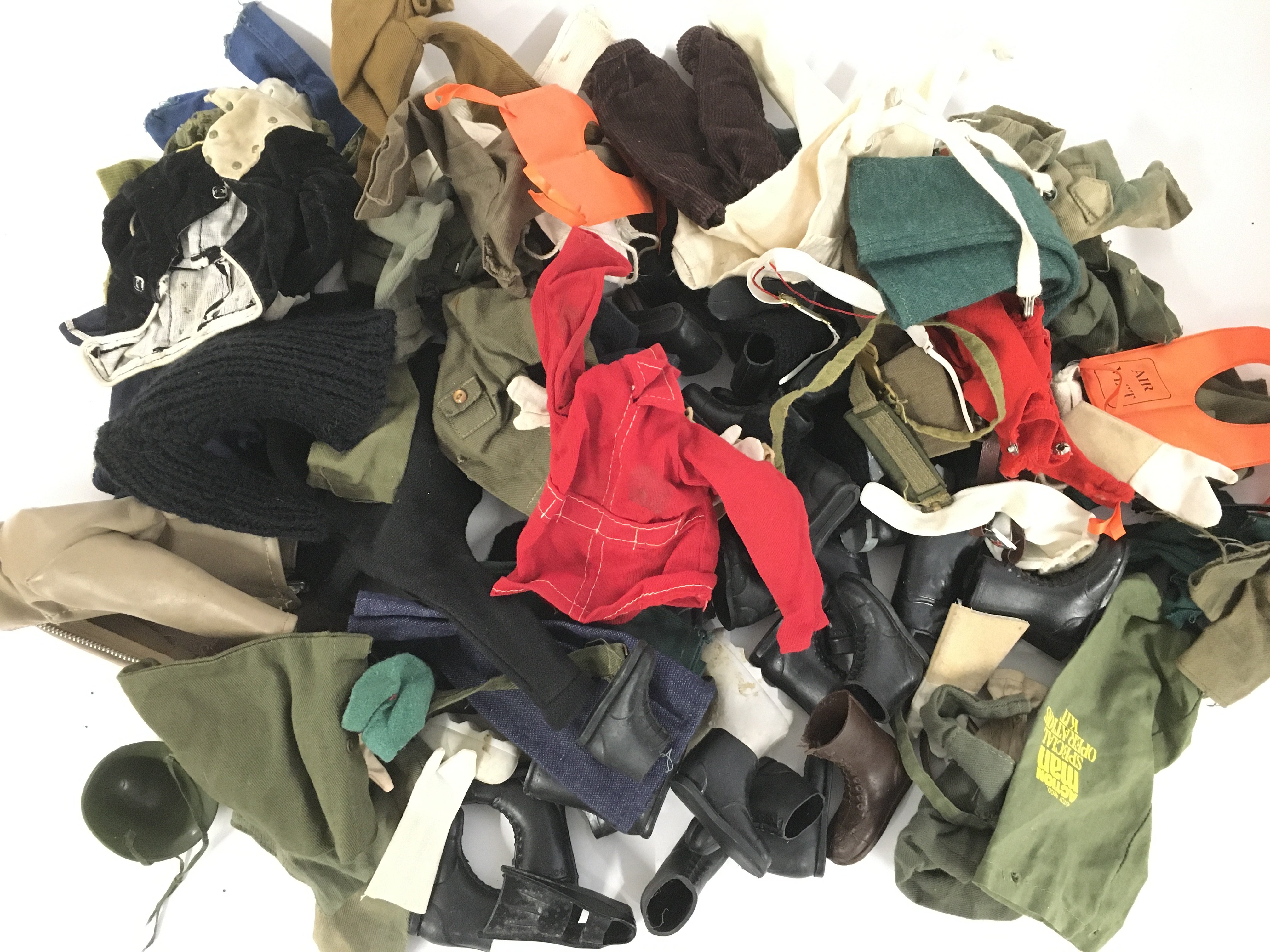 A Collection of Vintage Action Man with Uniforms and Accessories. Ideal for spare Parts Etc.