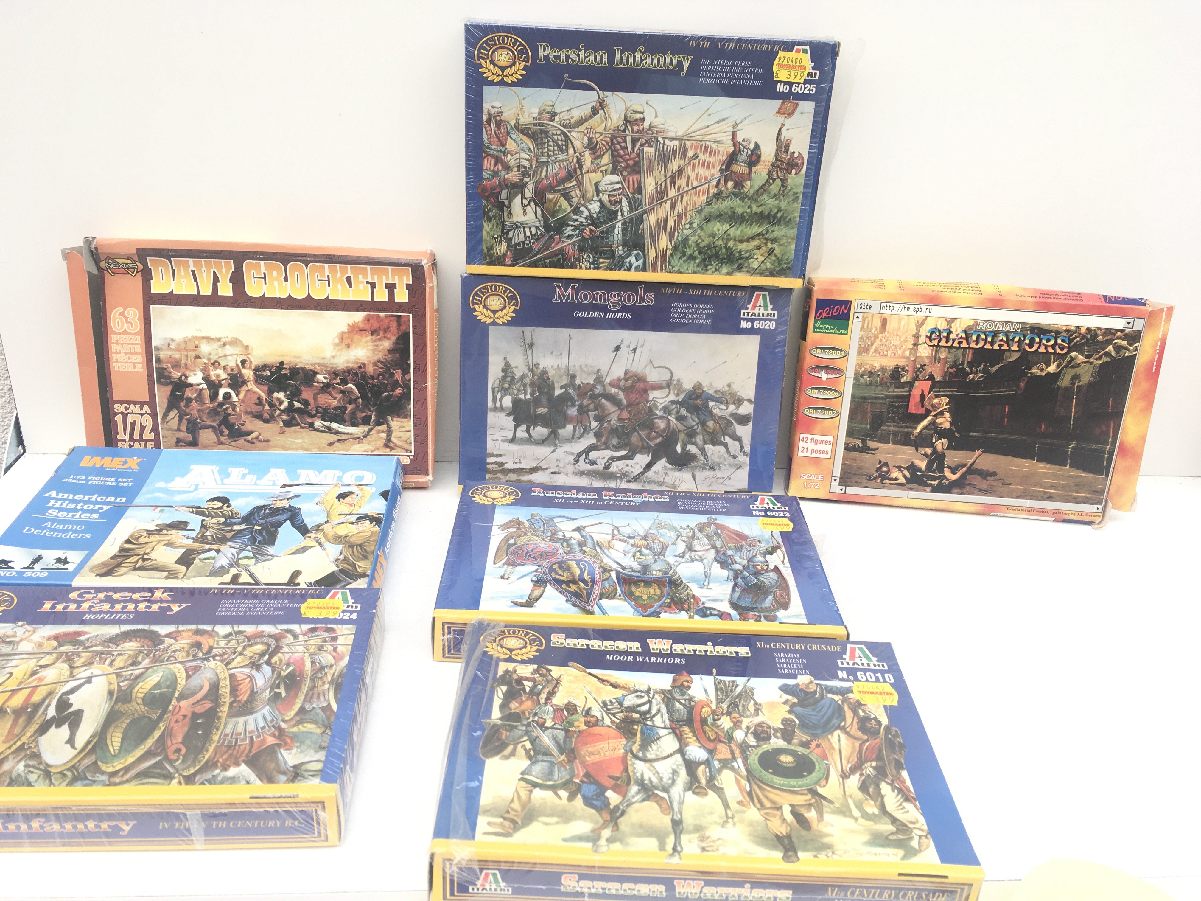 A group of 8 boxed modelling sets bi IMEX..ITALERI and others.5 boxes sealed in original cellophane film others opened.