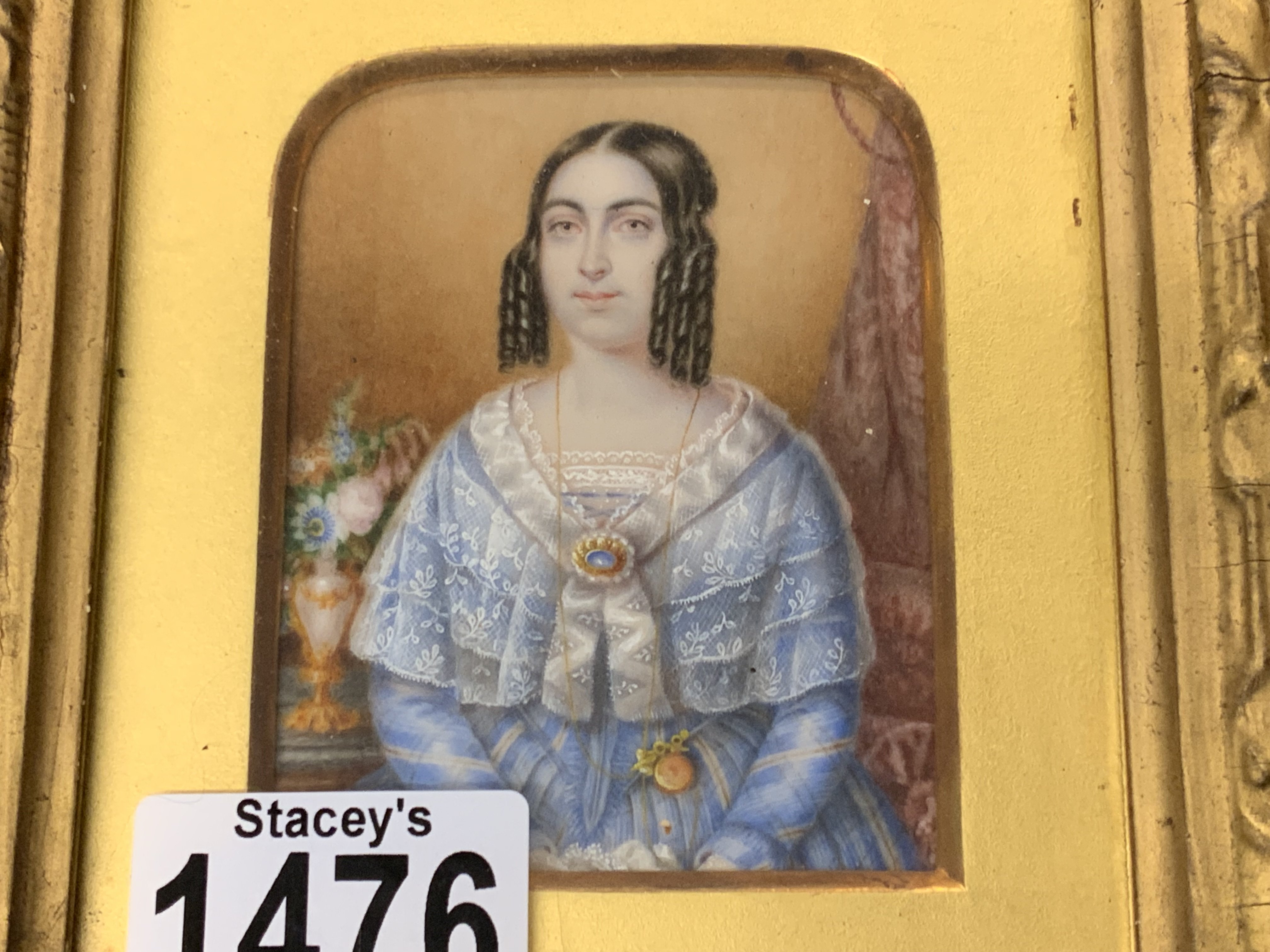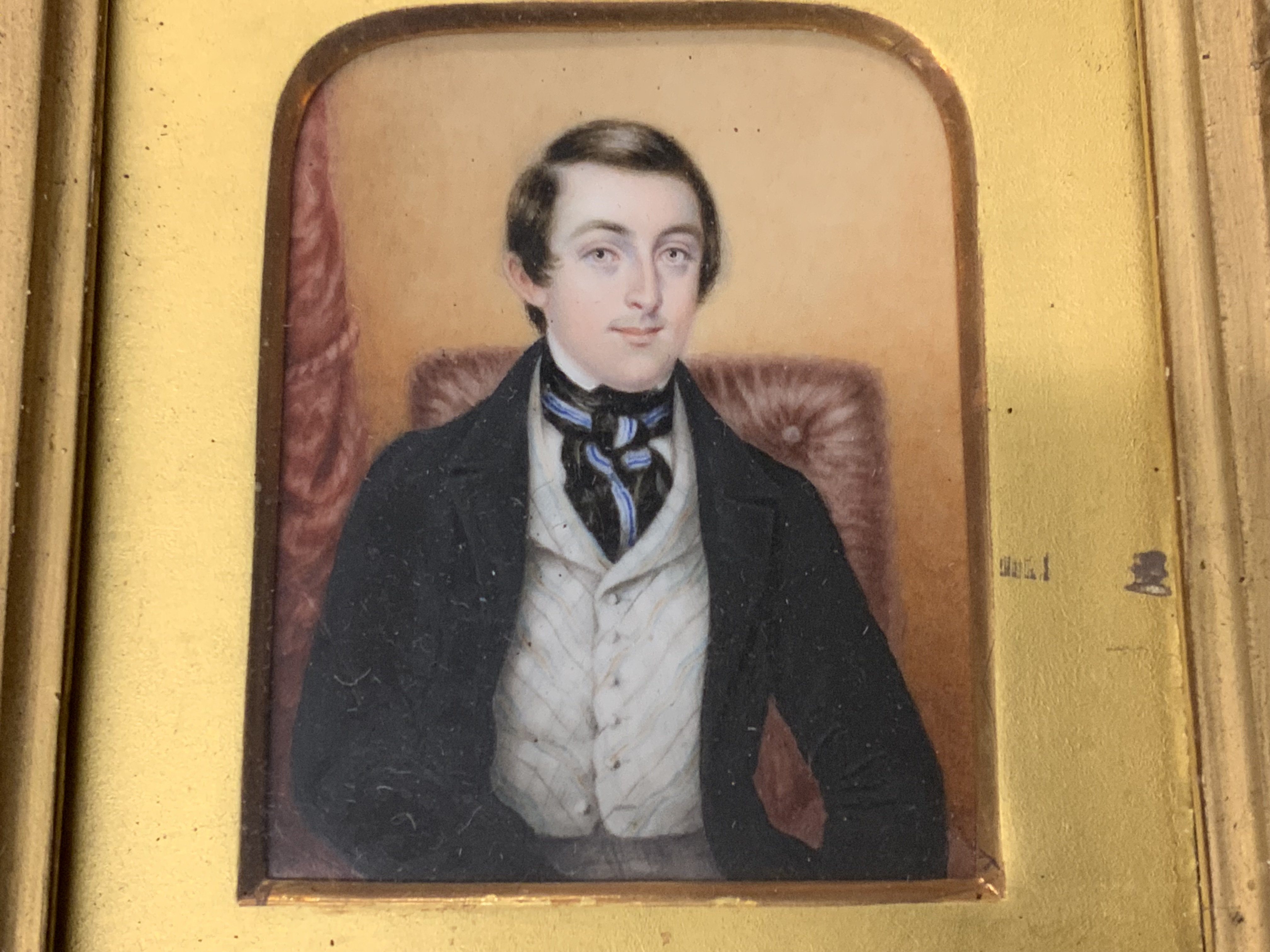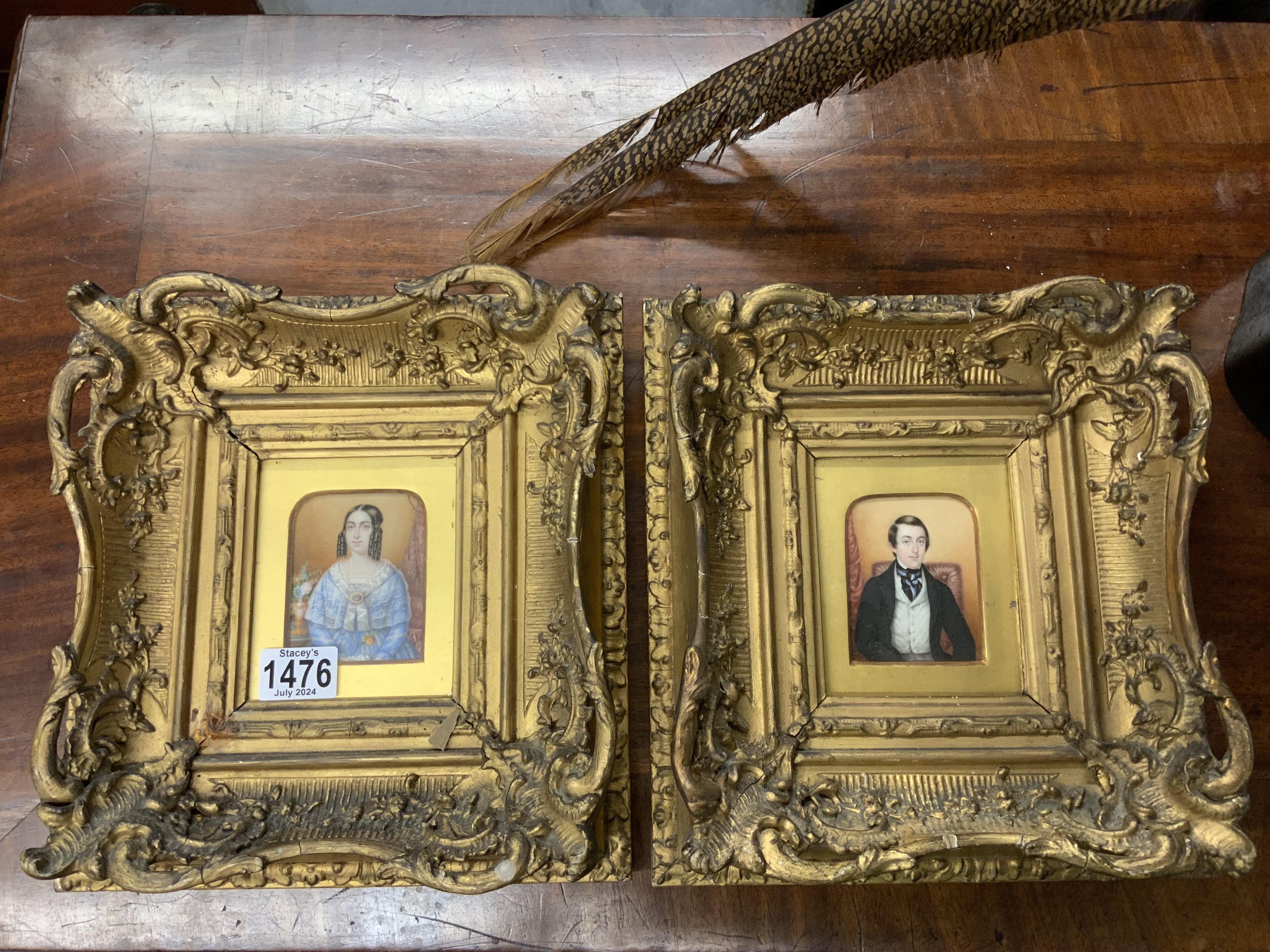 2 Gilt framed hand painted miniatures, 29.5cm x 27.5cm (C)