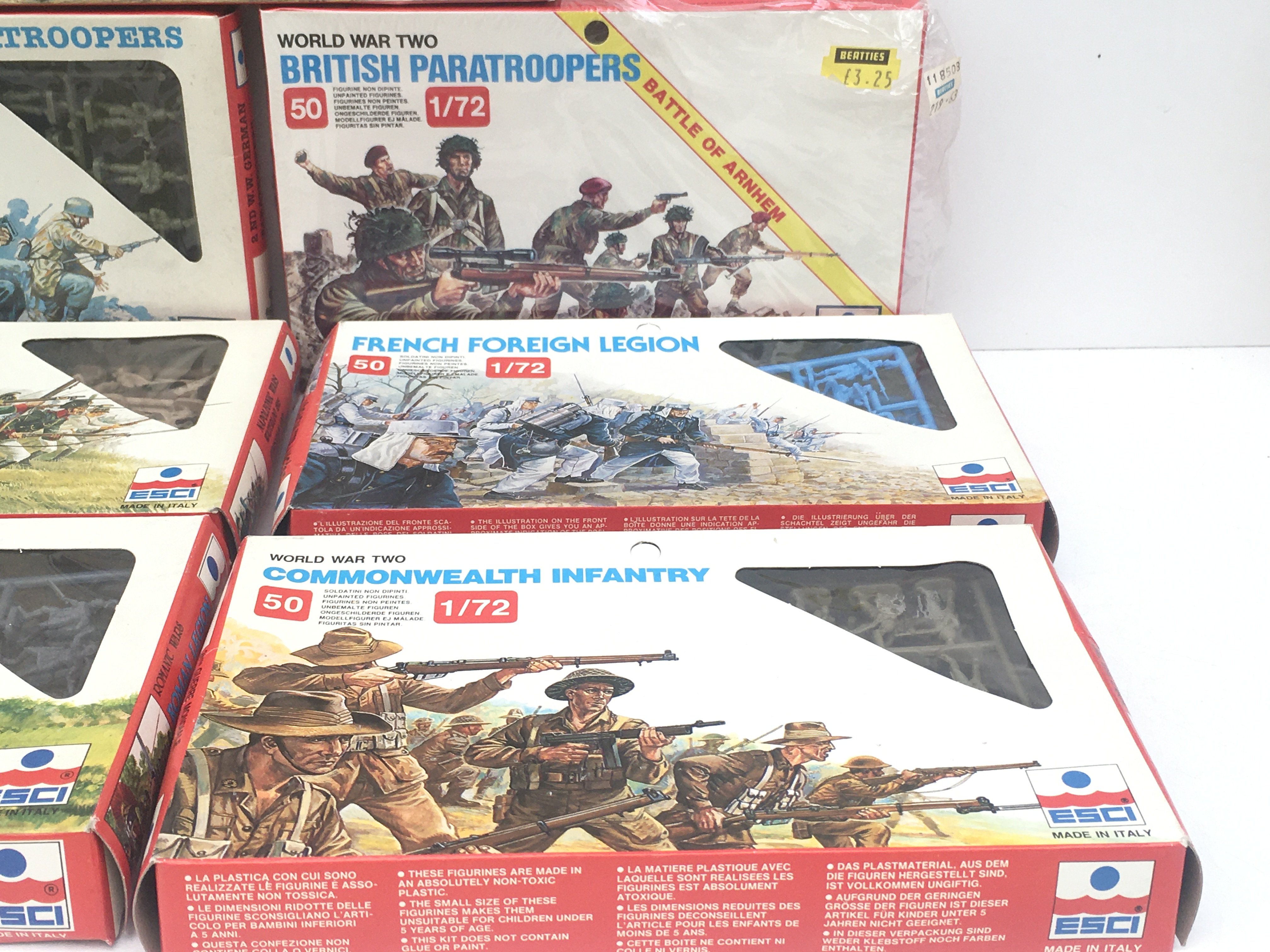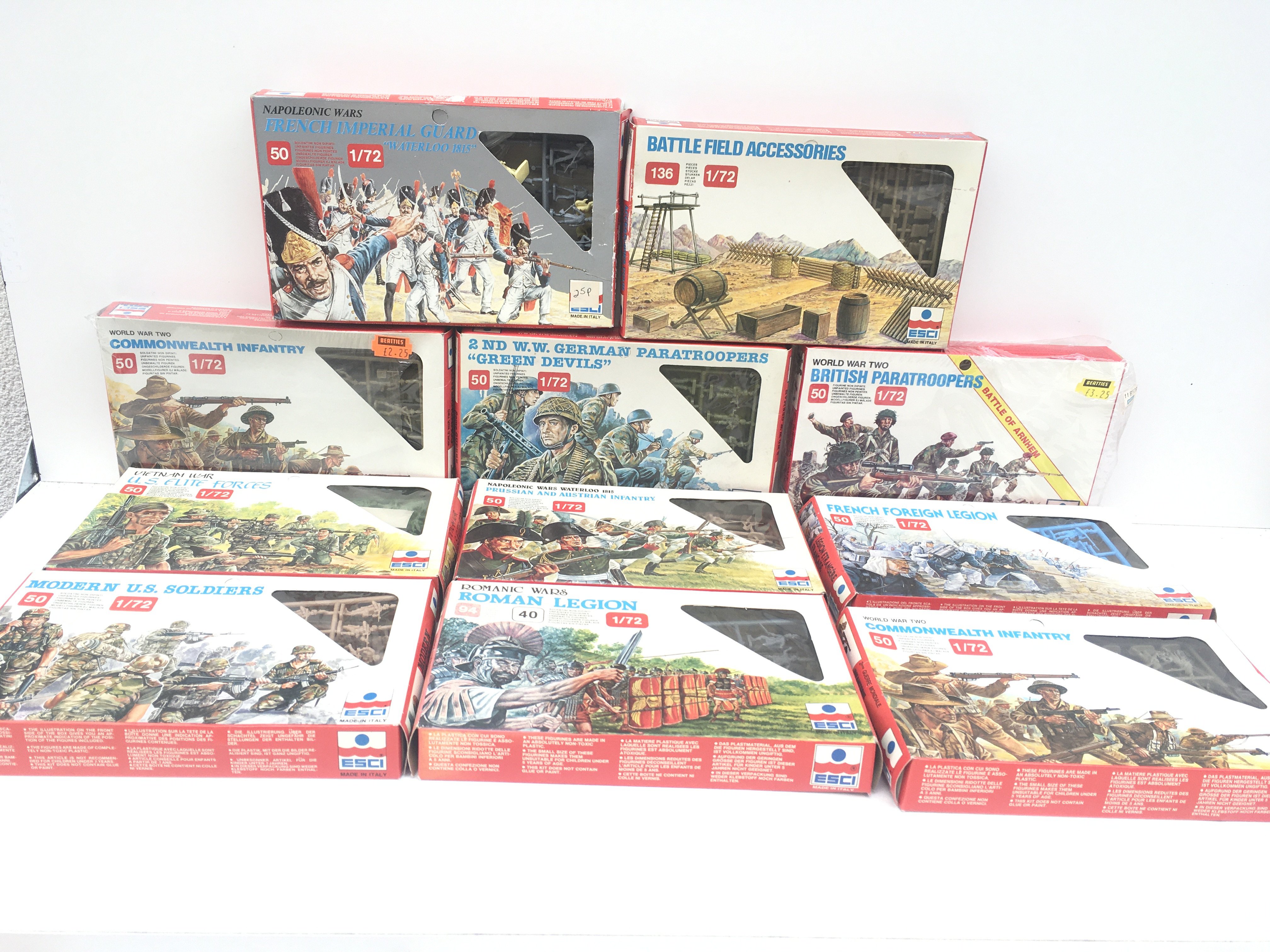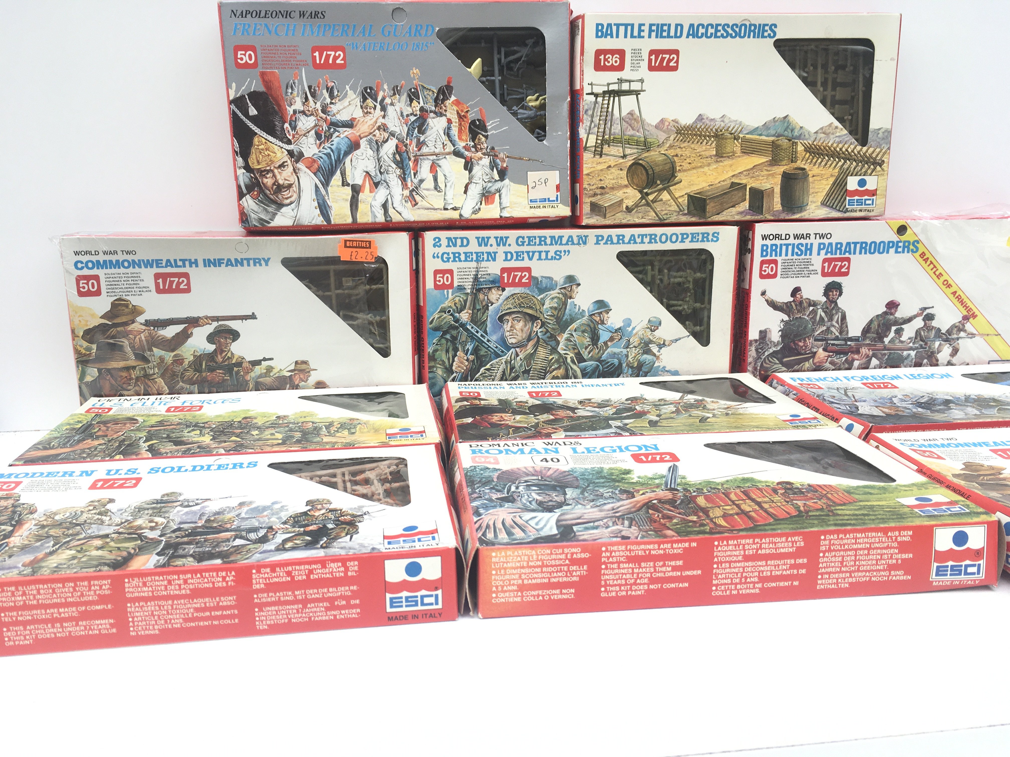 A collection of 11 modelling kits by ESCI all appear unstarted. Theme is military most being soldiers.