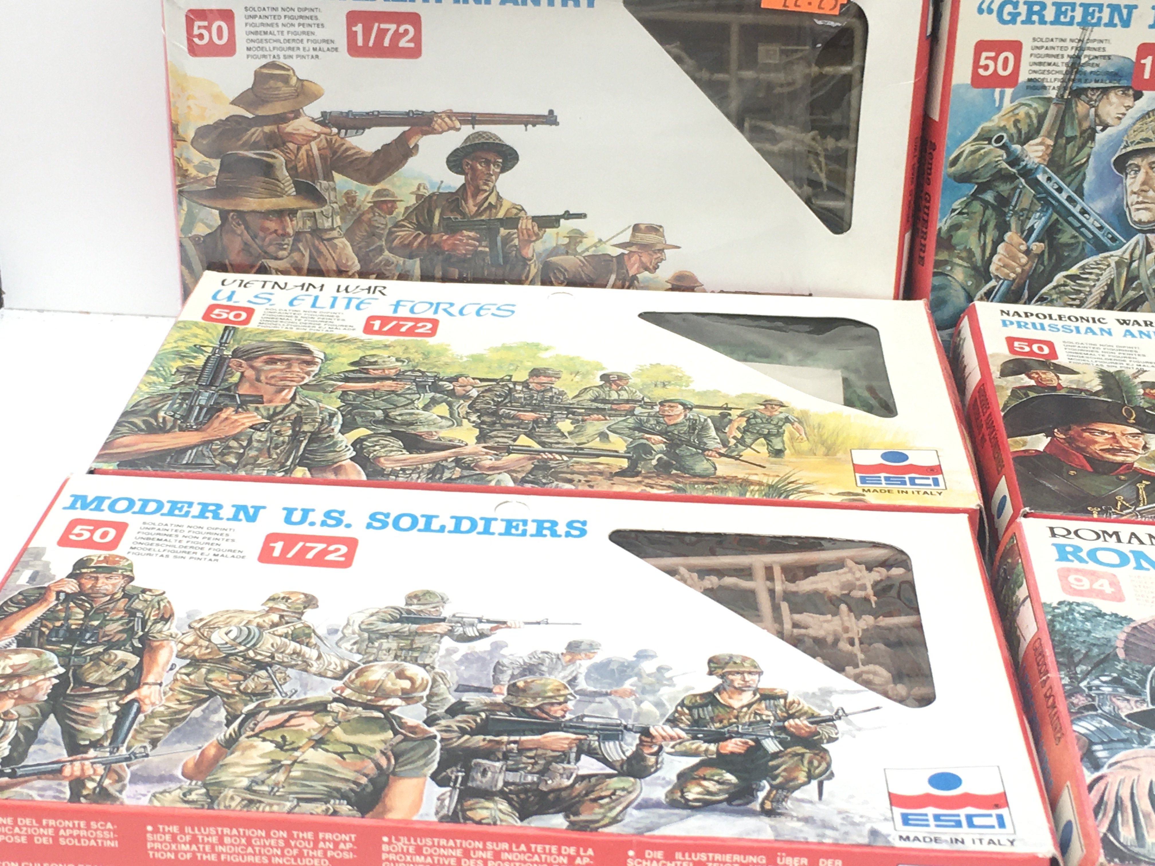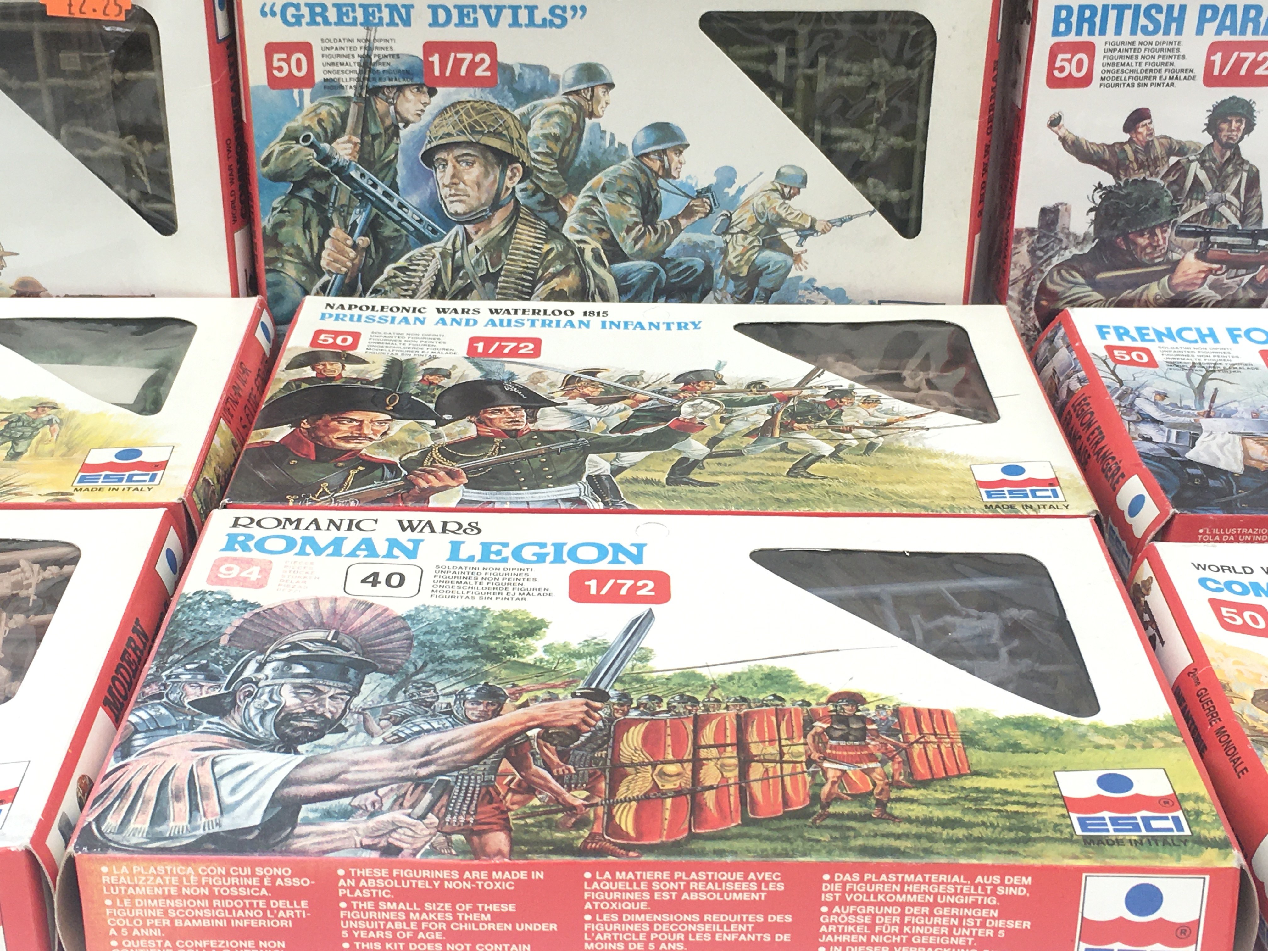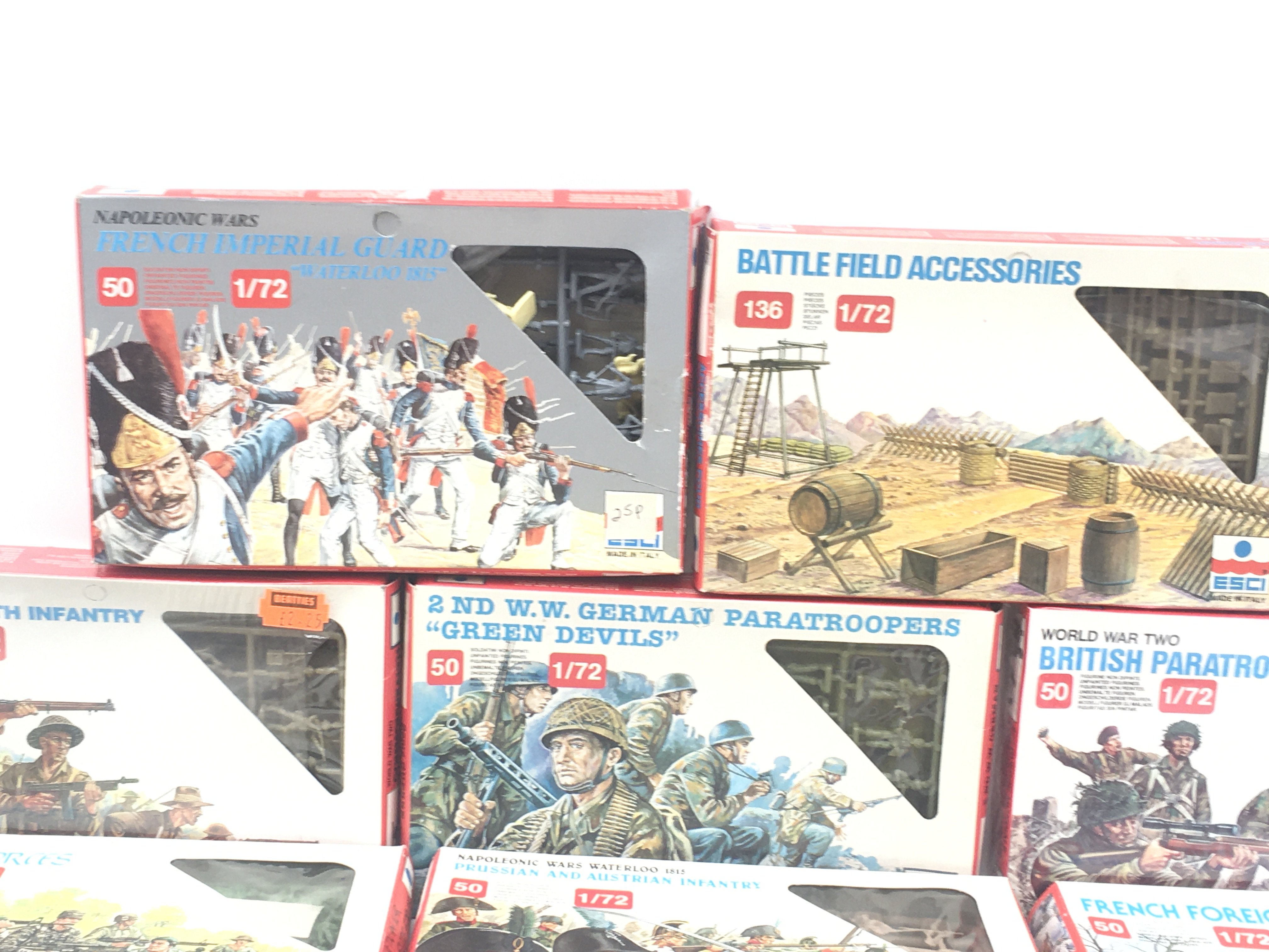 A collection of 11 modelling kits by ESCI all appear unstarted. Theme is military most being soldiers.