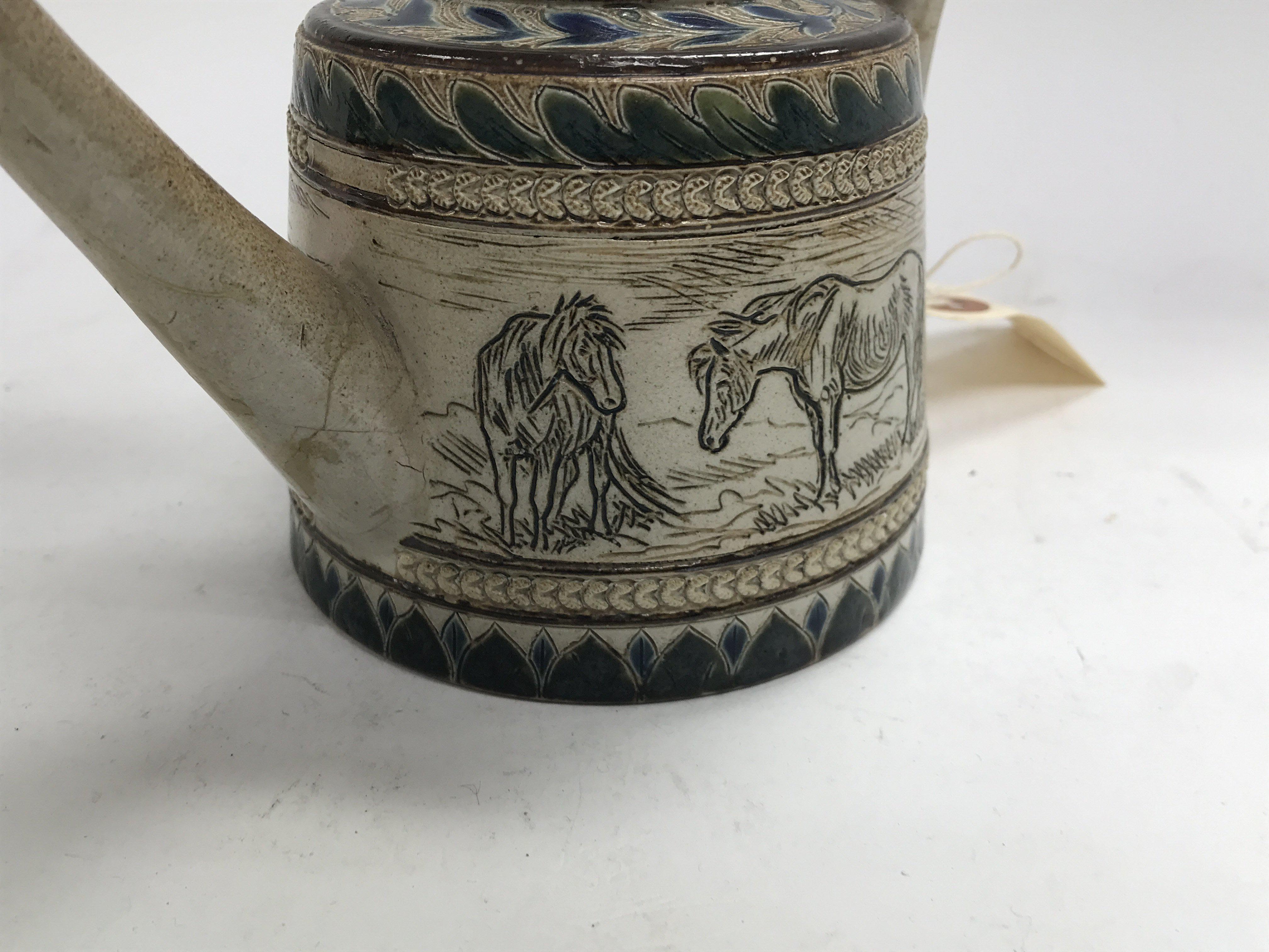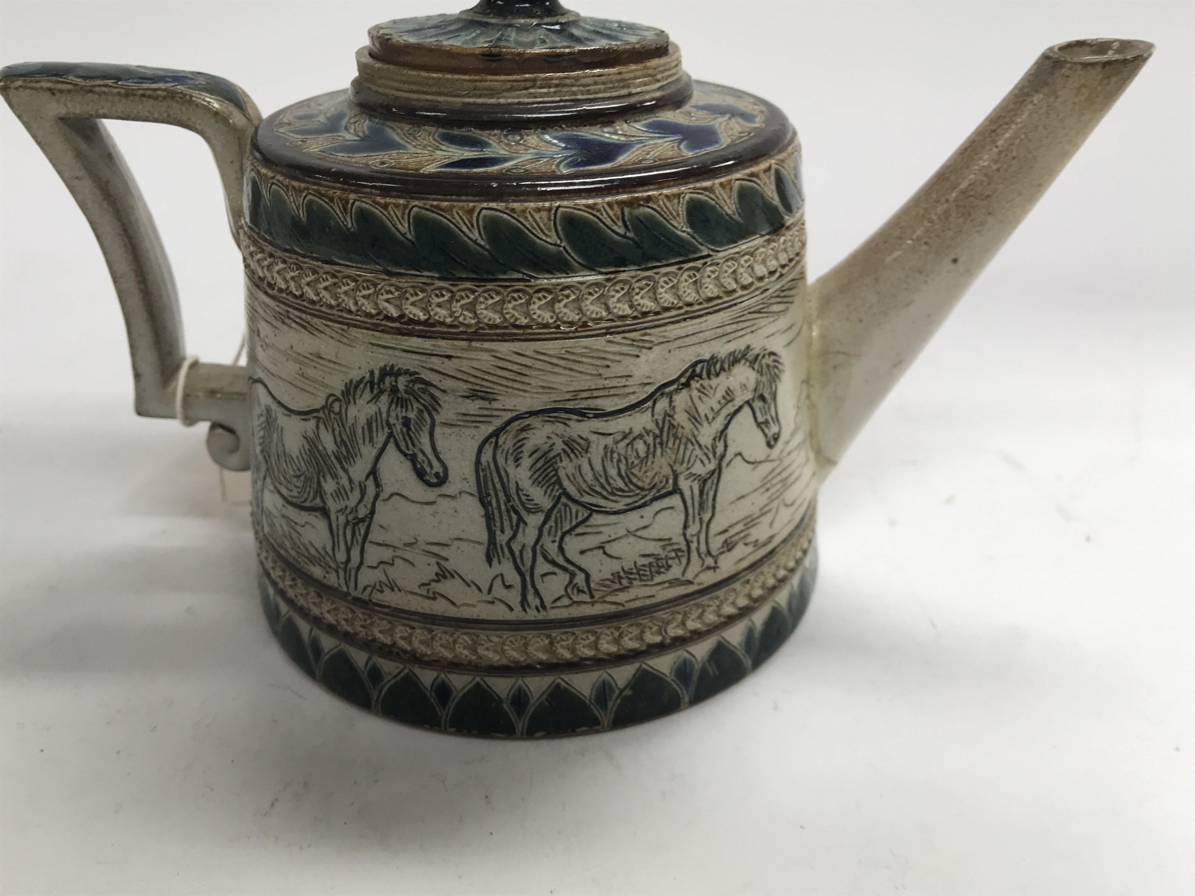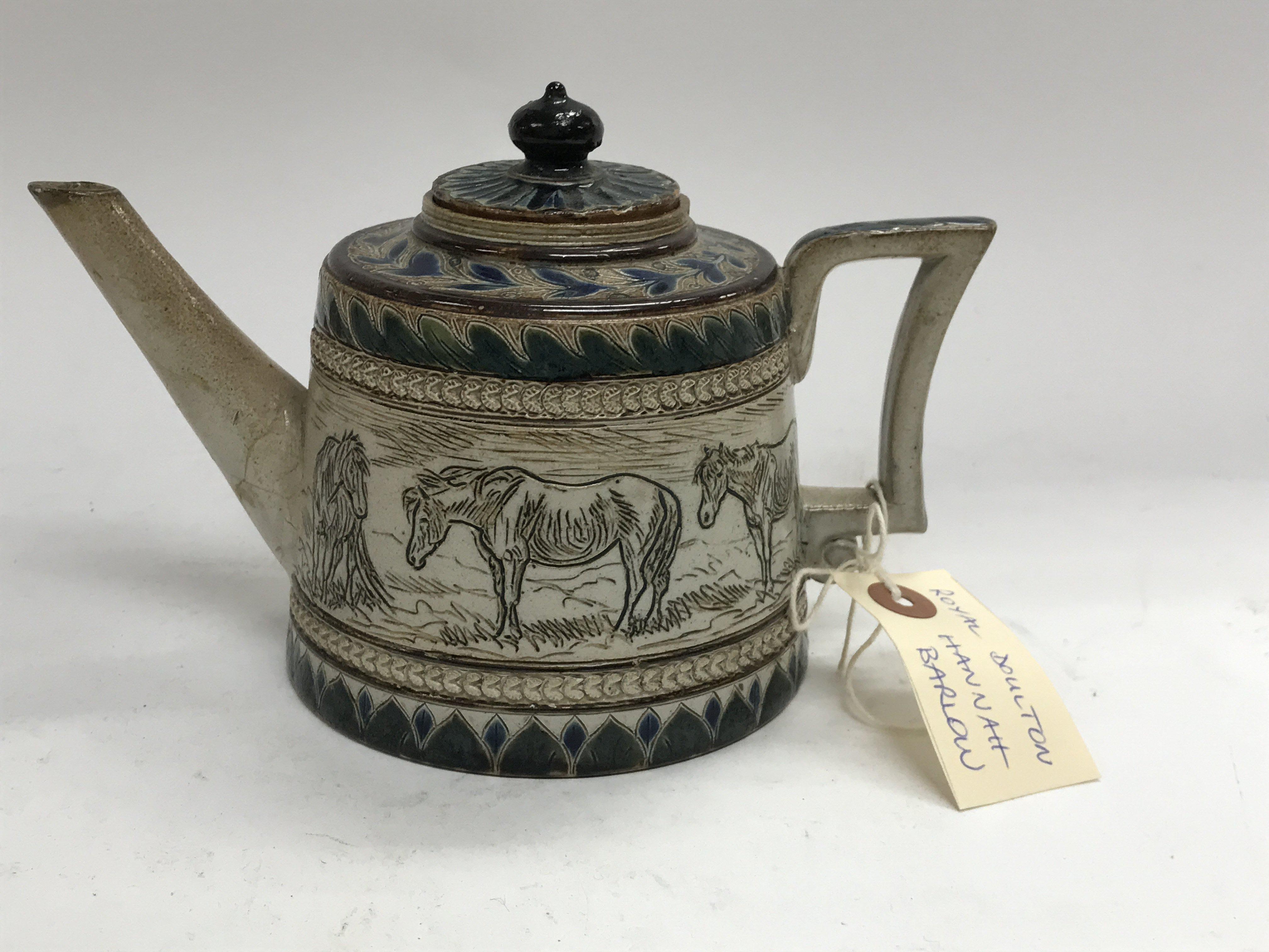 A Royal Doulton Hannah Barlow tea pot decorated with horses .12 cm A/F