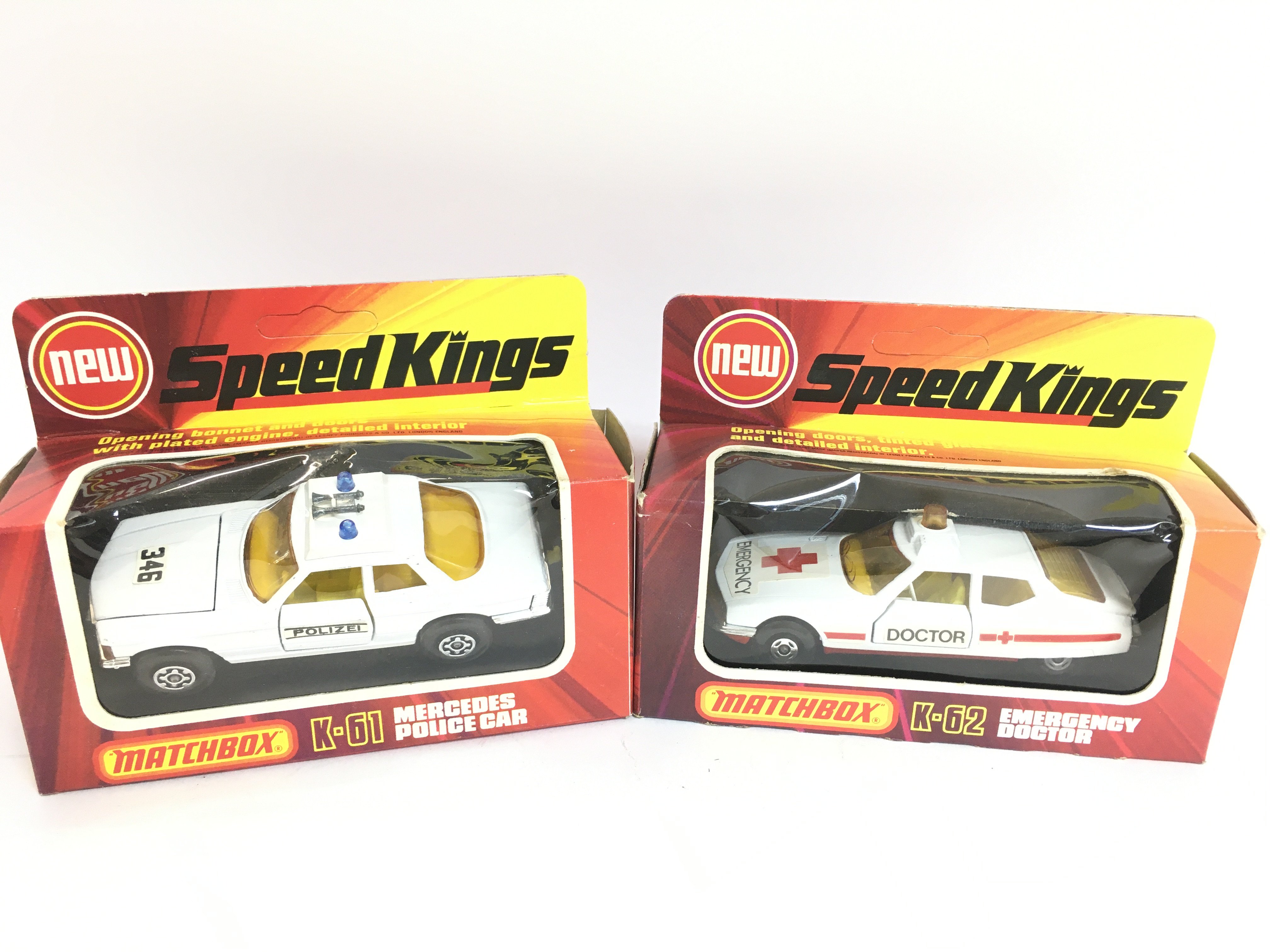 A Boxed Macthbox Mercedes Police Car K-61 and a Emergency Doctor K-62. Both Un punched. NO RESERVE