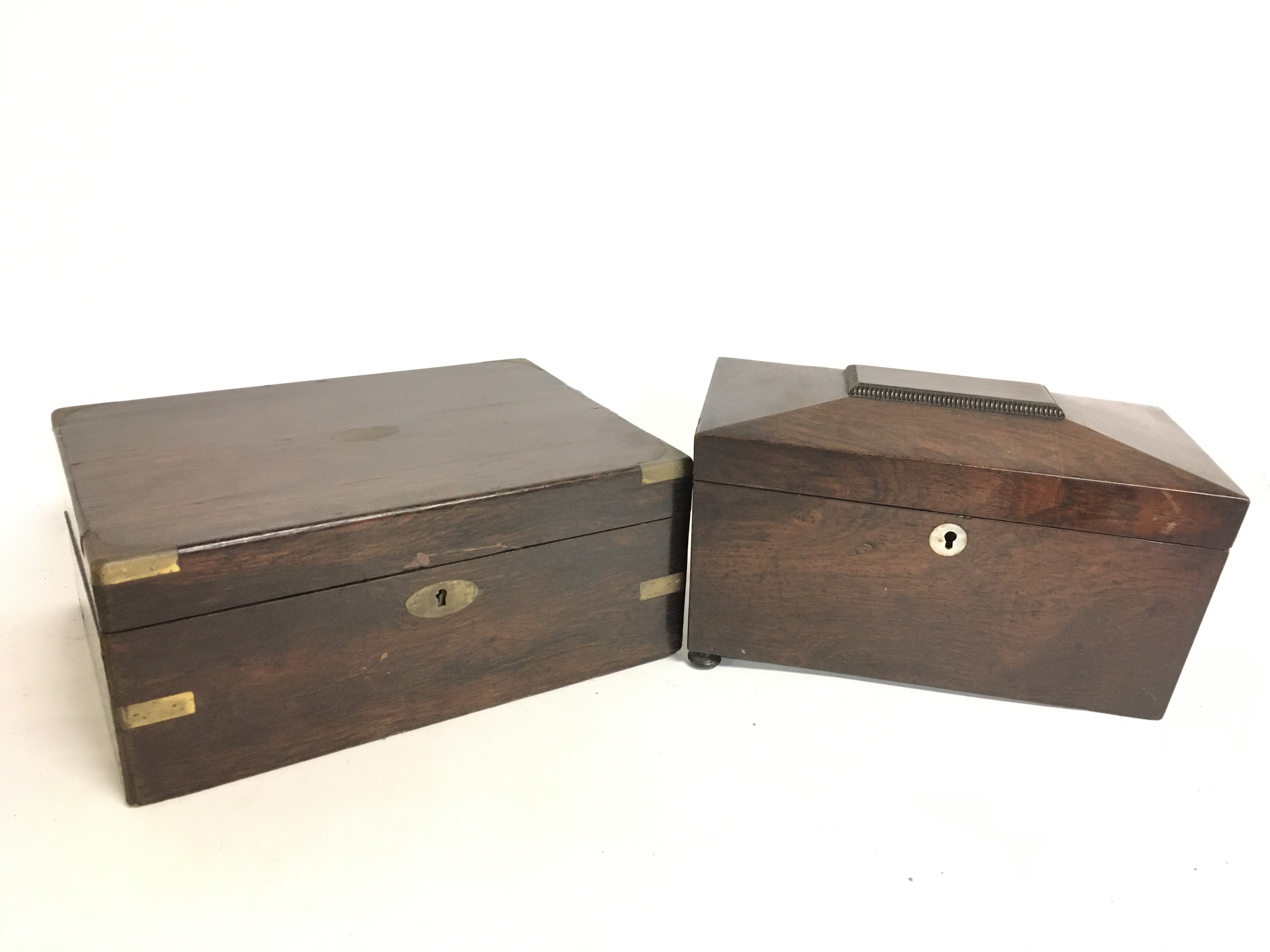 An oak tea caddy 22x30x13cm (damaged) and a writing box 16x28x14cm