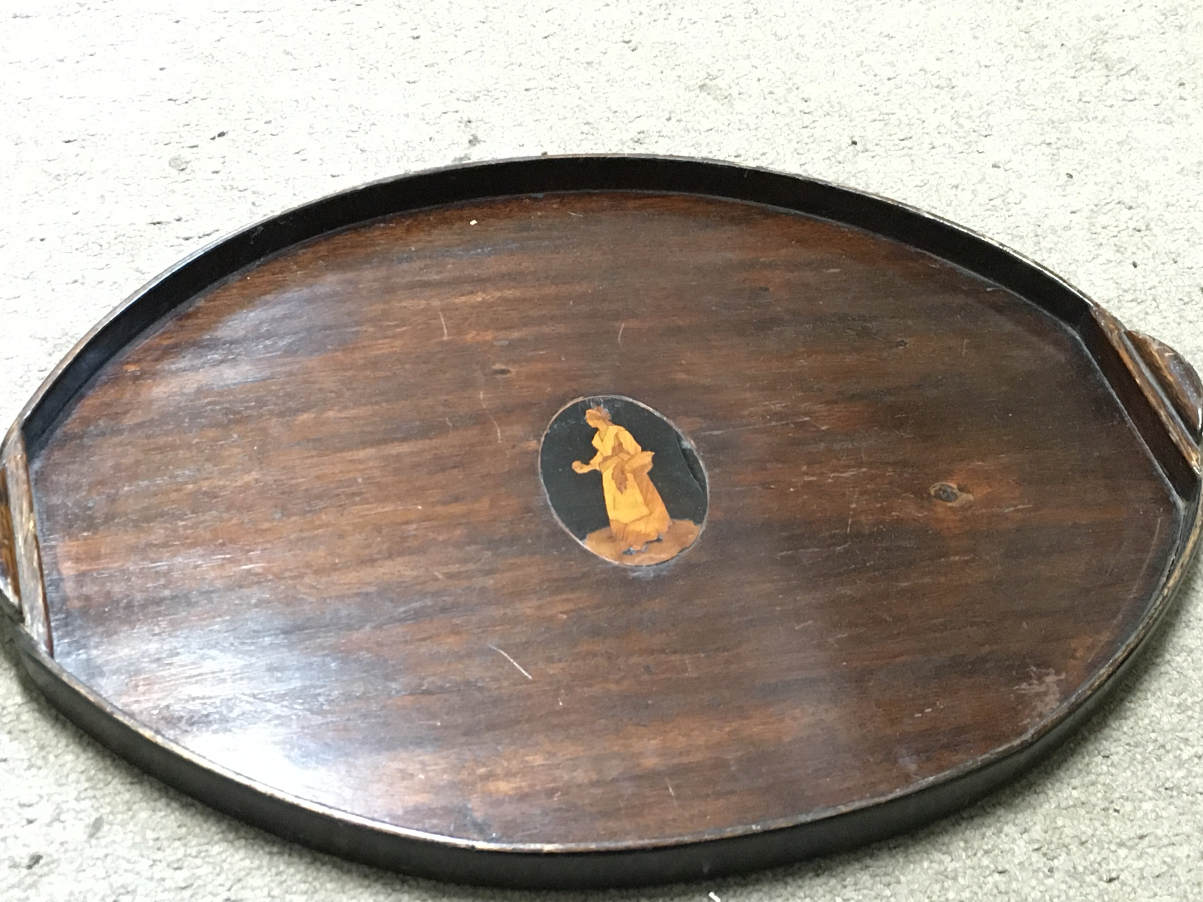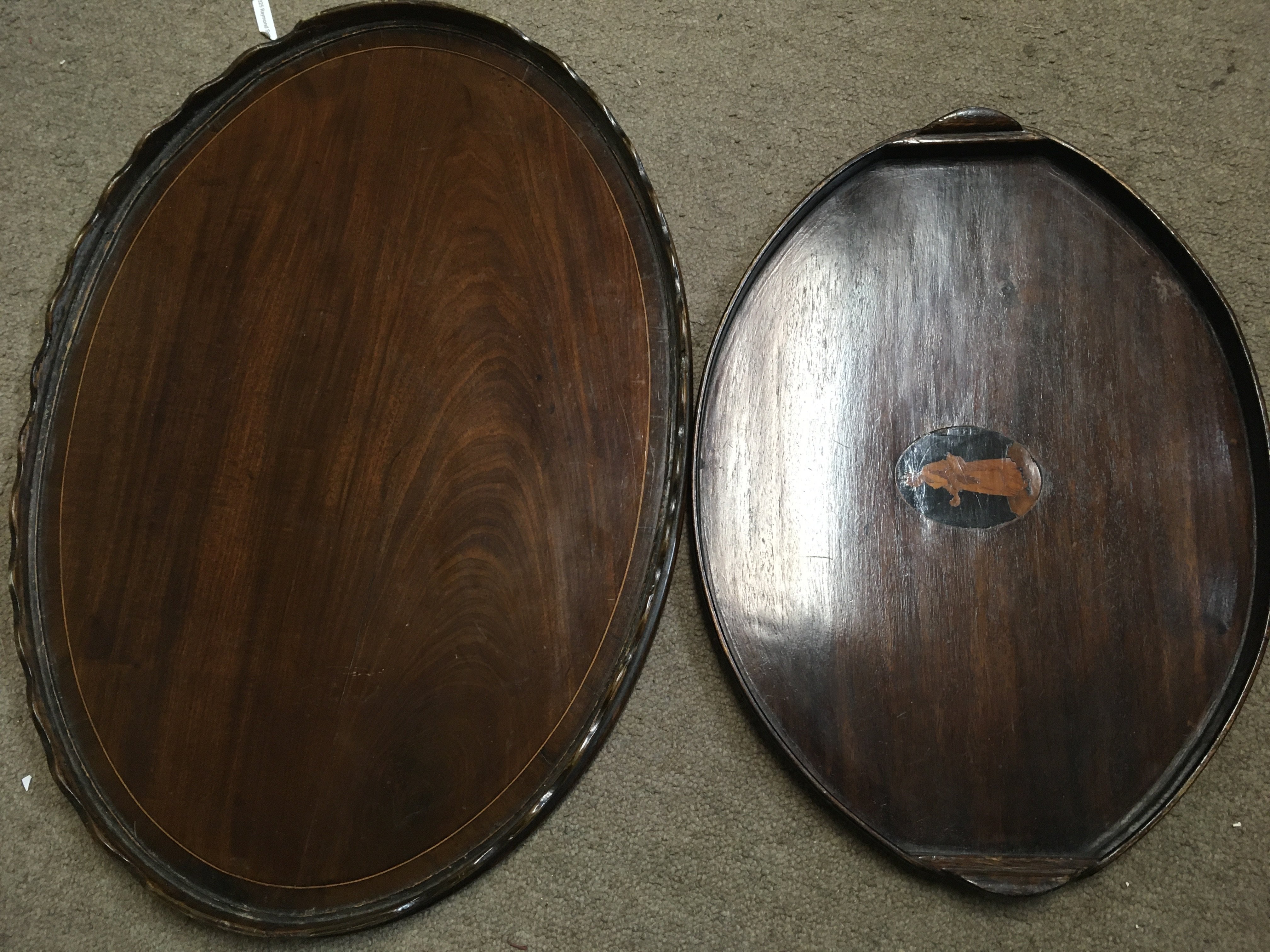 A pair of Edwardian mahogany & oak inlaid trays. Postage category C