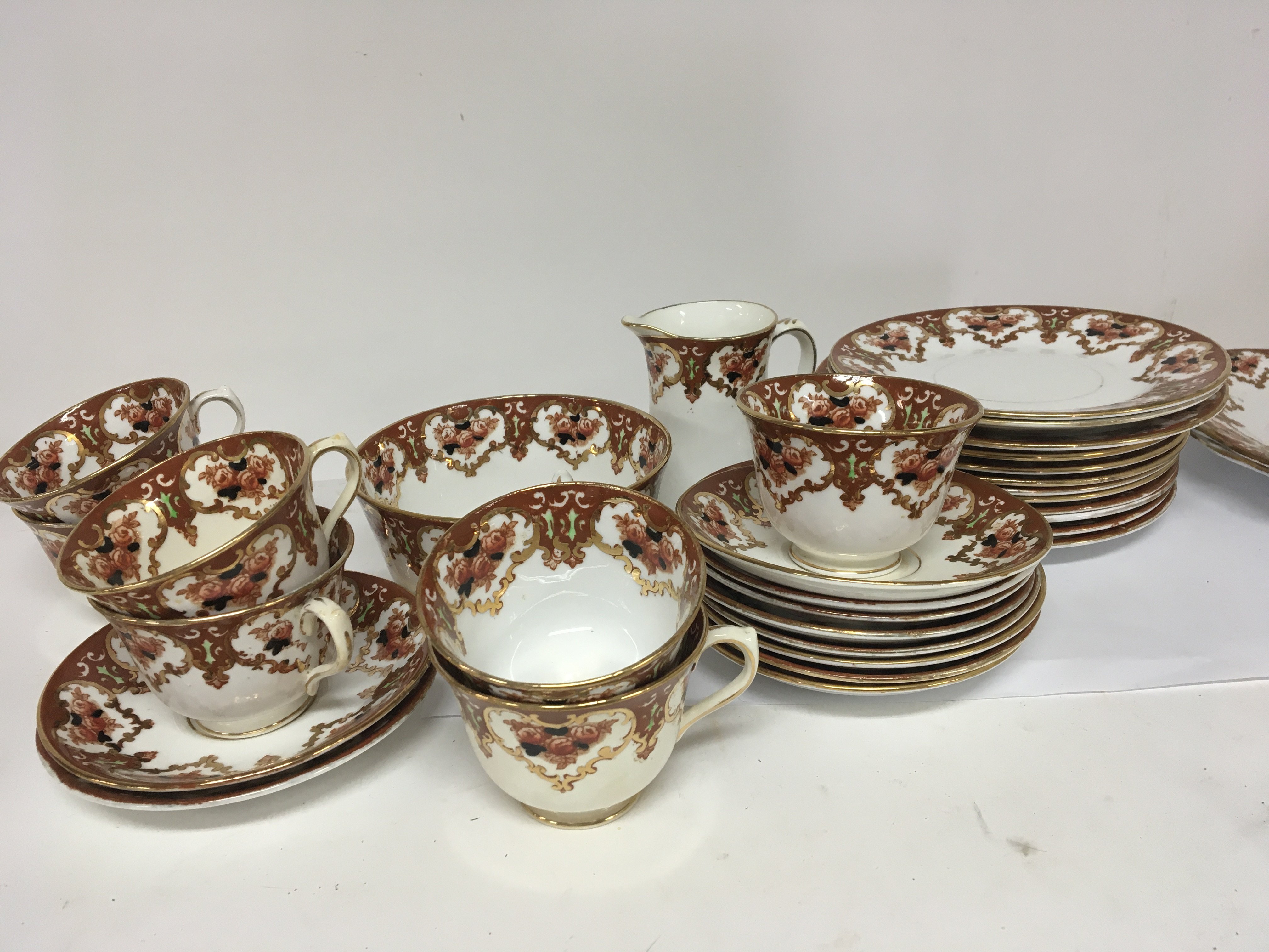 A Royal Albert early 20th Century tea set. decorated with flowers and gilt.