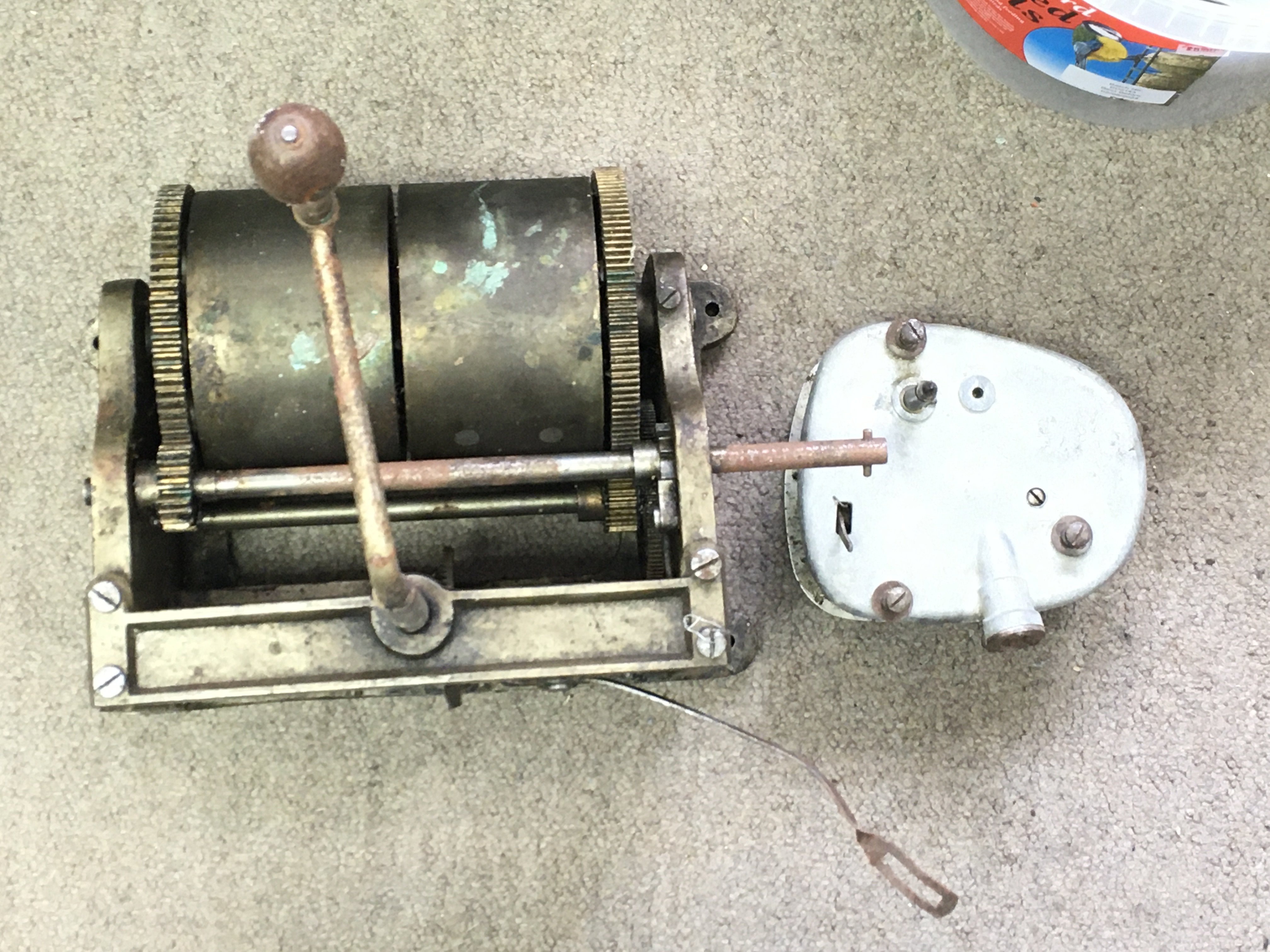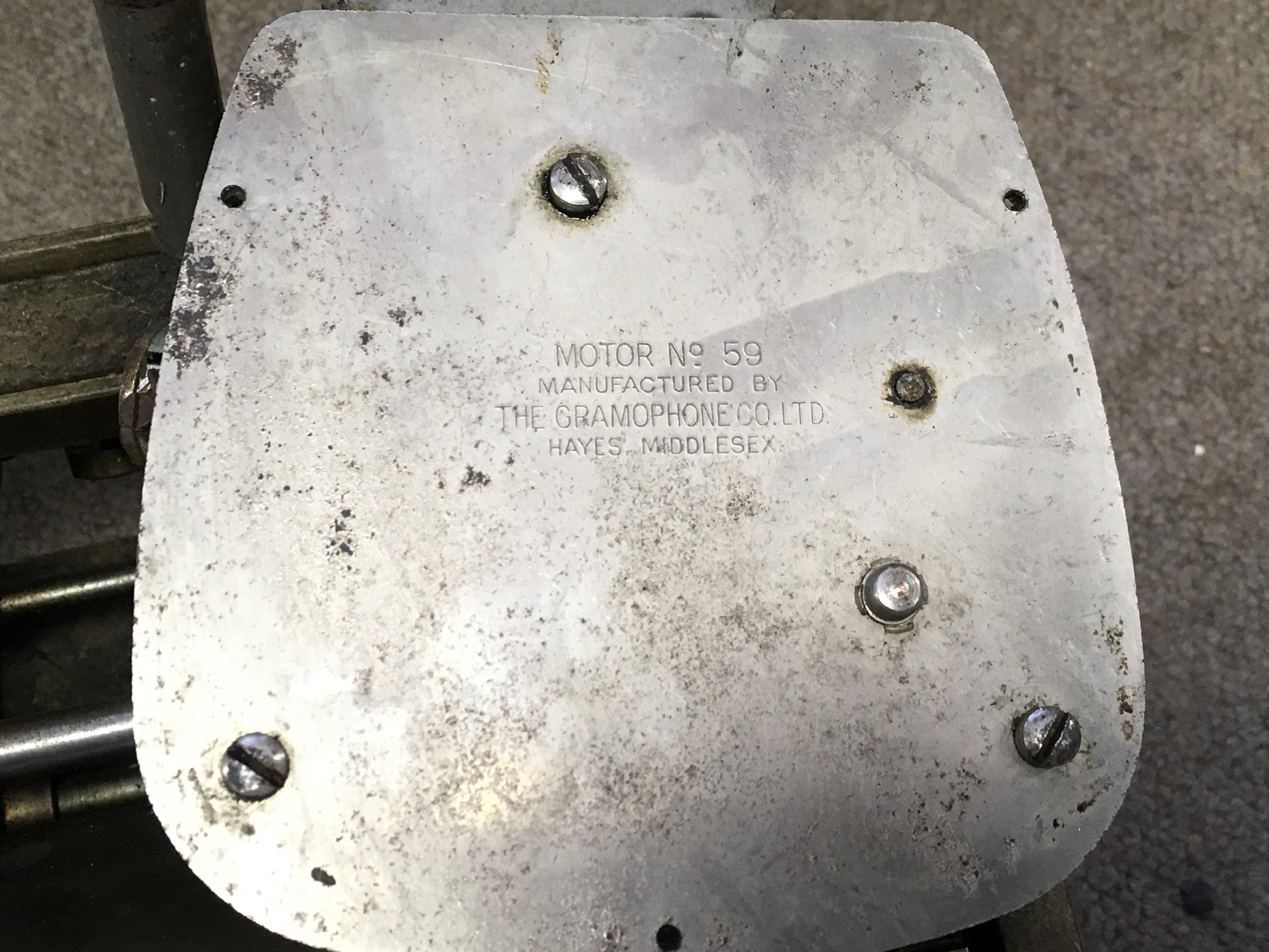 A rare large gramophone motor no makers name and a Gramophone HMV motor model number 59.