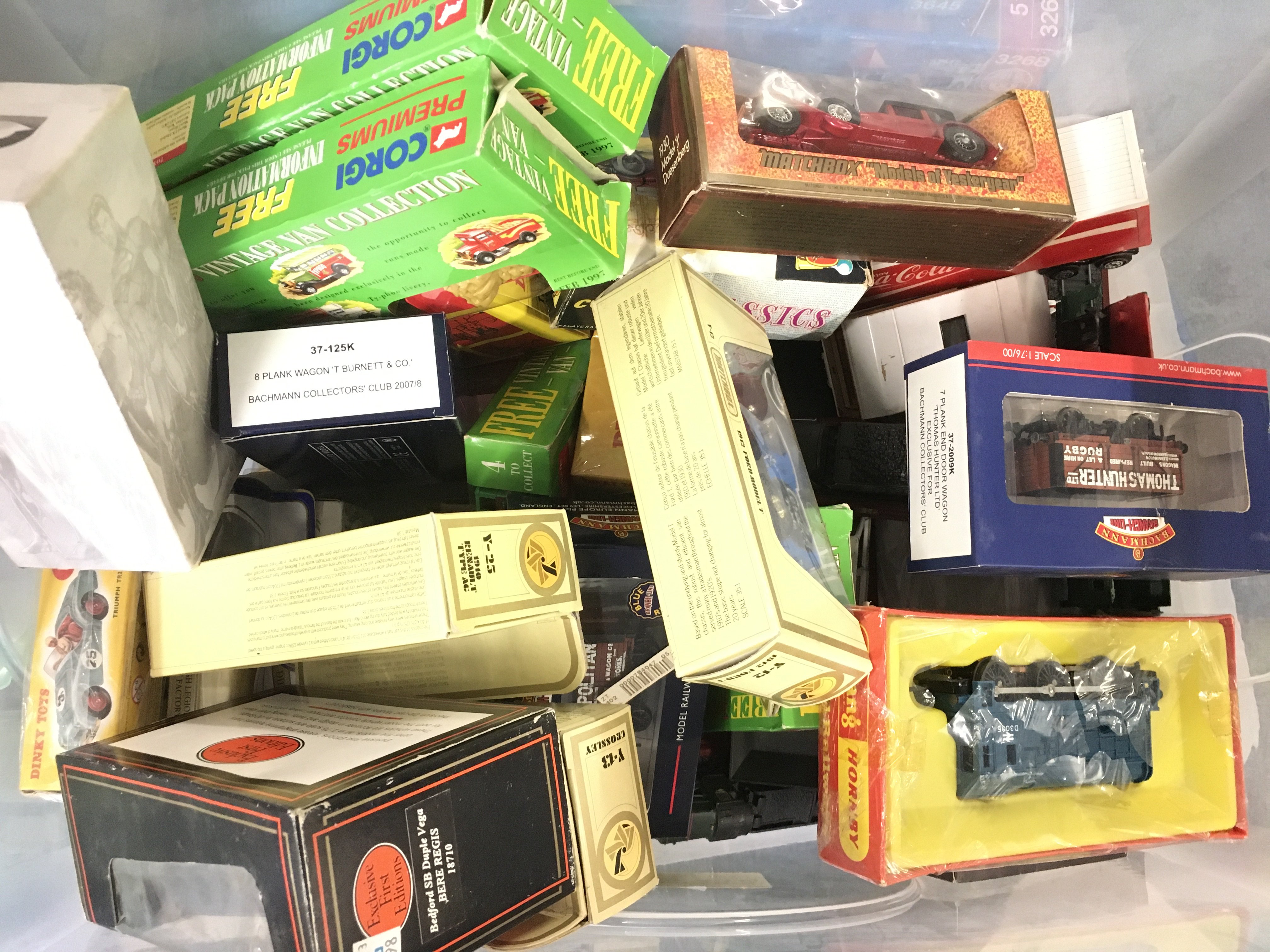 A Box Containing Reproduction Dinky Toys. Matchbox Models Of Yesteryear. Hornby and Bachmann.