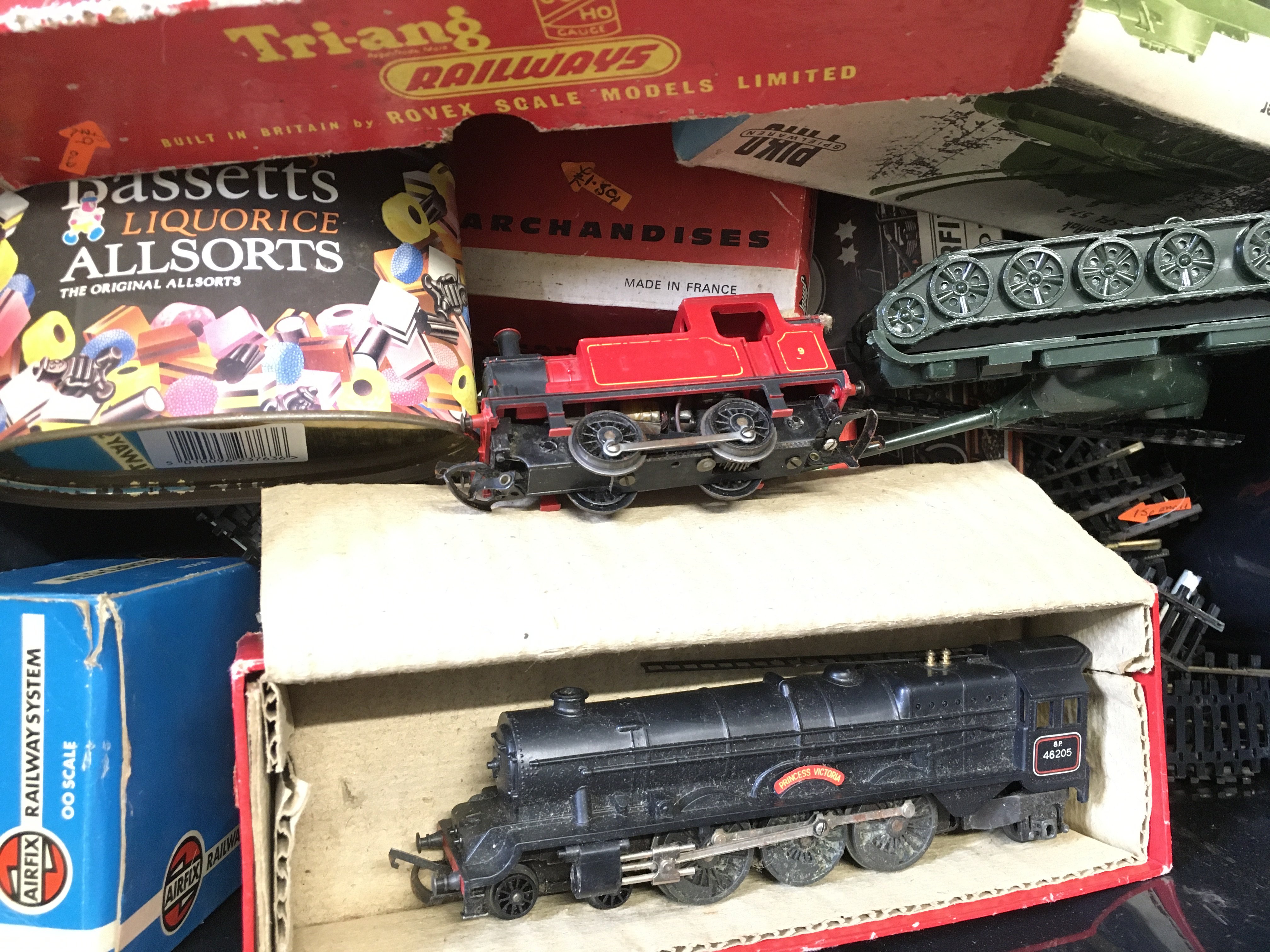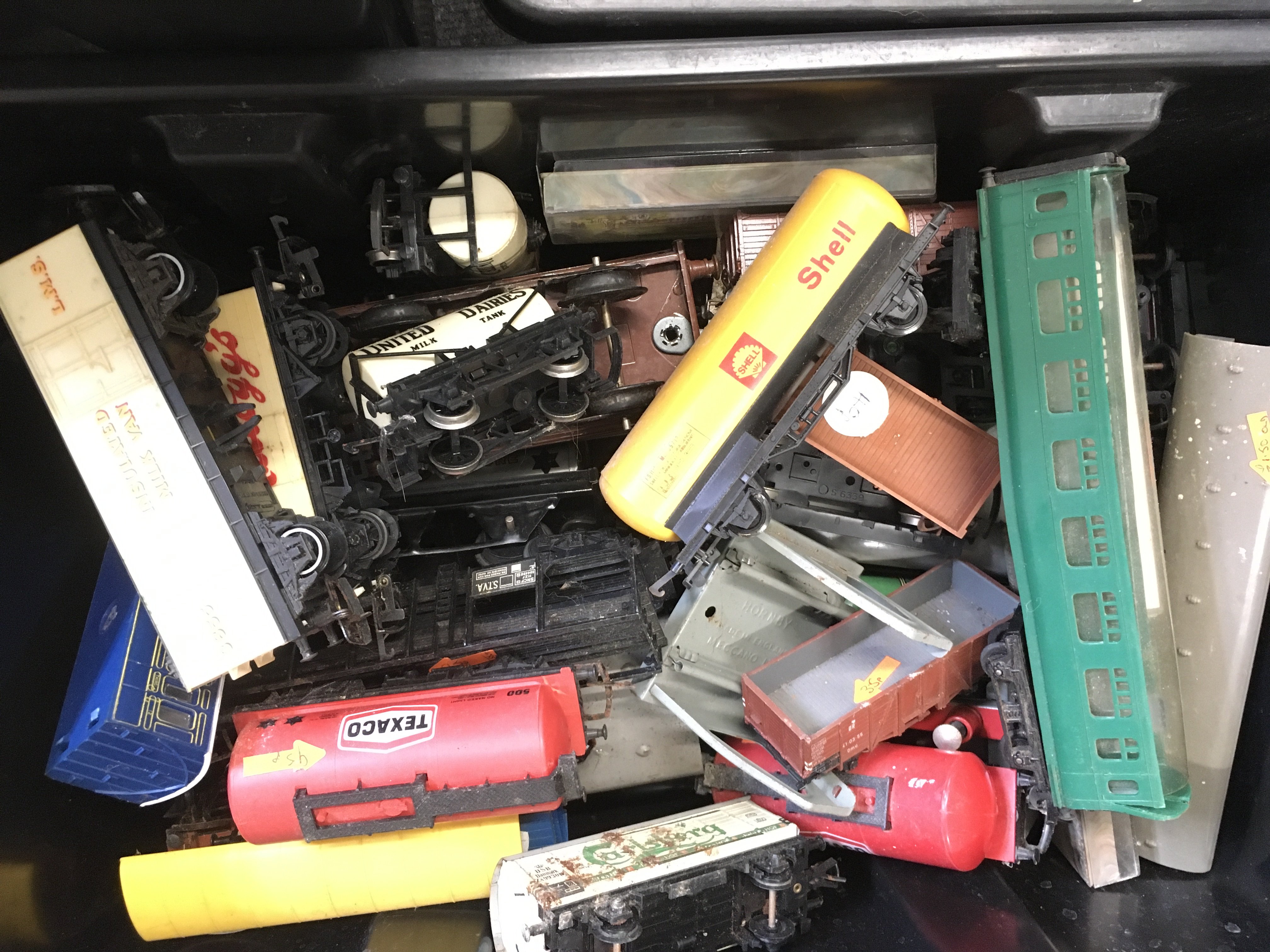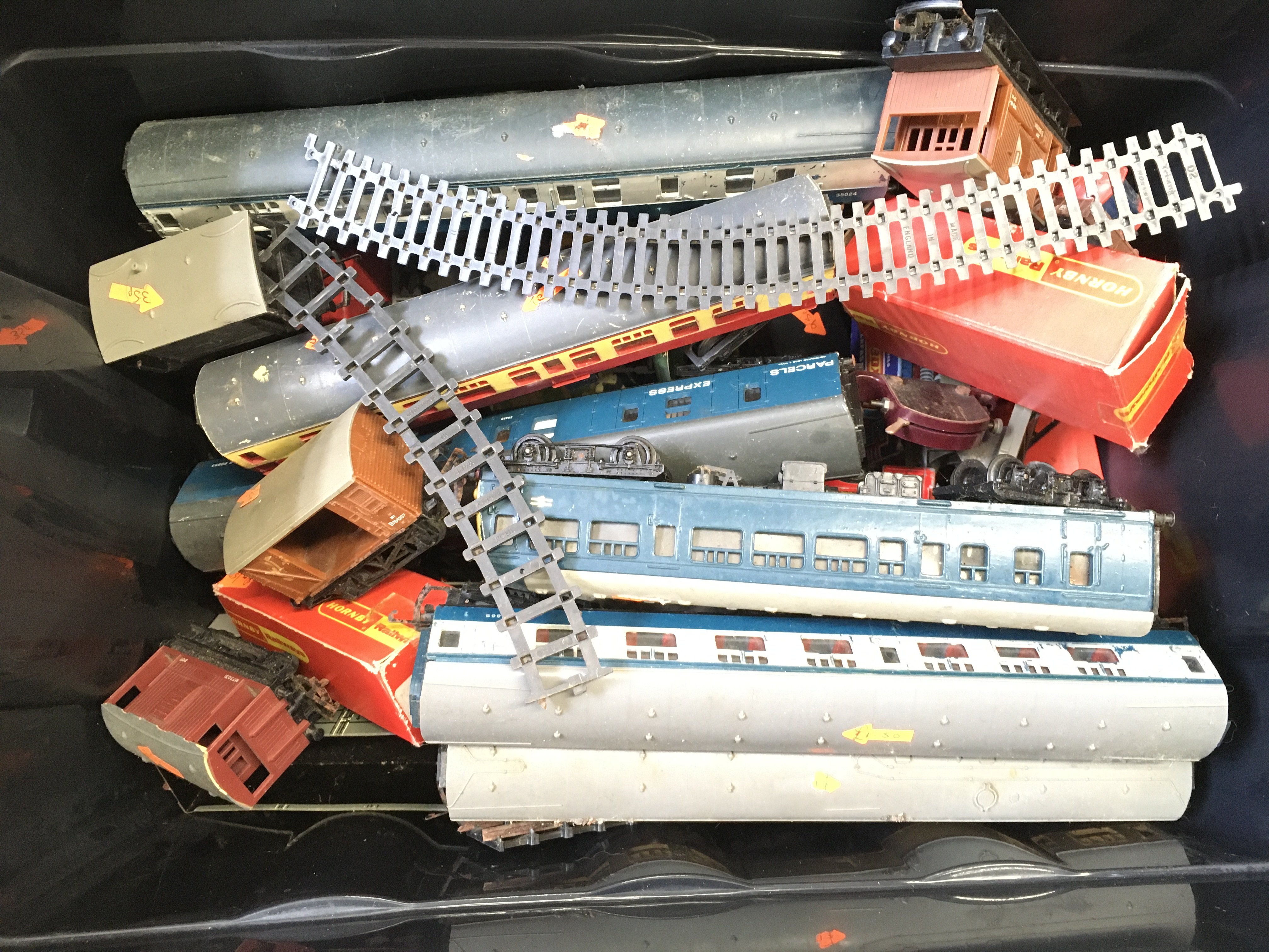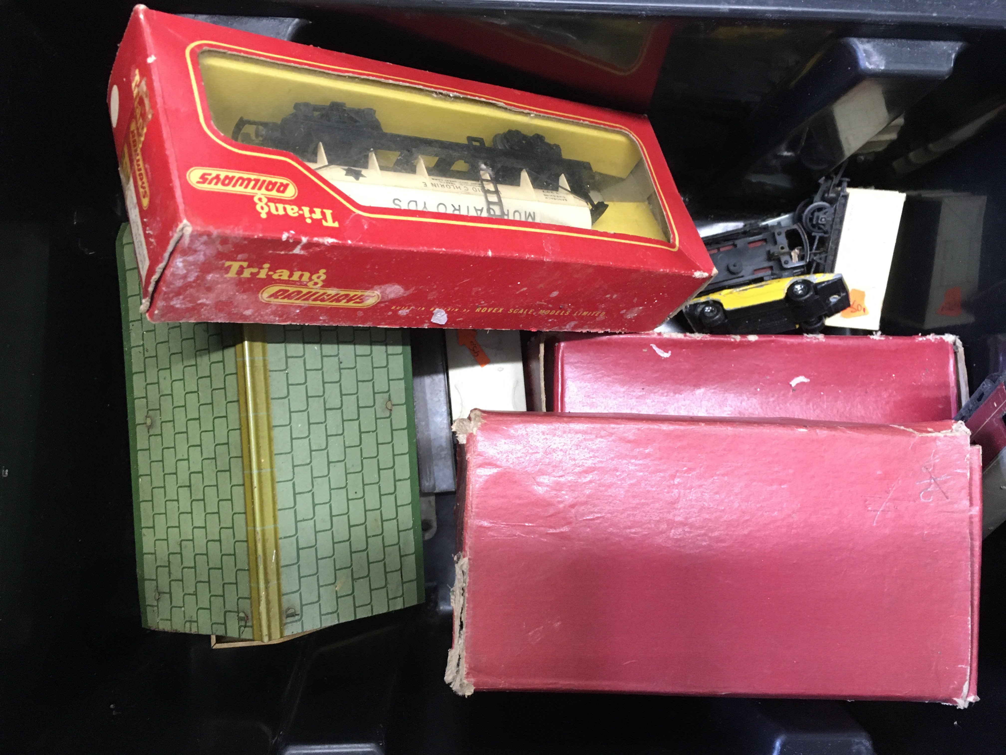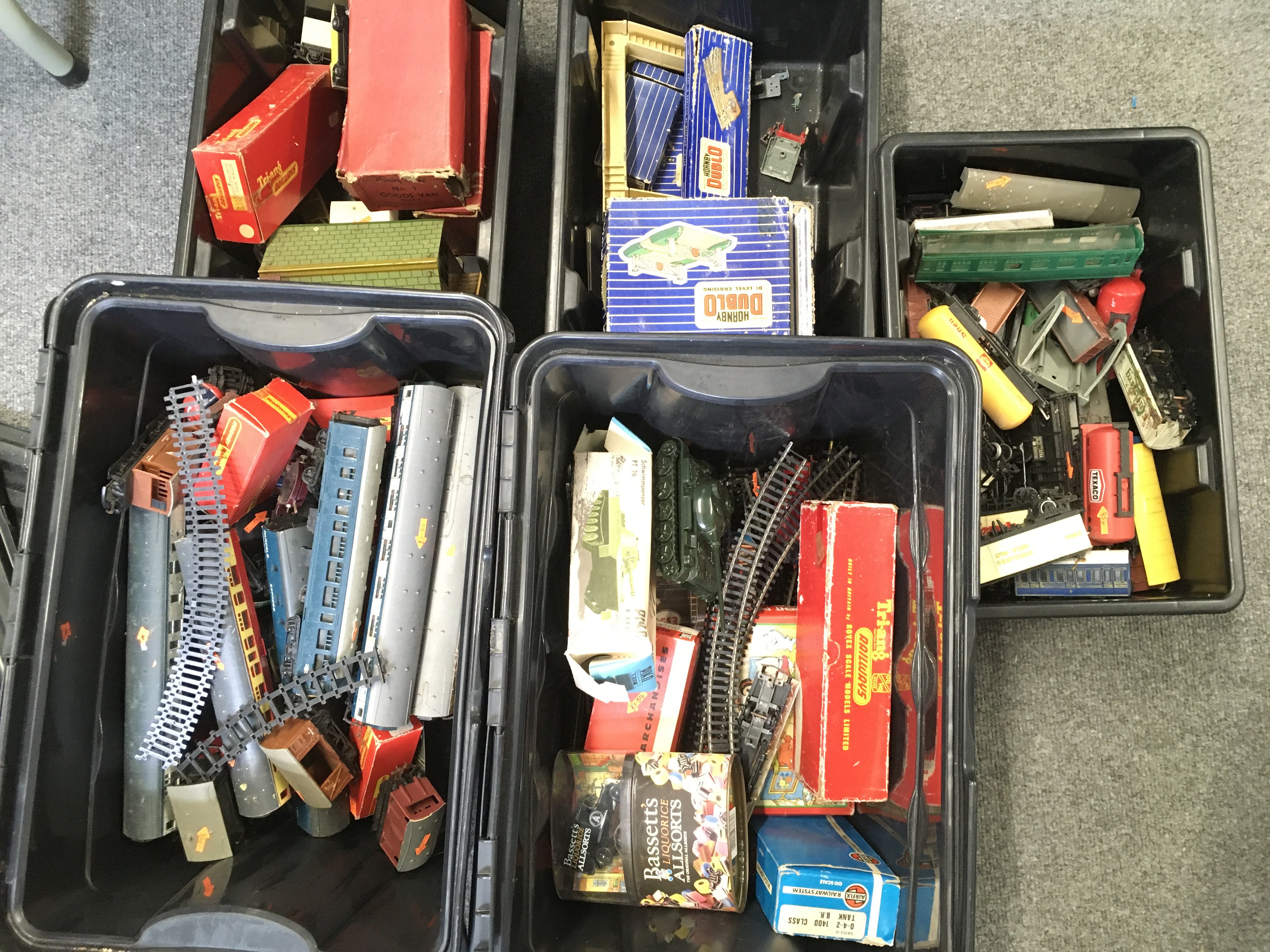 5 Boxes Containing 00 Gauge Track. Coaches. Wagons. Etc.