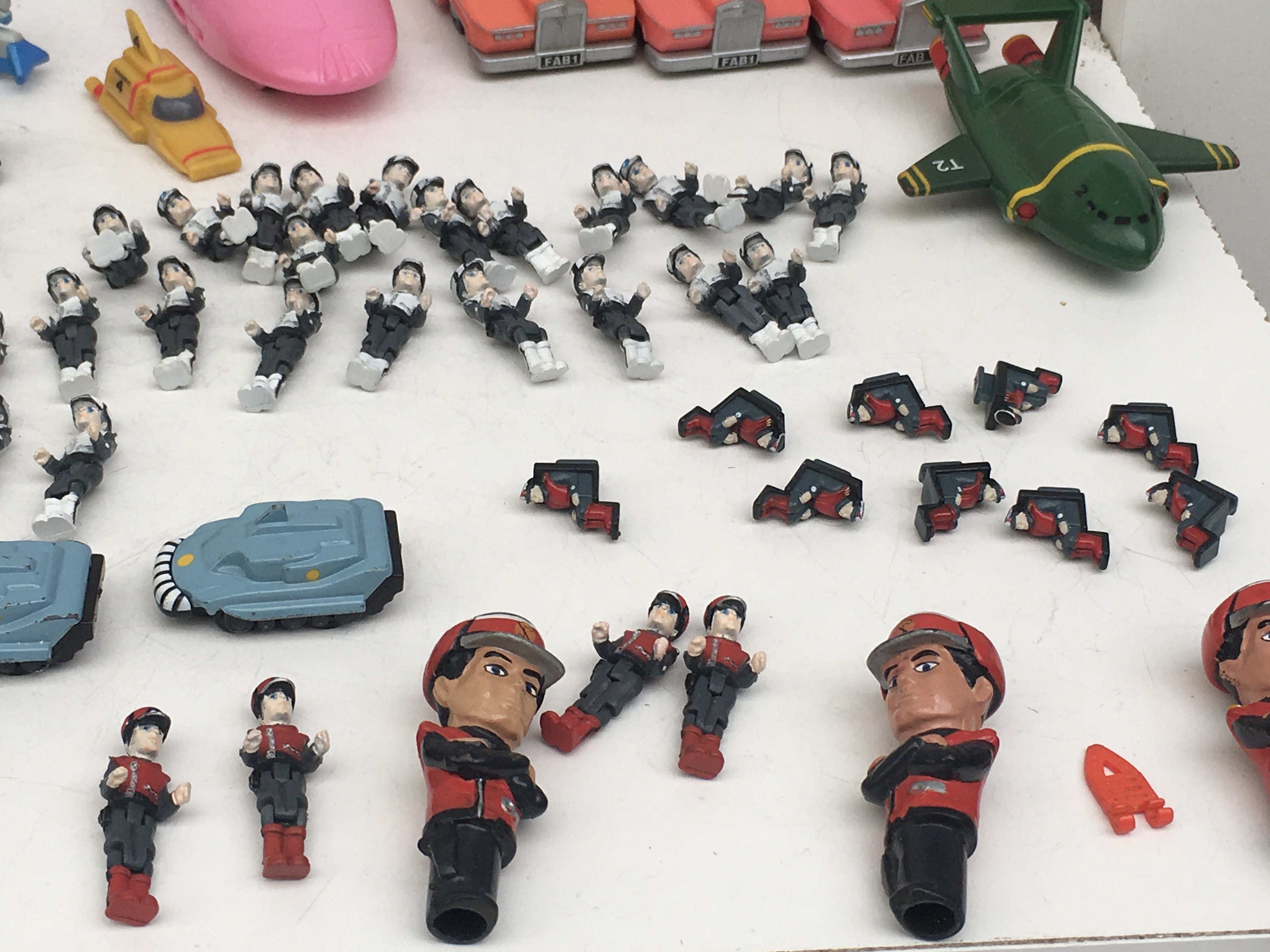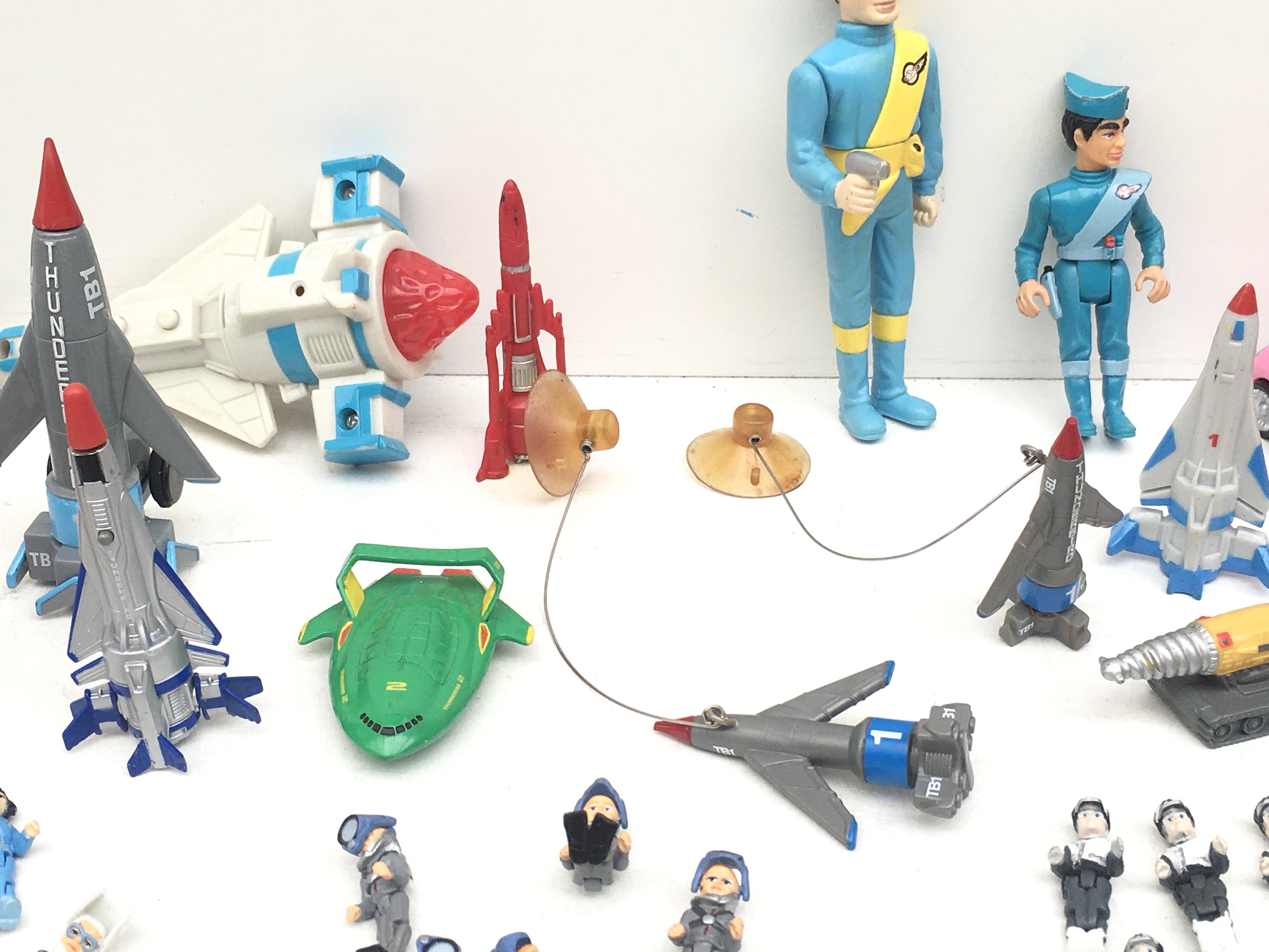 A collection in excess of 100 pieces from Thunderbirds and Captain Scarlet. Comprising vehicles..characters etc.
