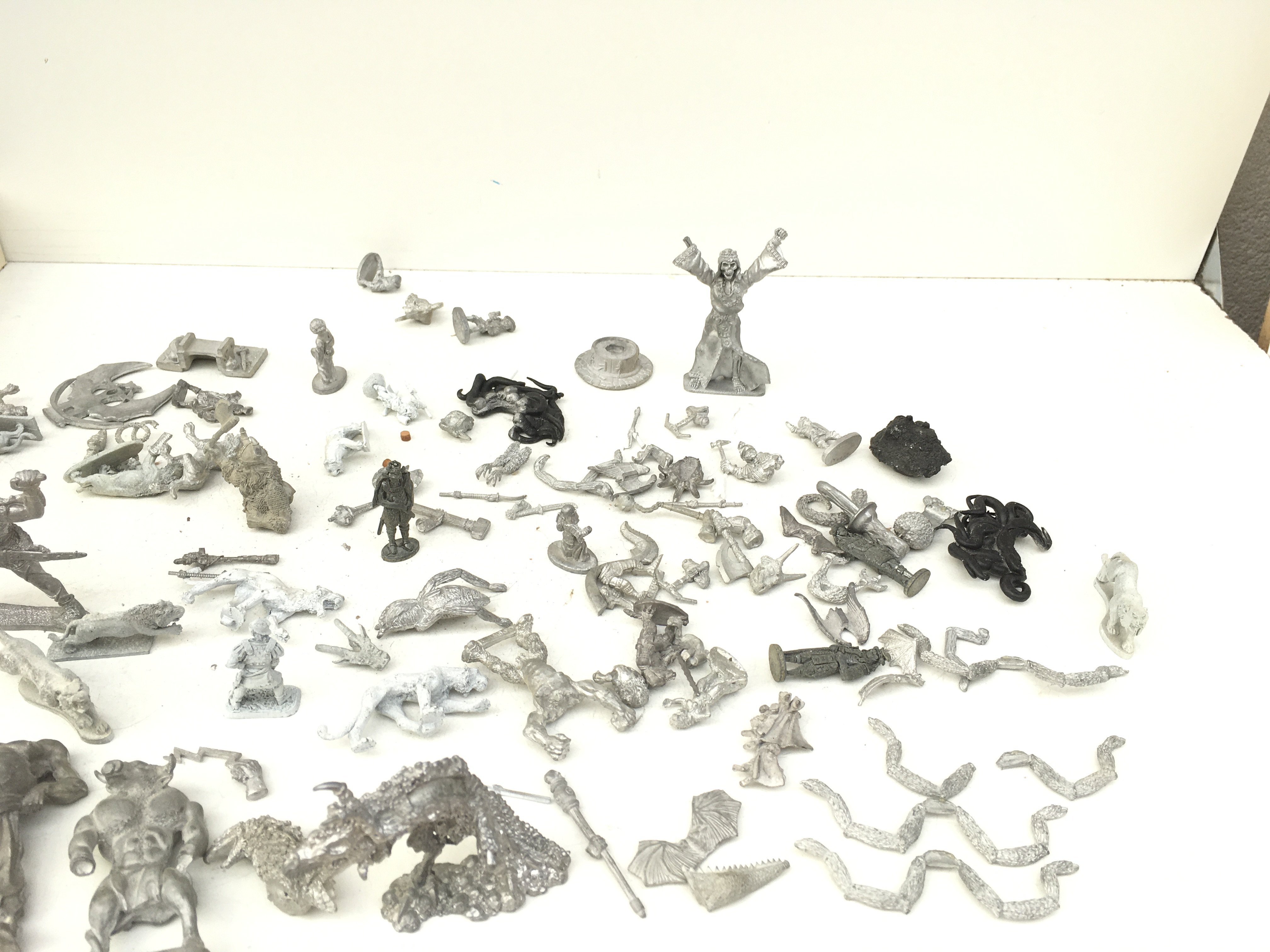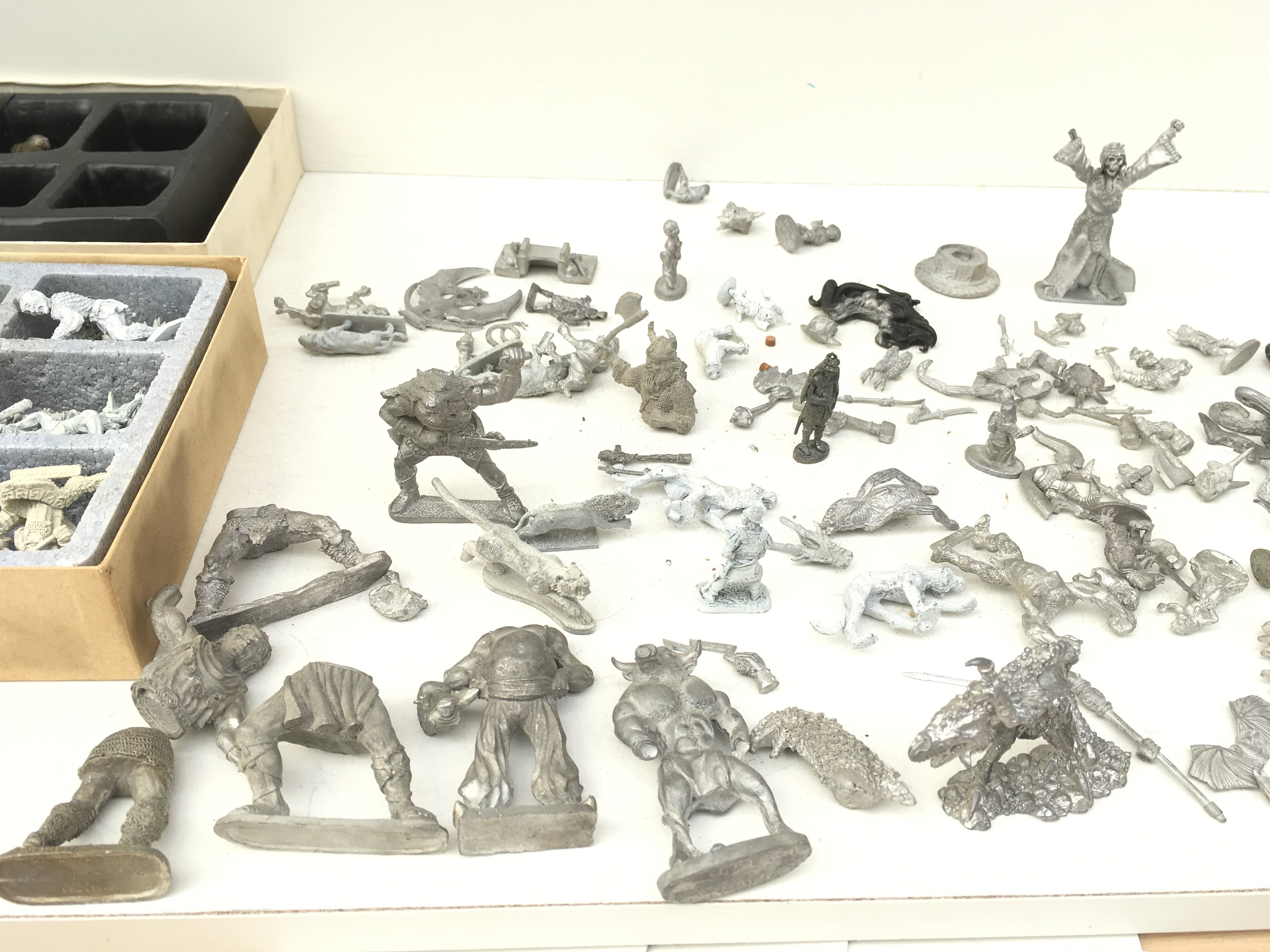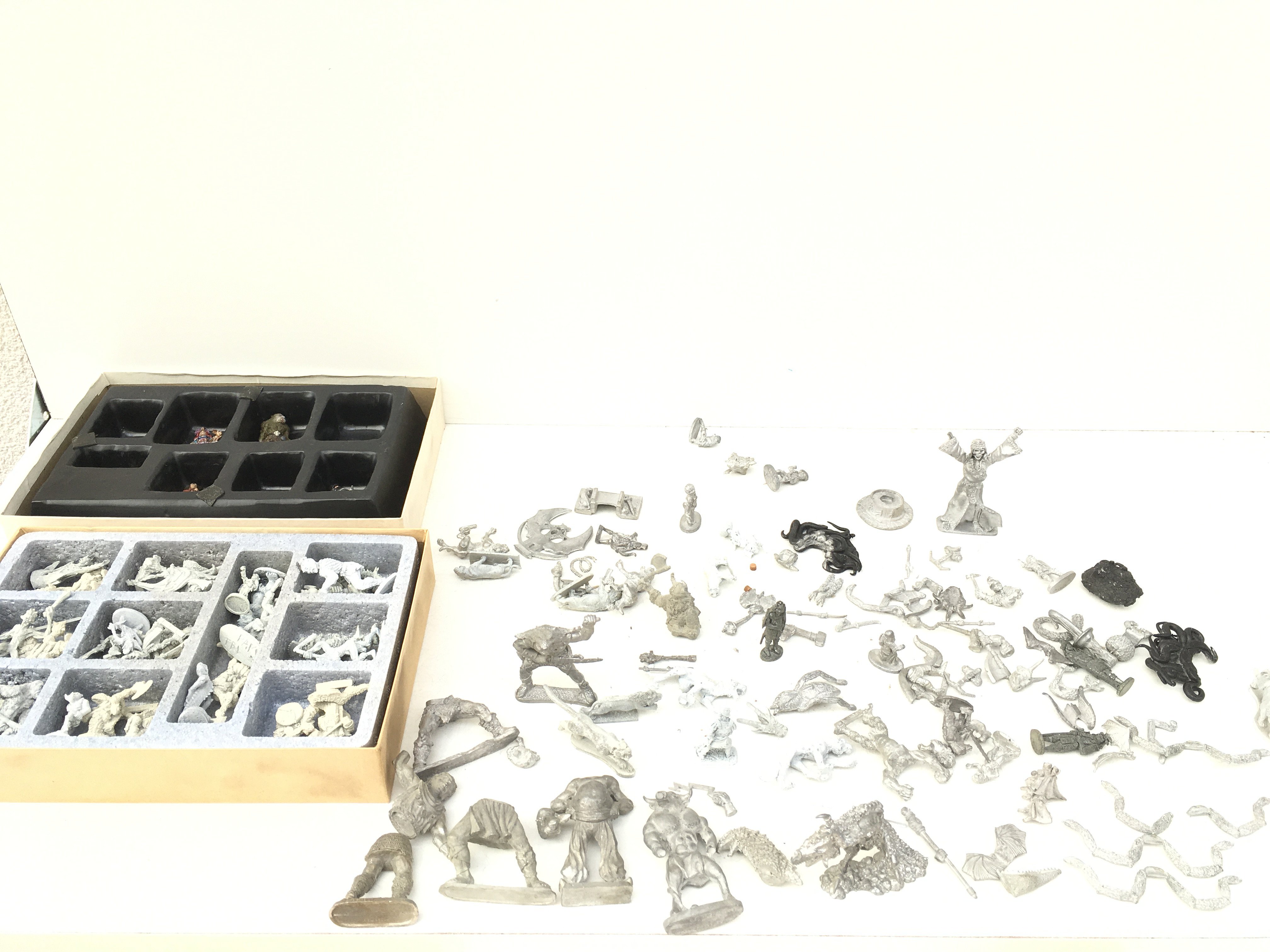 A group of metal figures from a warhammer collection mostly unpainted by Ral Partha..Grenadier and others