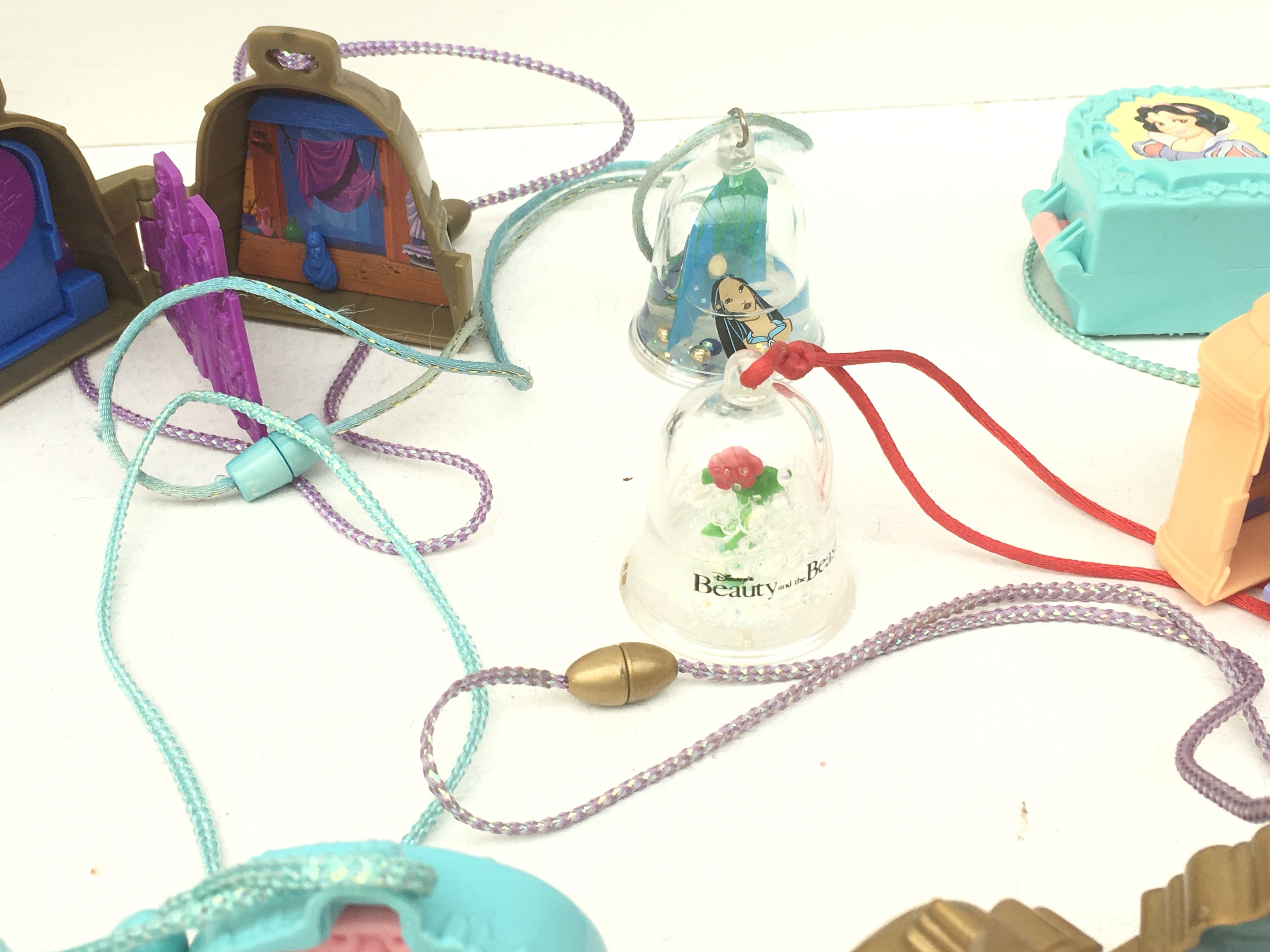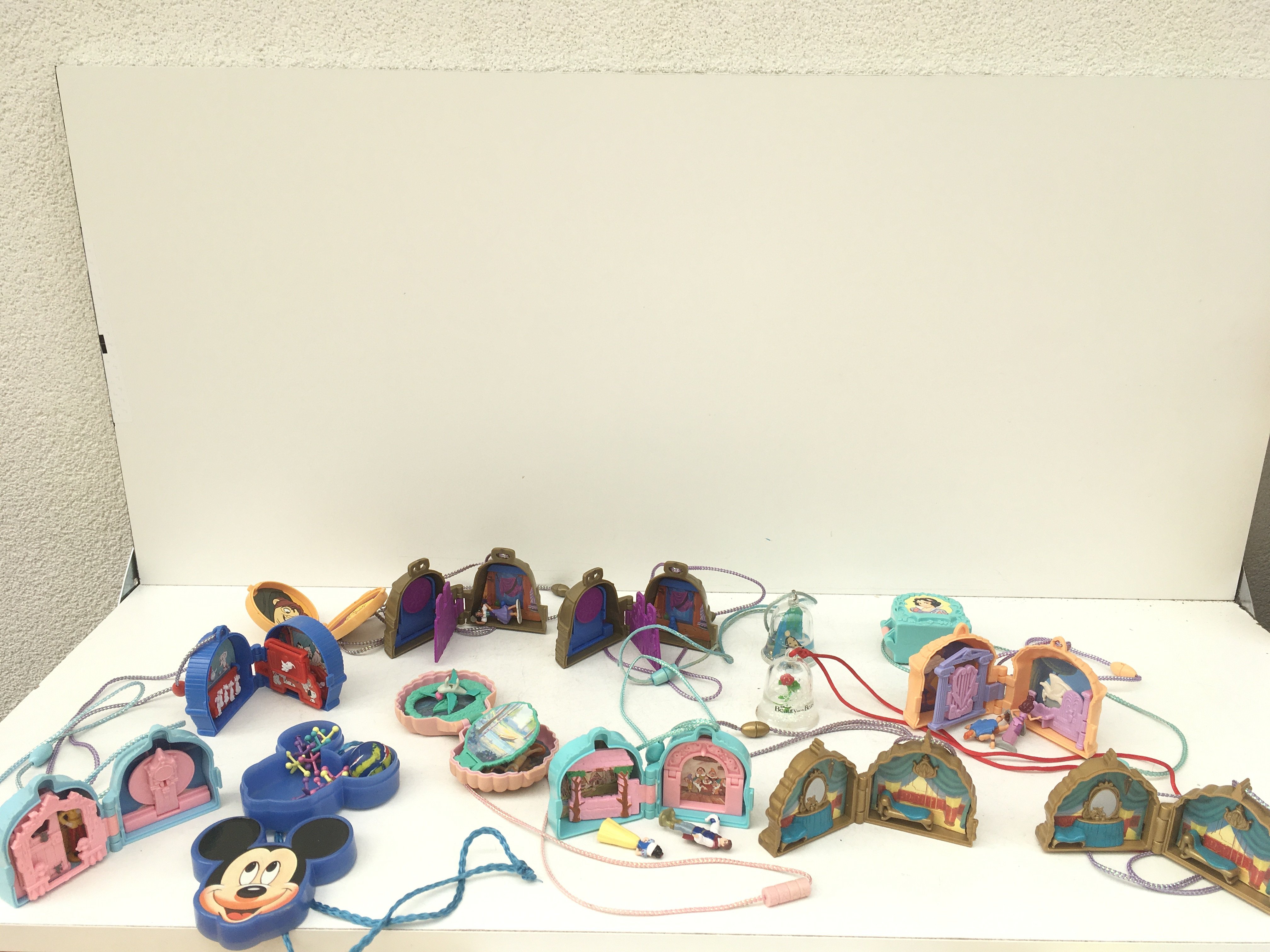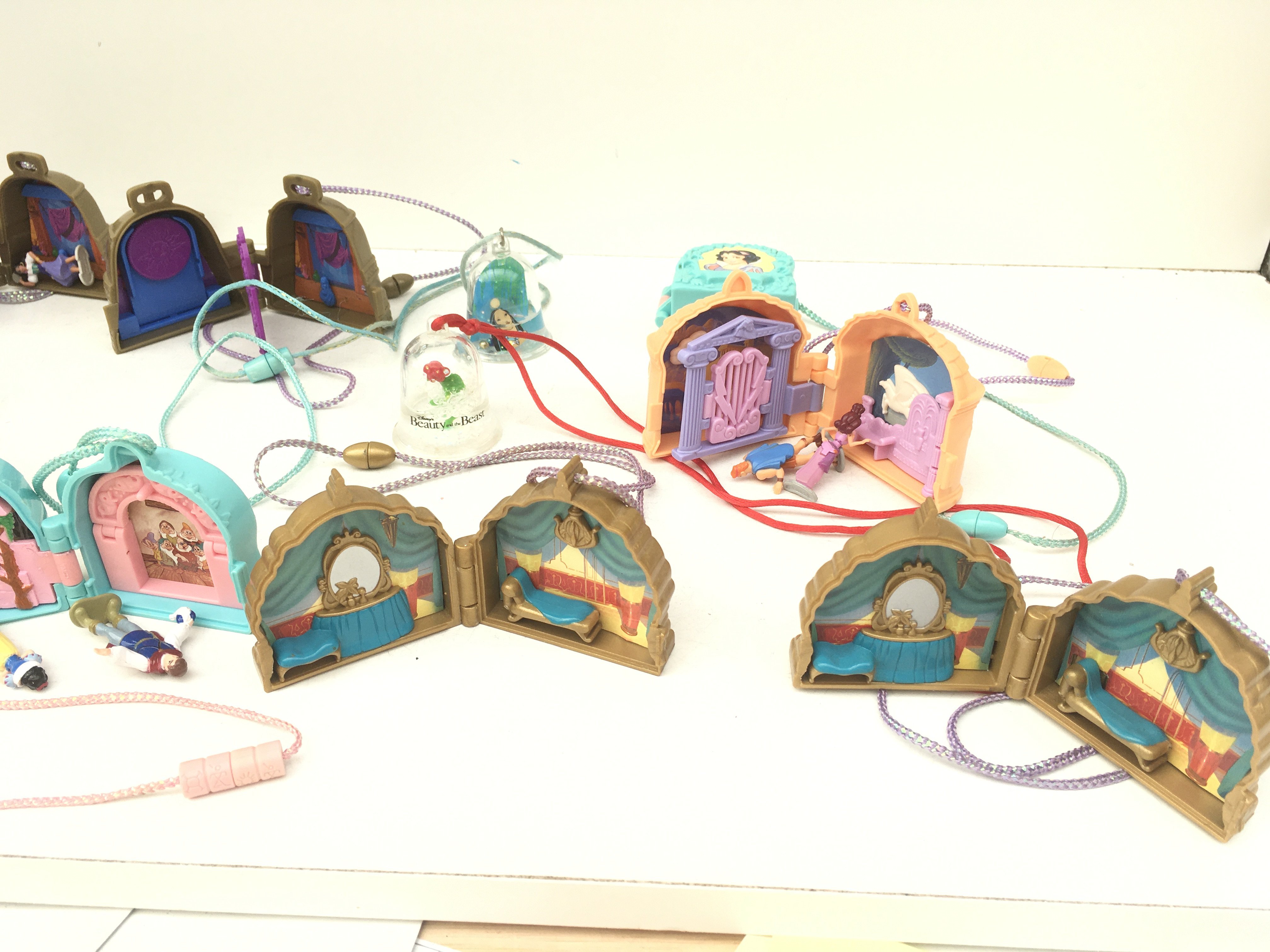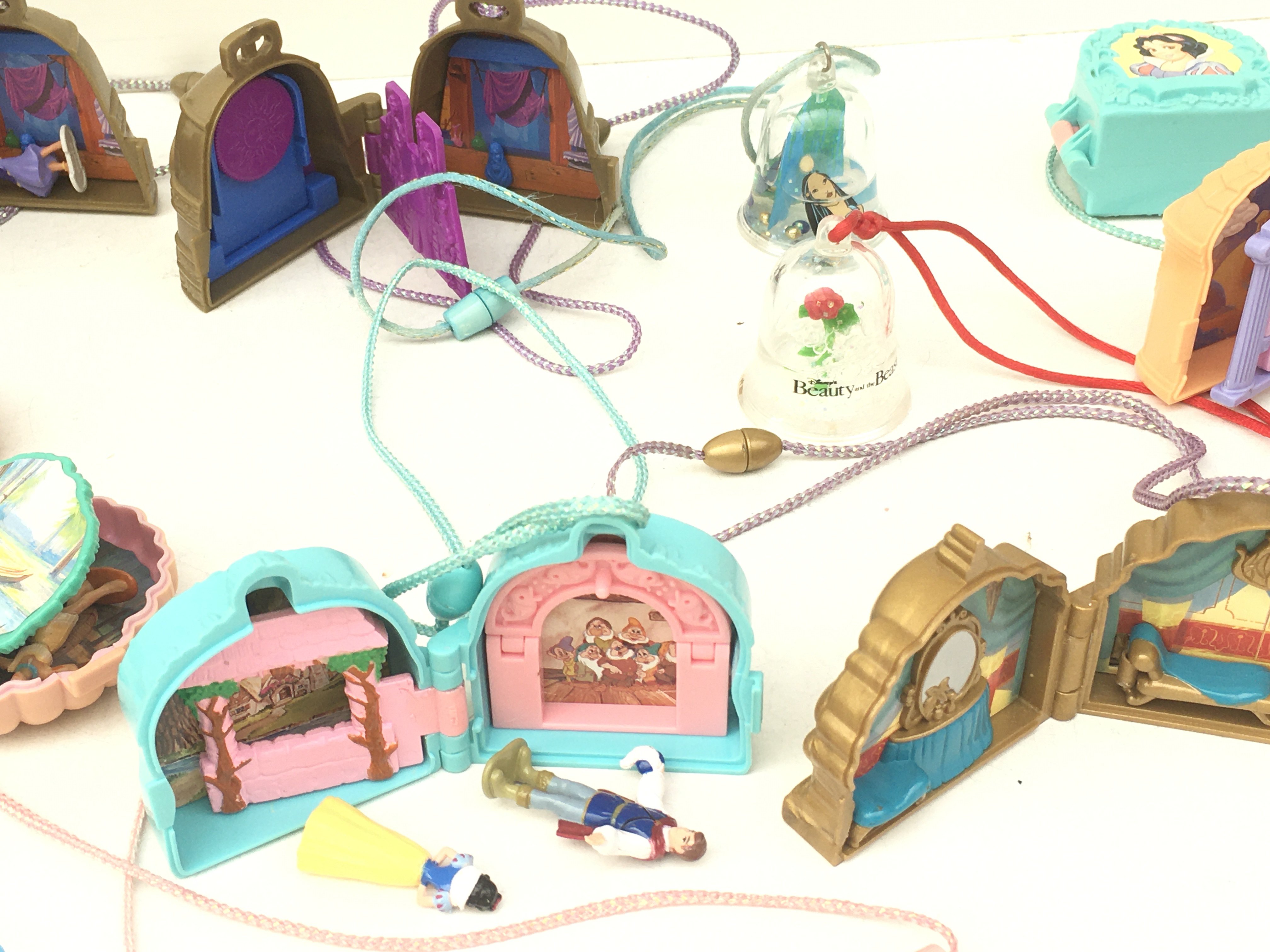 A collection of 11 Disney miniature playsets some with figures. Includes 2 snow globes.