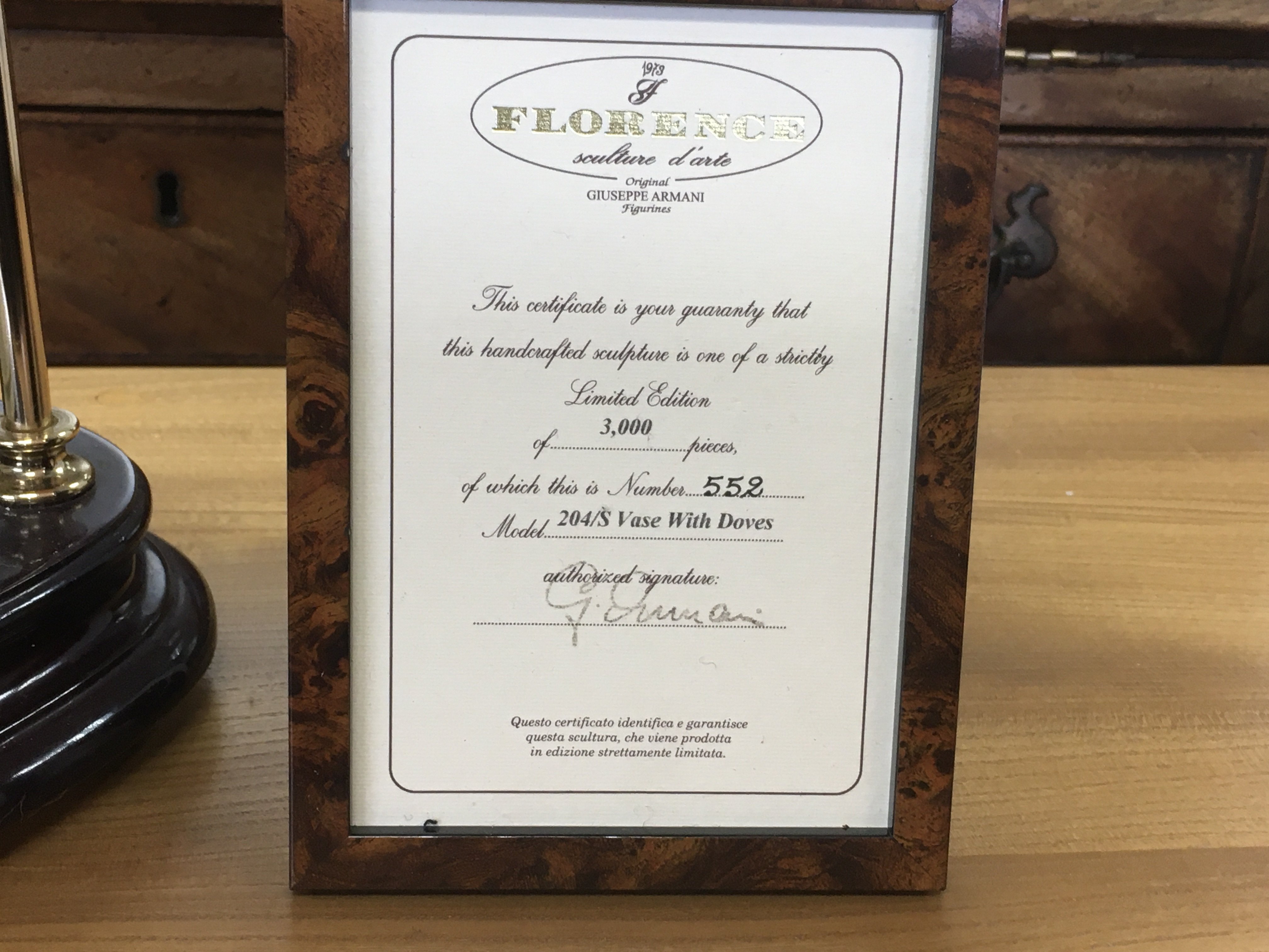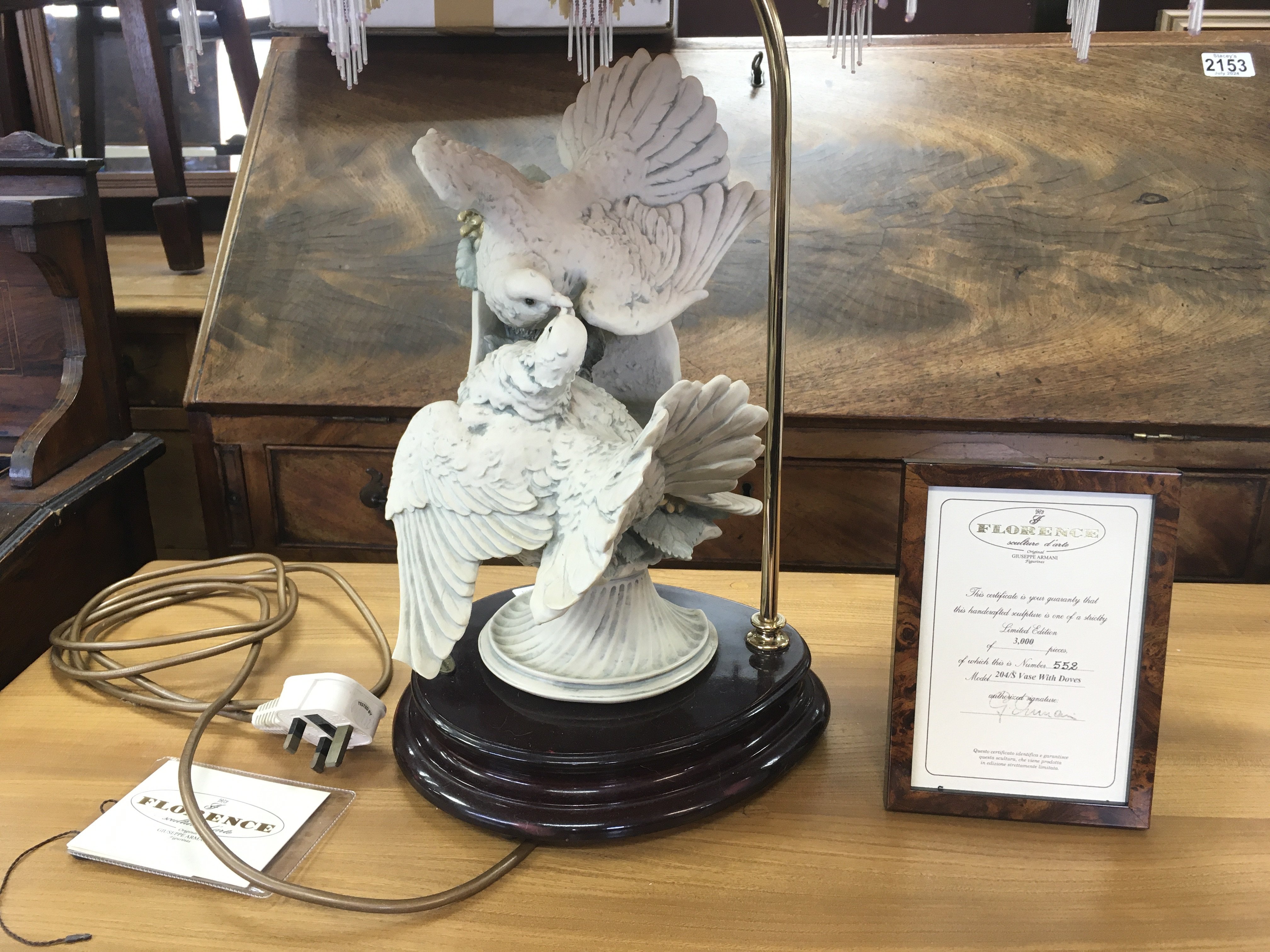 A Giuseppe Armani limited edition lamp titled vase with doves. With COA.